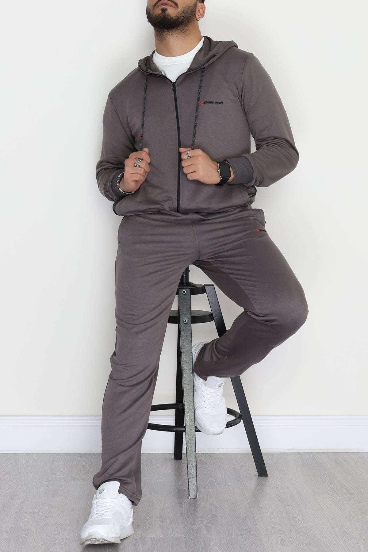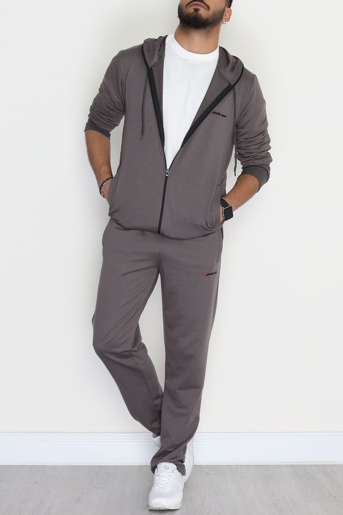 Kompakt 2 İplik Kapşonlu Erkek Eşofman Takımı Füme - 42154.1937.