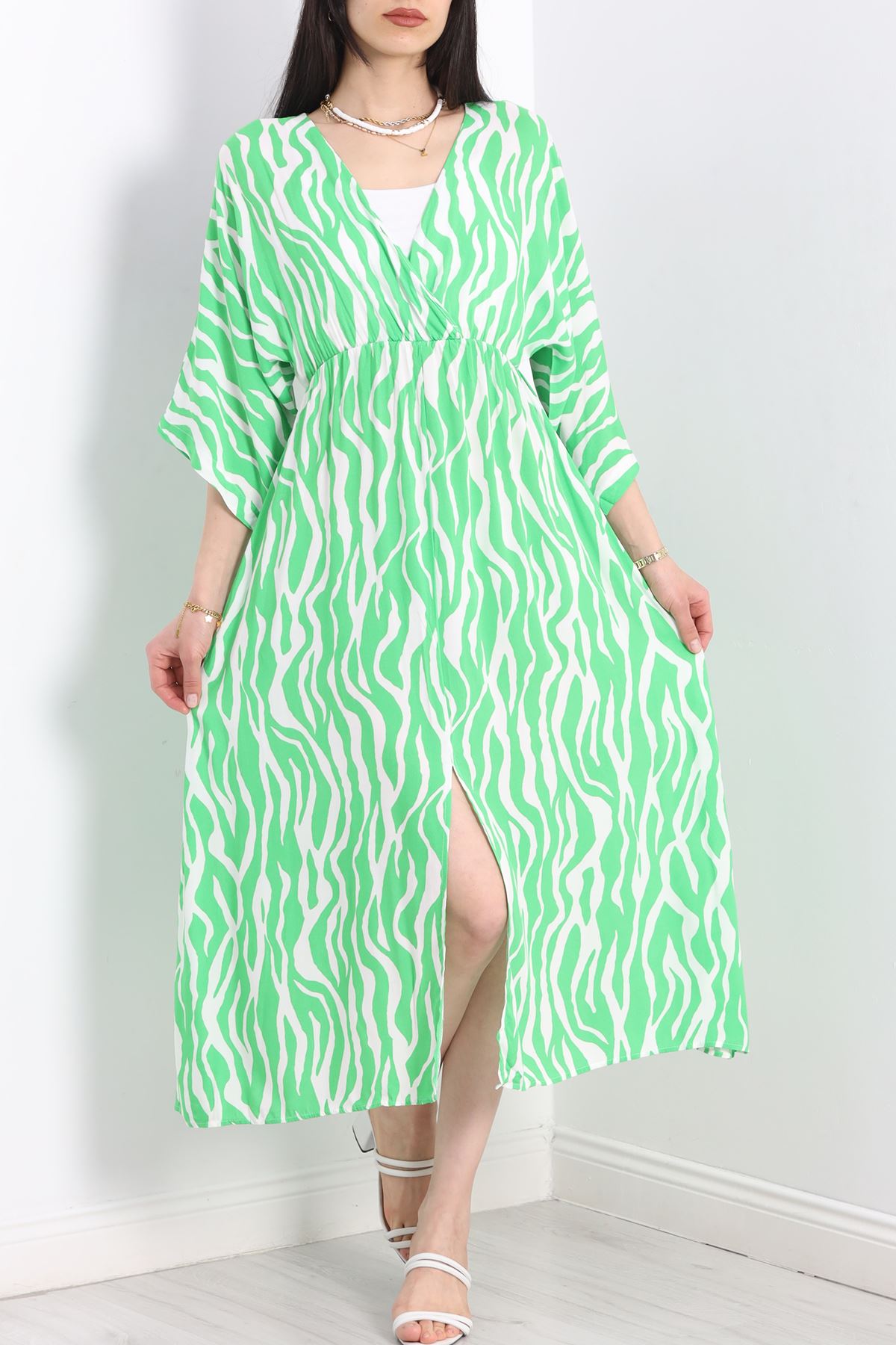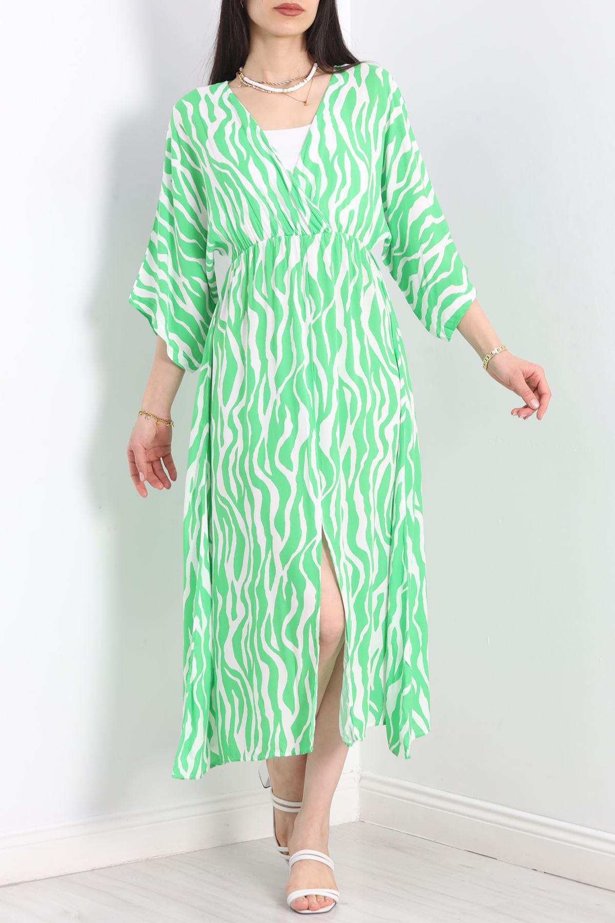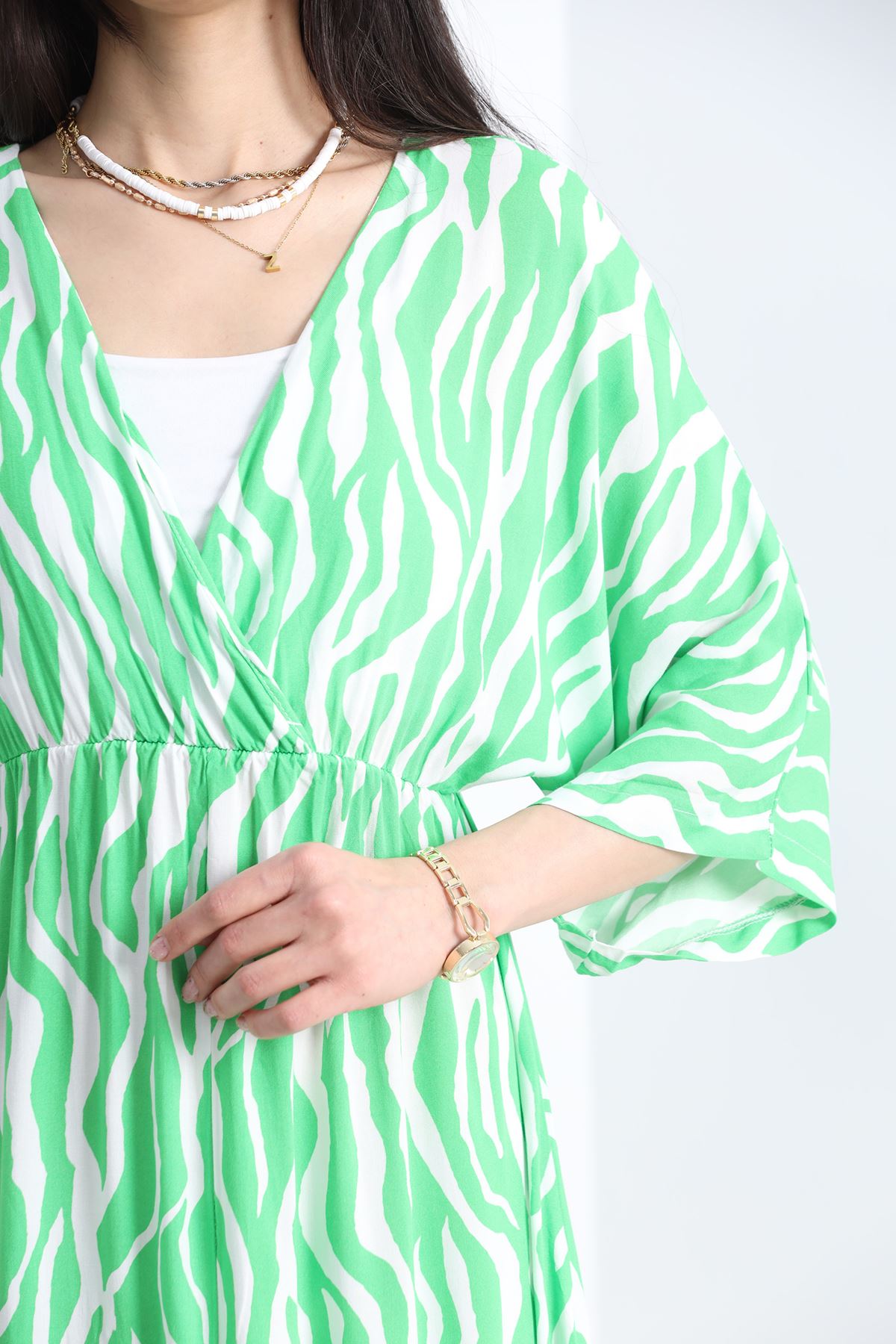 Kruvaze Yaka Desenli Elbise Yeşil - 707.1247.