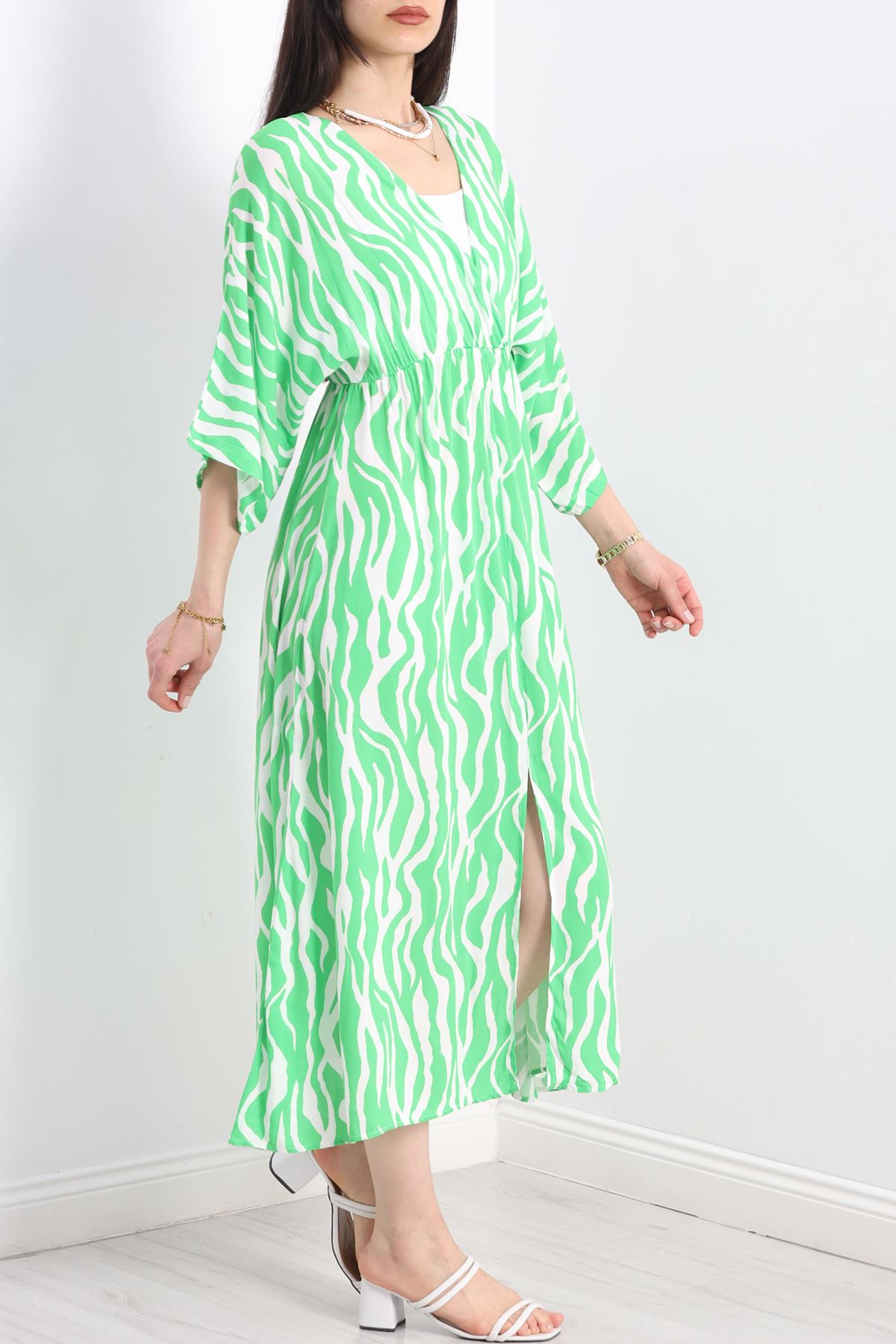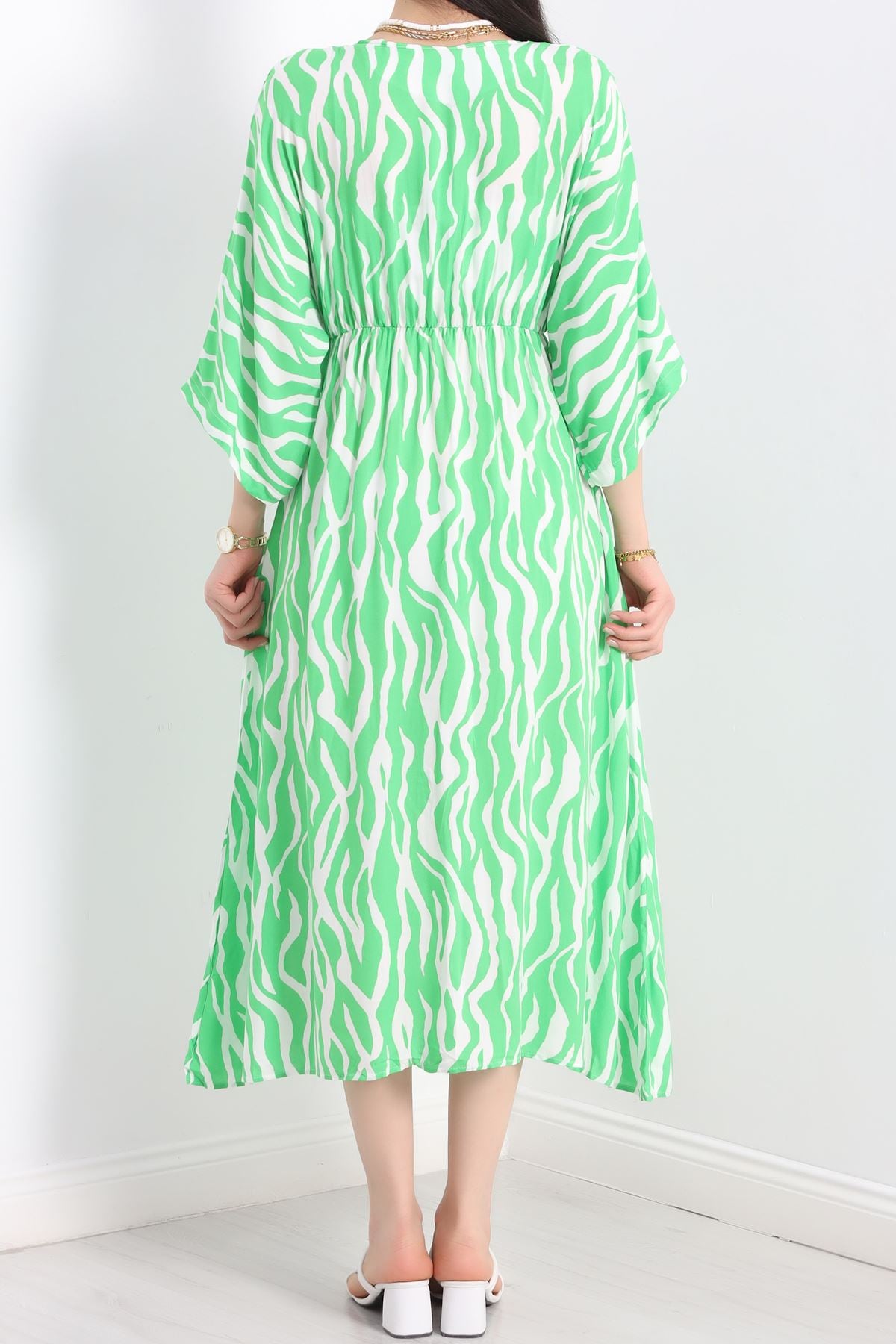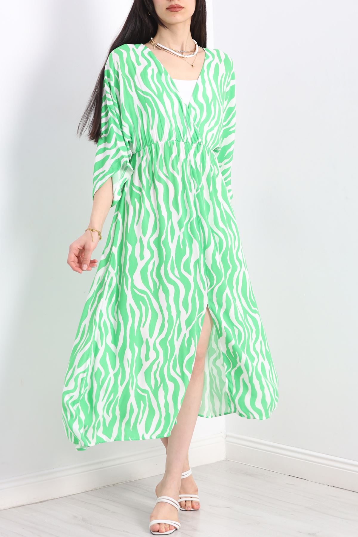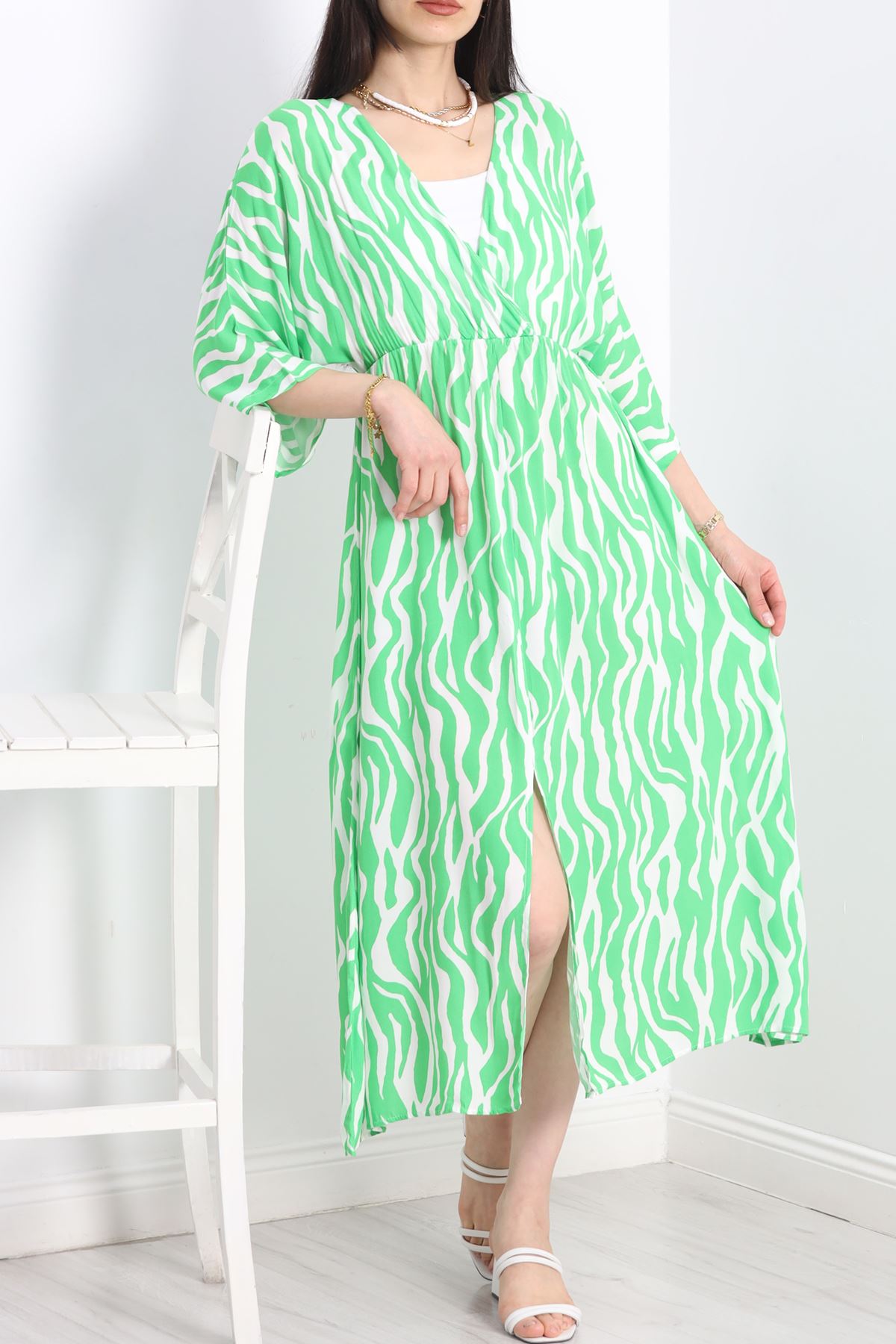 Kruvaze Yaka Desenli Elbise Yeşil - 707.1247.