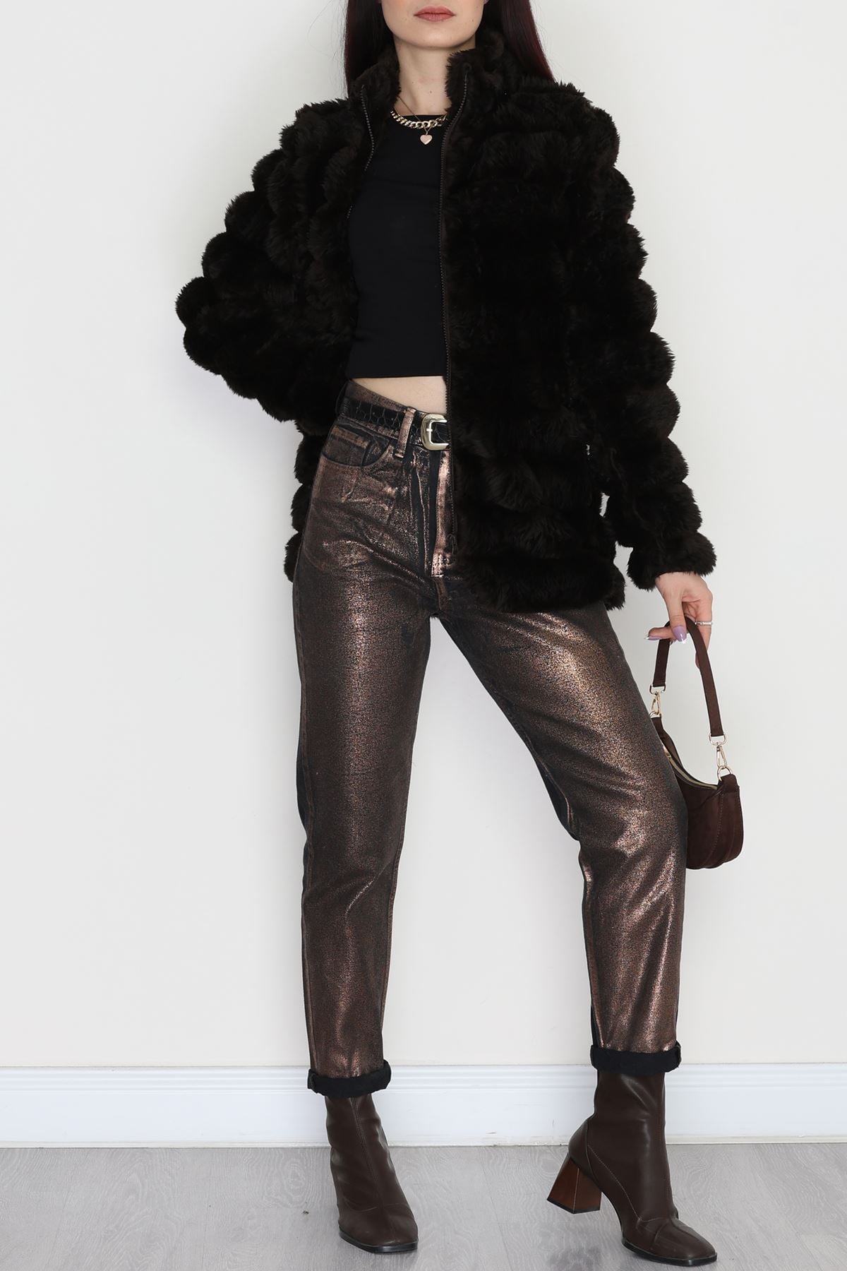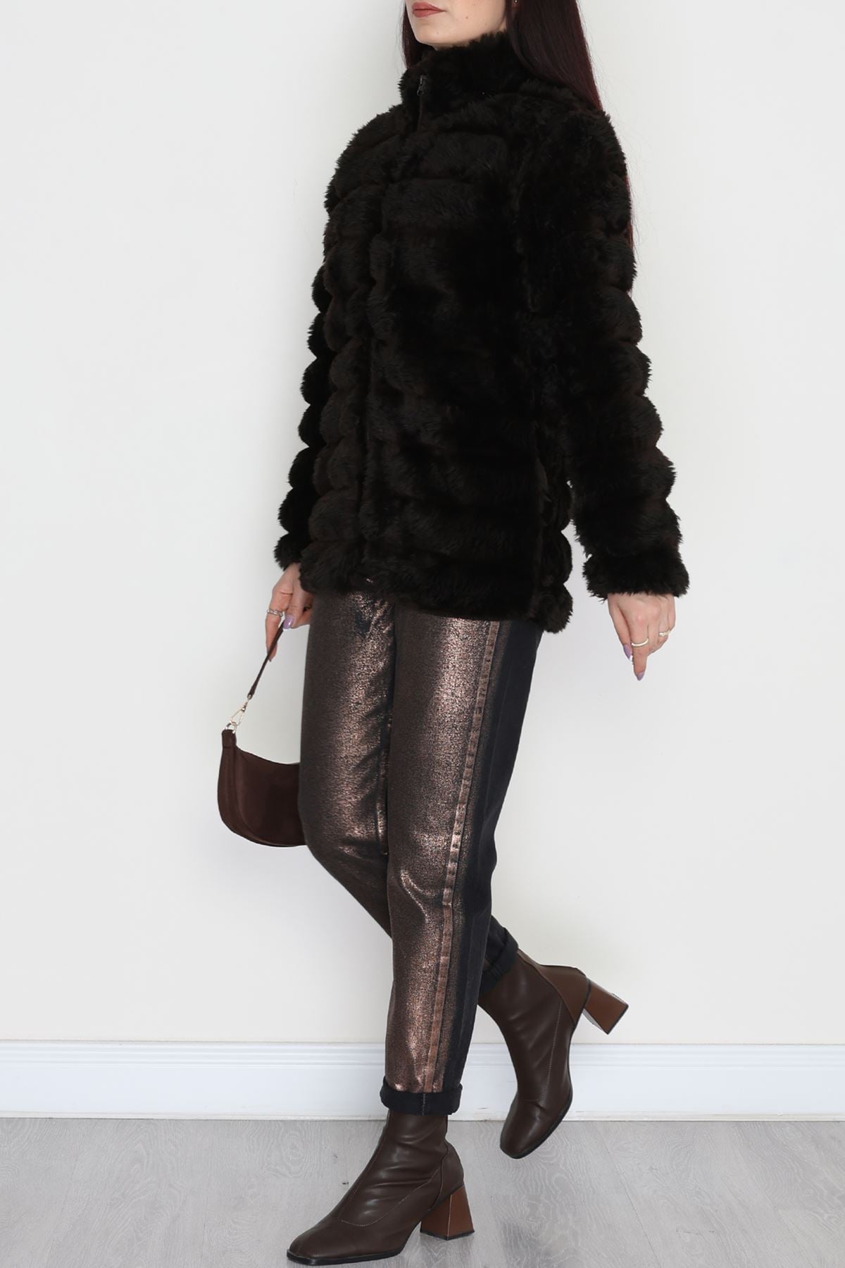 Kürk Görünümlü Peluş Ceket Acıkahve - 80877.107.