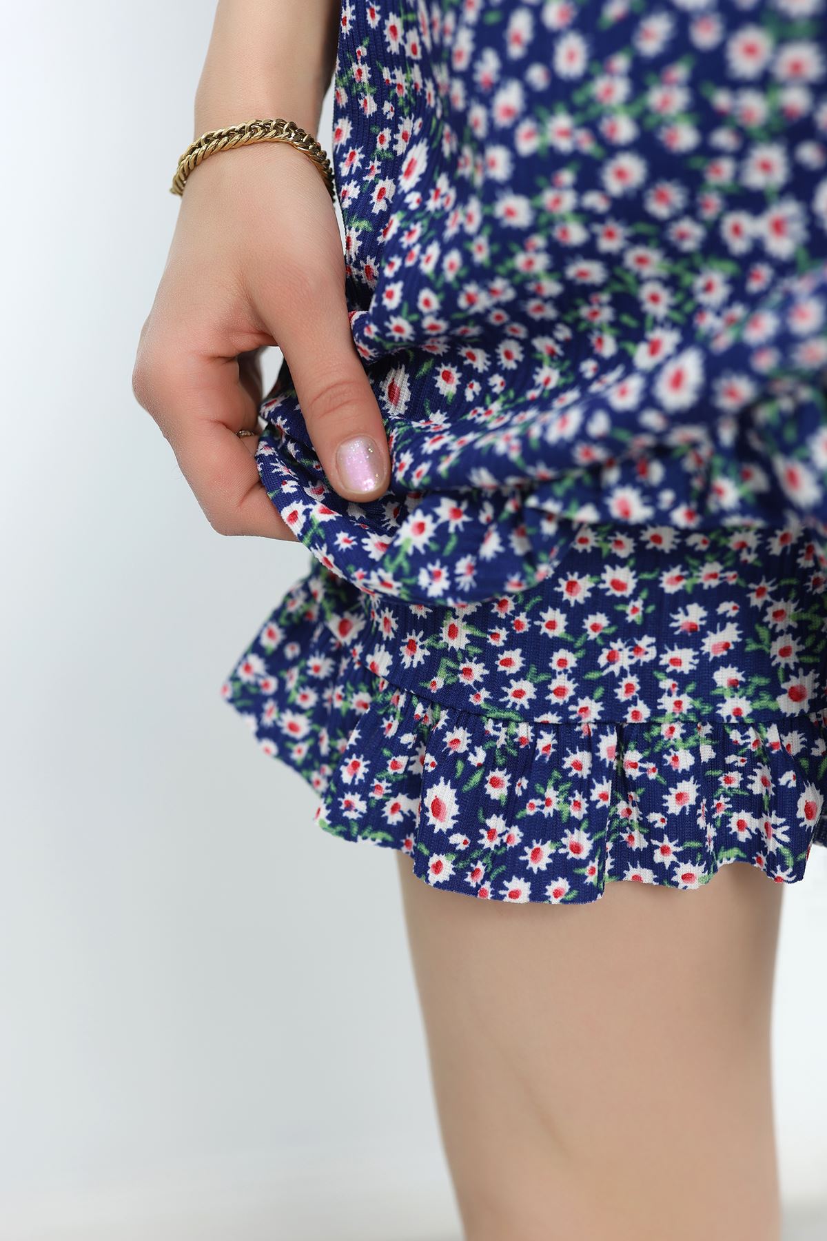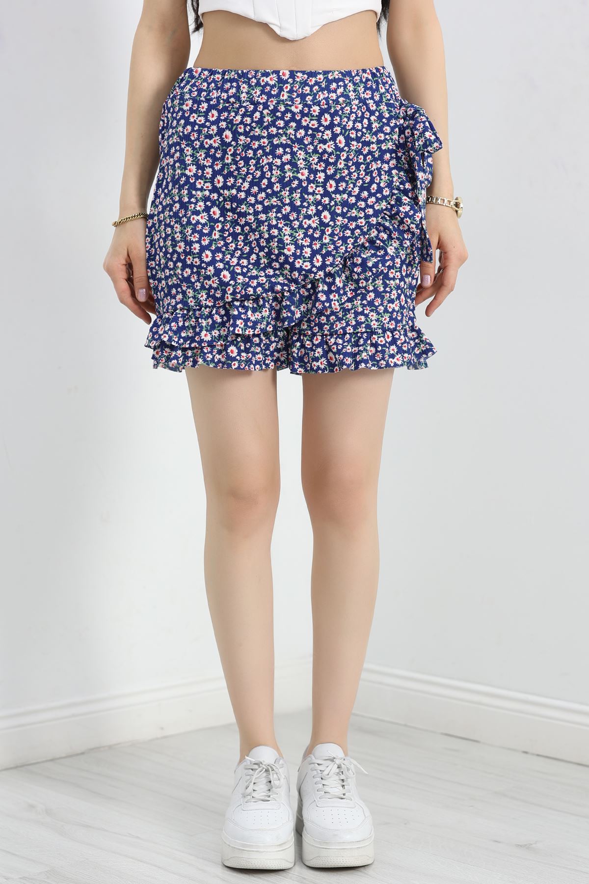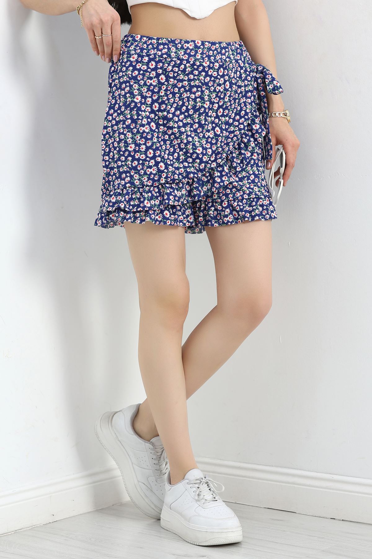 Kuşaklı Şort Etek İndigo - 18933.1247.