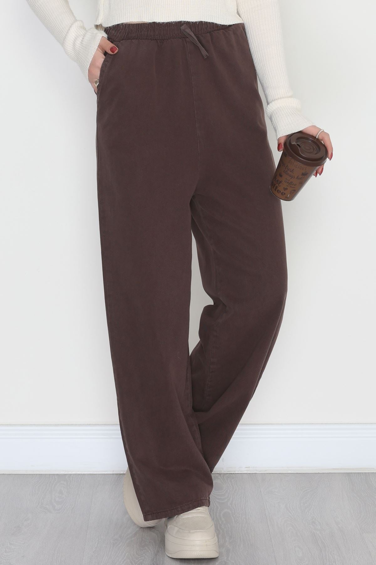 Lastikli Palazzo Gabardin Kot Pantolon Kahve1 - 31559.2088.