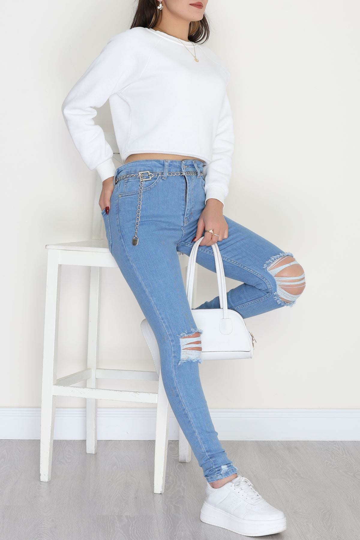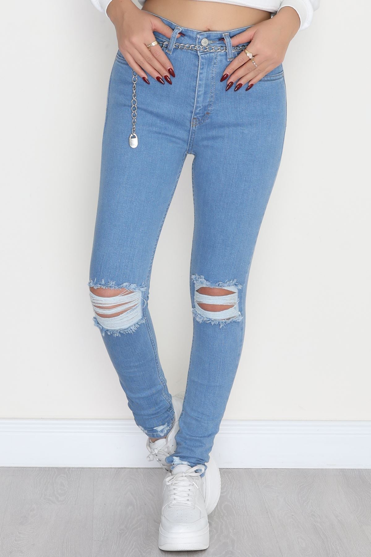 Lazer Kesim Dar Paça Kot Pantolon Açıkmavi - 42691.1836.