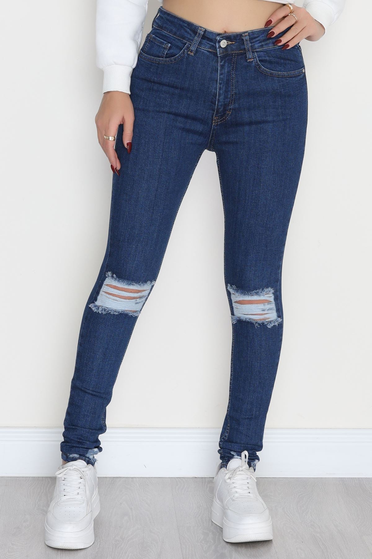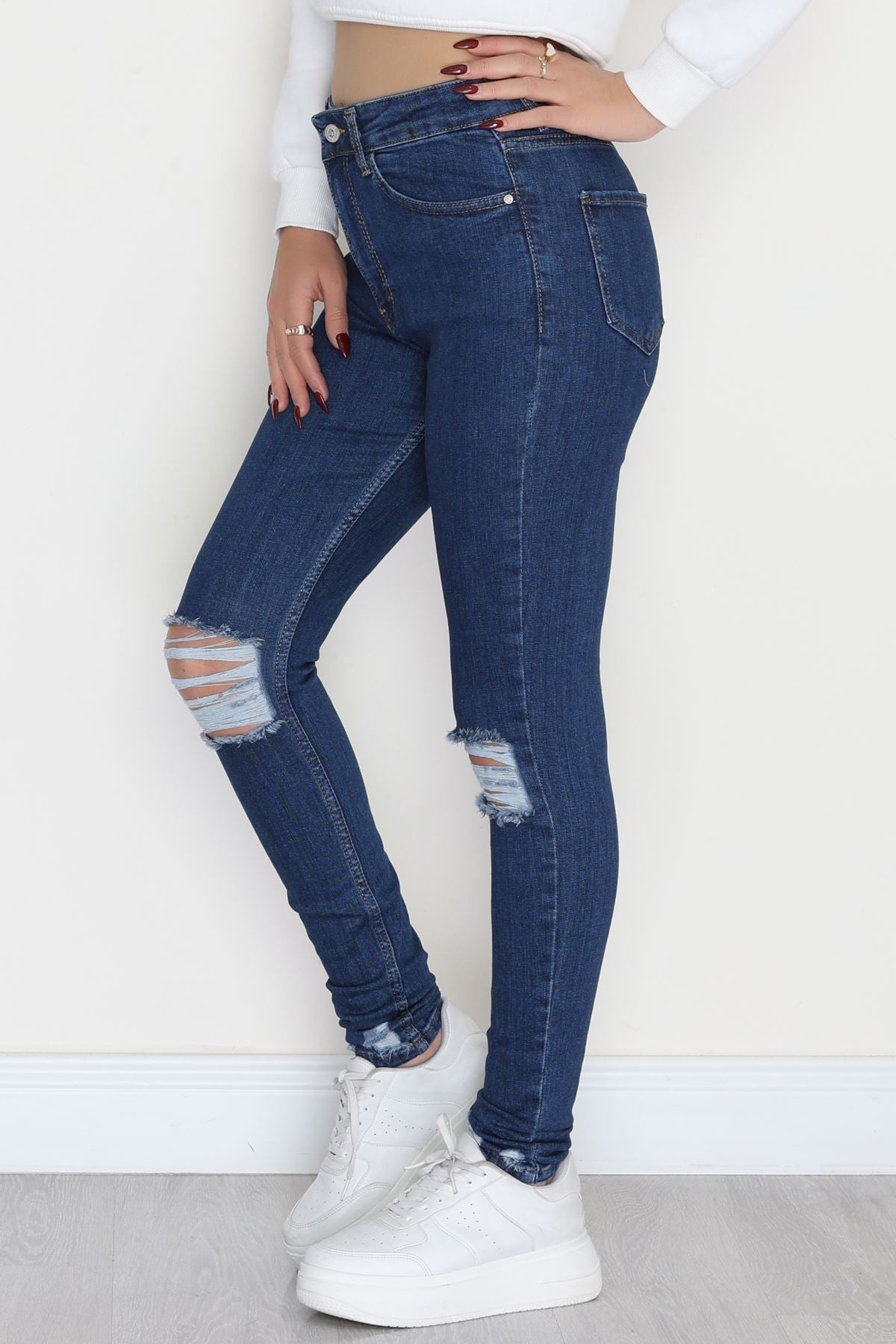 Lazer Kesim Dar Paça Kot Pantolon Mavi - 42691.1836.