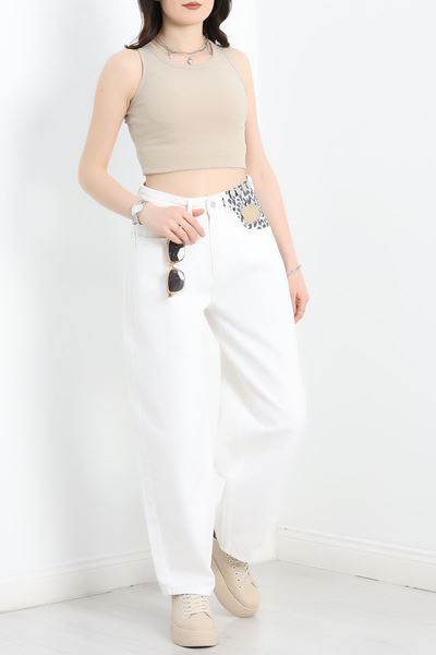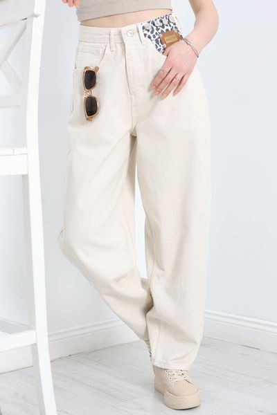 Leopar Desenli Baggy Kot Pantolon Ekru - 40700.1975.