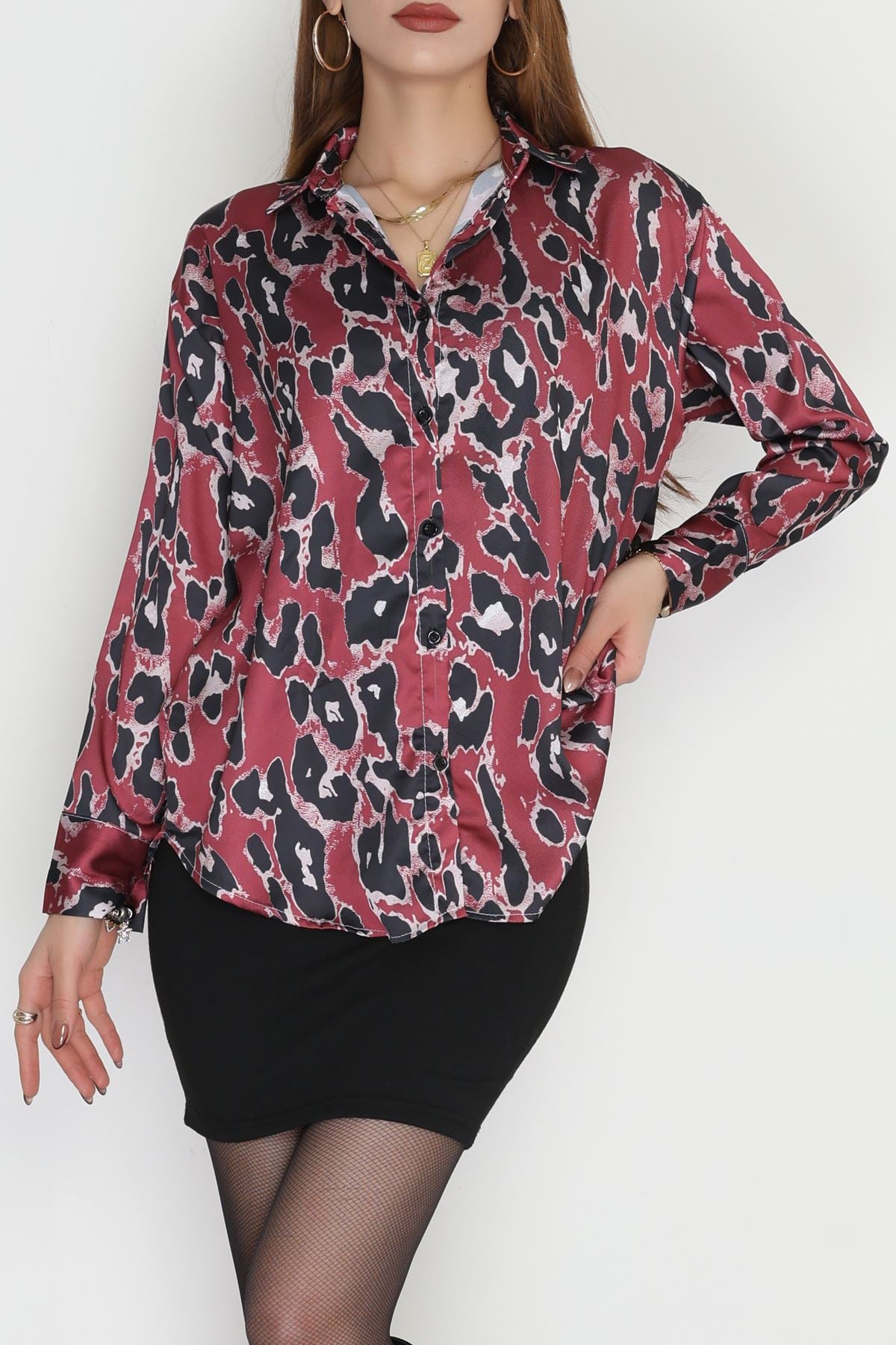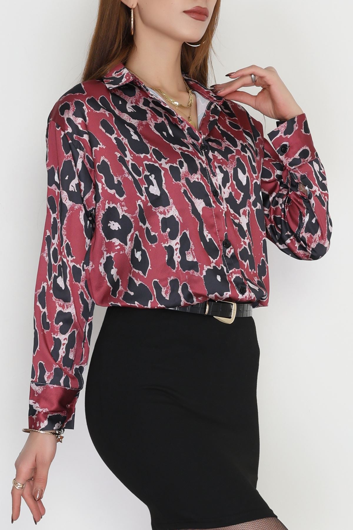 Leopar Desenli Saten Gömlek Gülkurusu - 90139.1949.