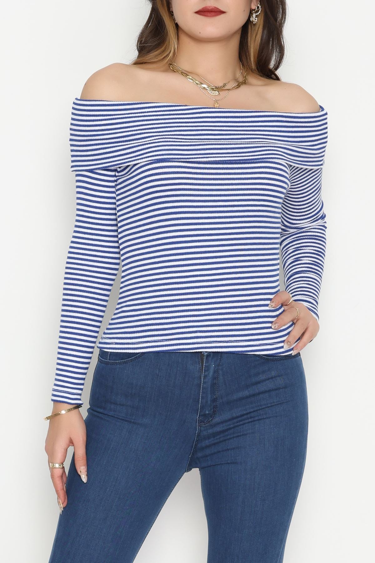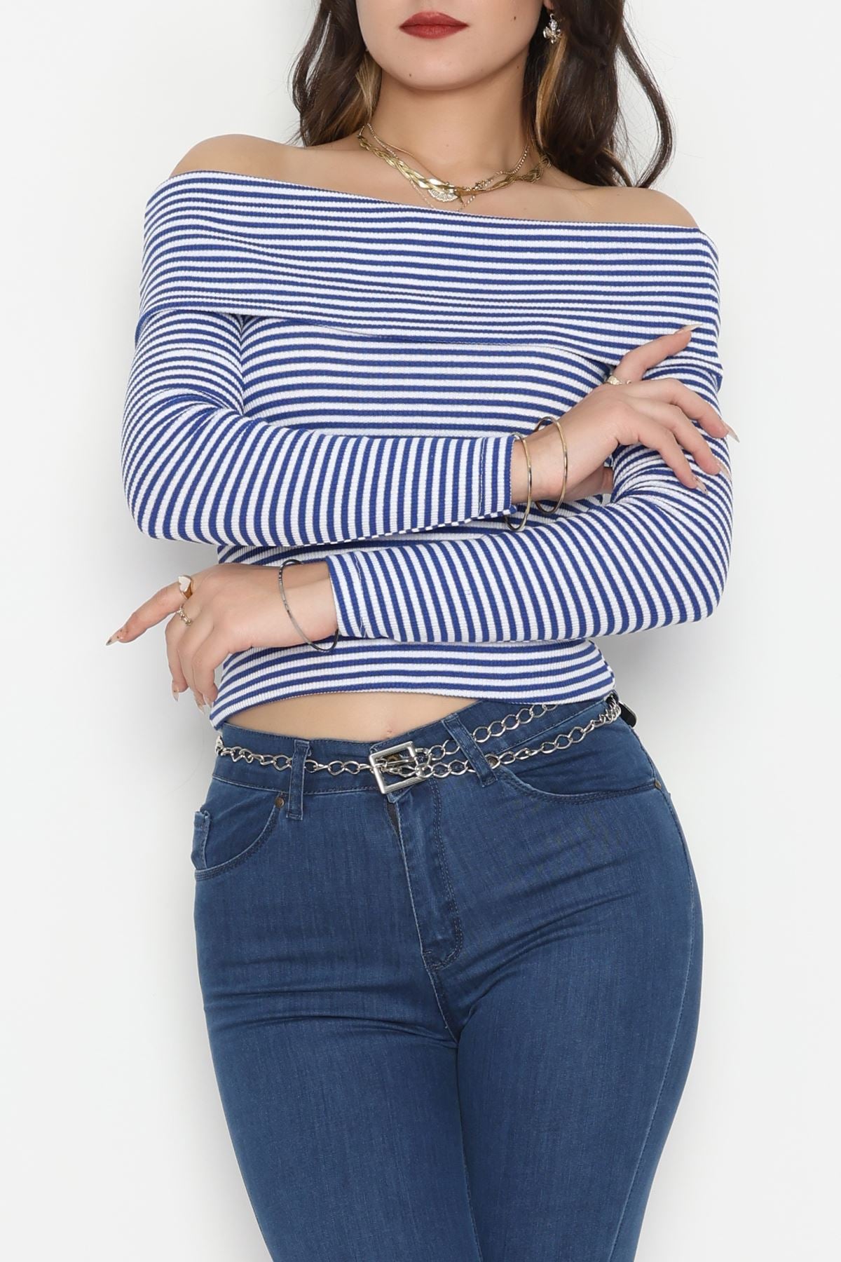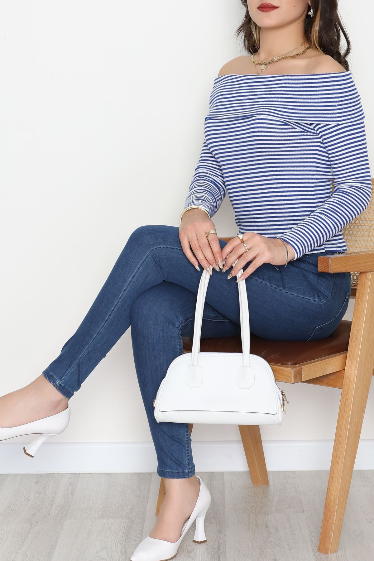 Madonna Yaka Likralı Kaşkorse Bluz Saksbeyaz - 42765.1567.