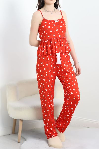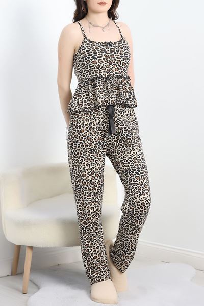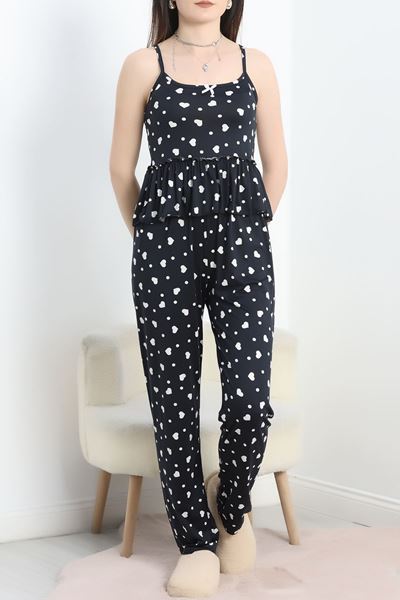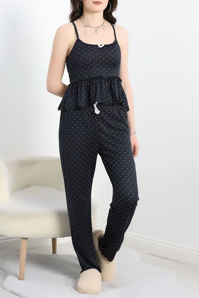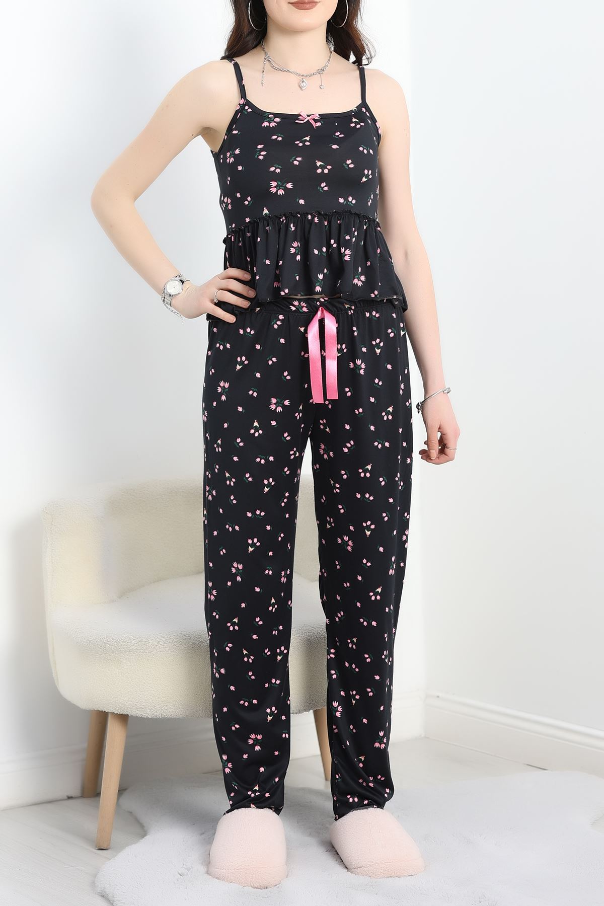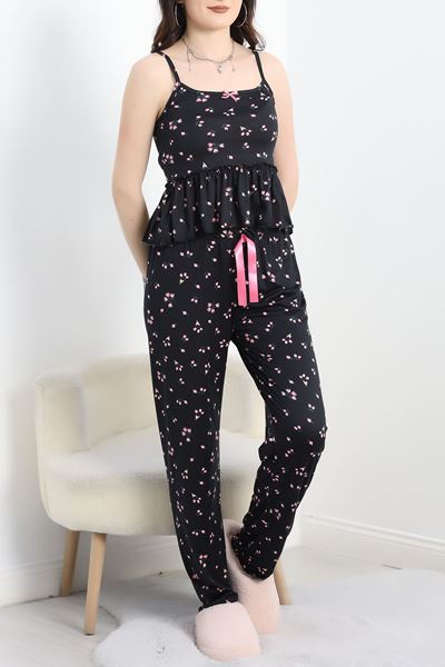 Milan Kumaş Fırfırlı Pijama Takımı Siyahçiçekli - 50182.1857.
