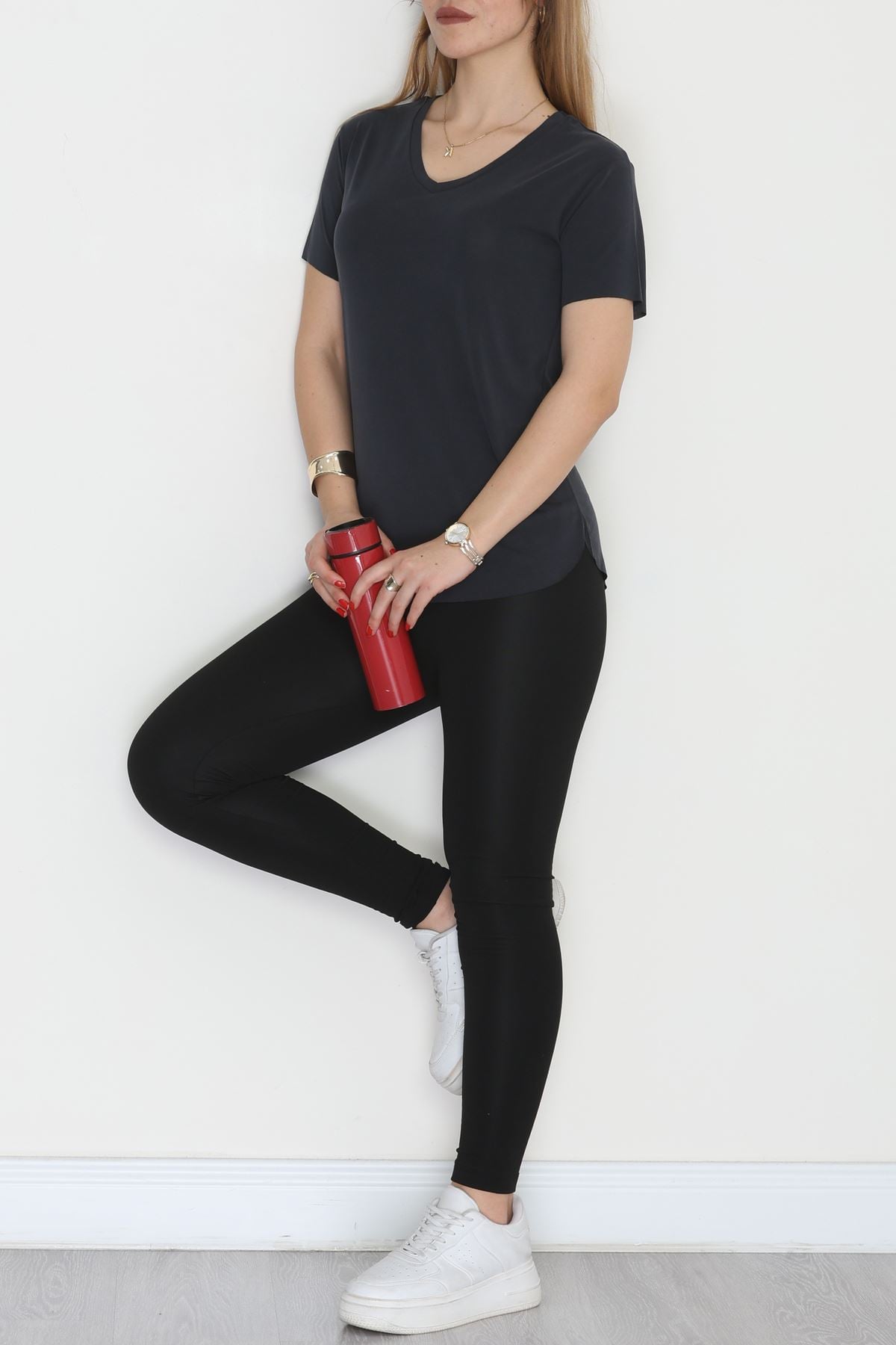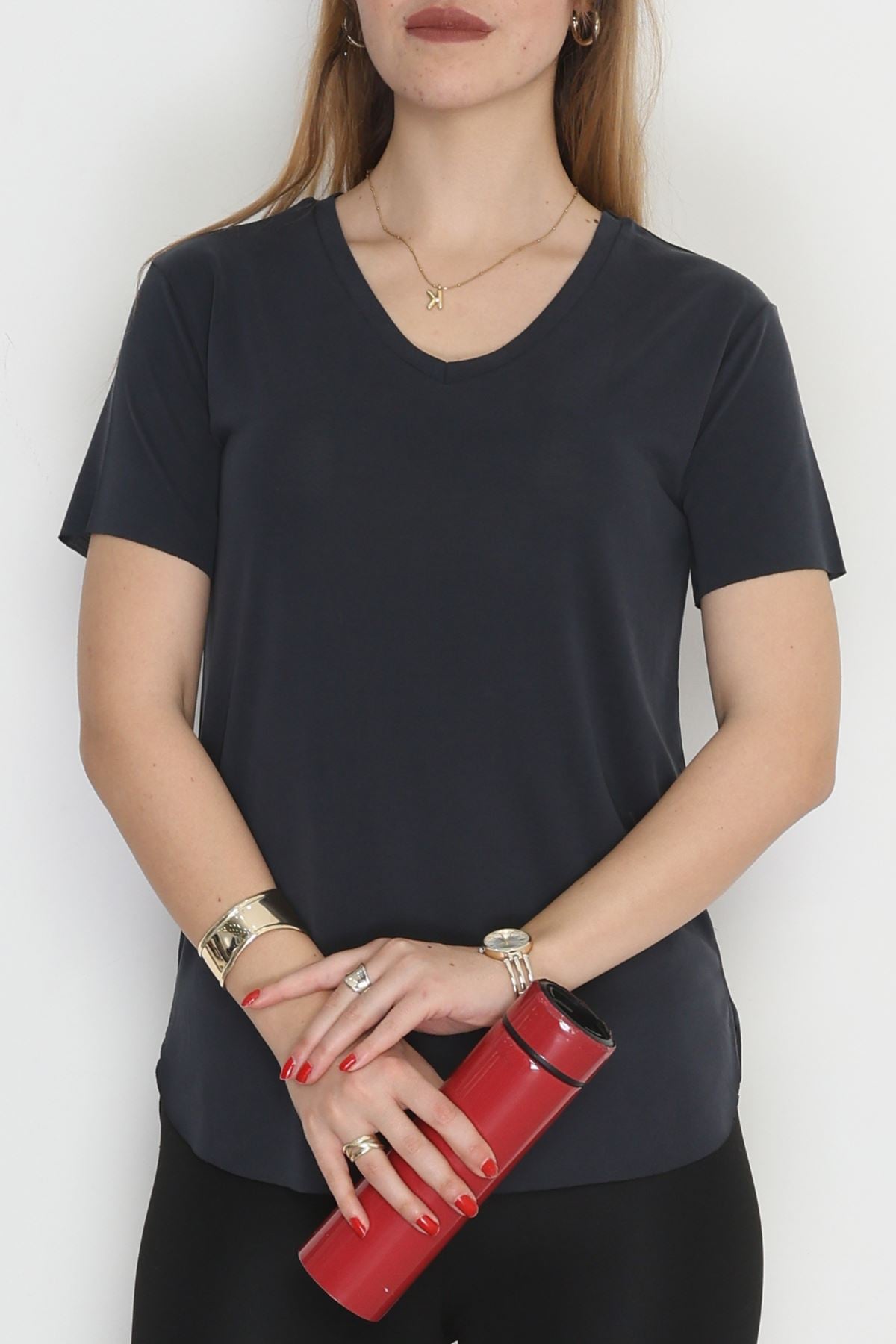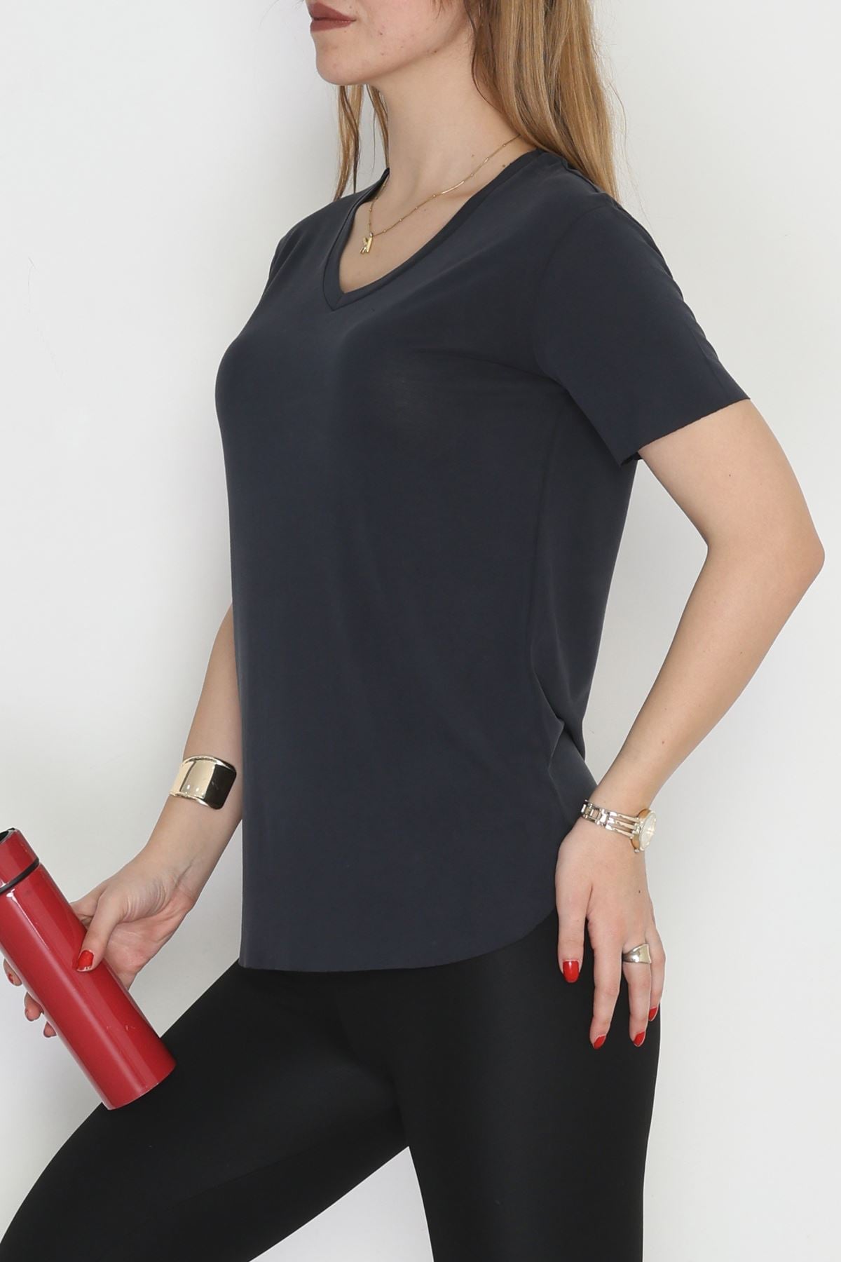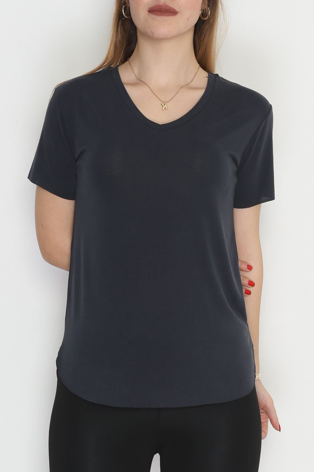Modal Süprem V Yaka Tişört Füme - 90062.1758.