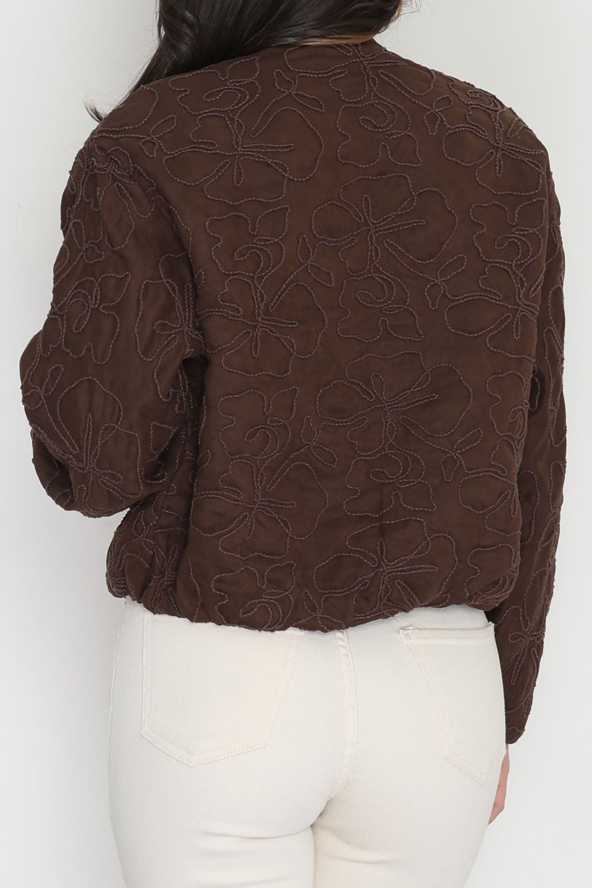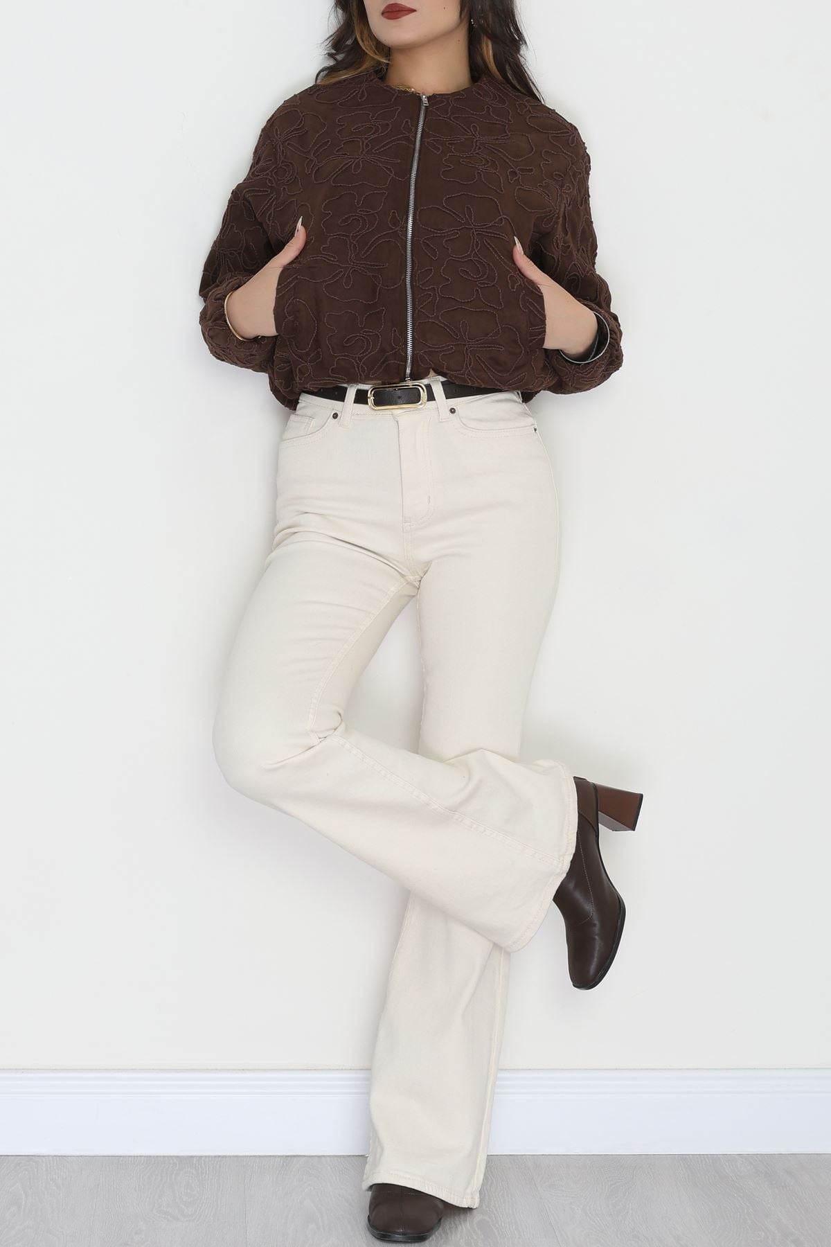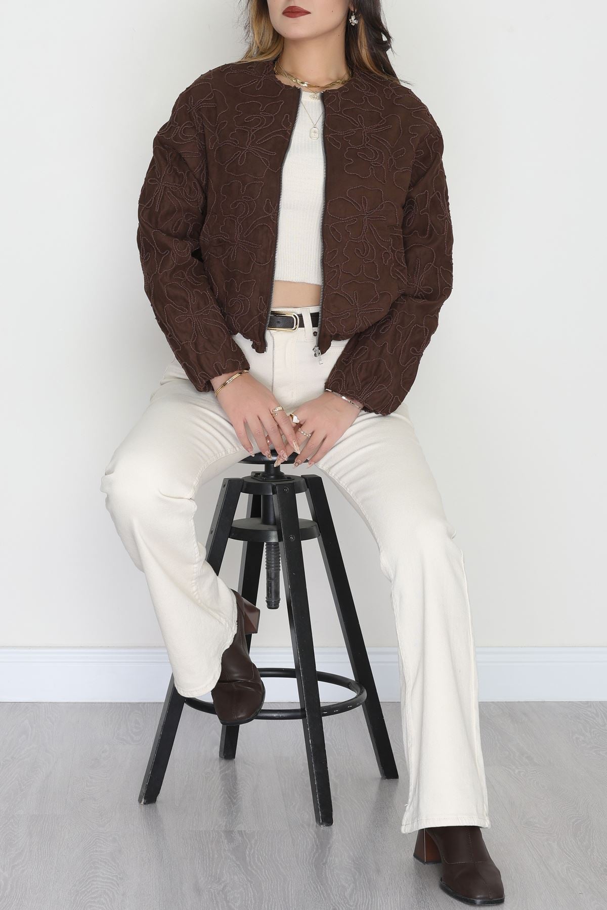 Nakış Detaylı Astarlı Bomber Ceket Kahve - 31634.439.