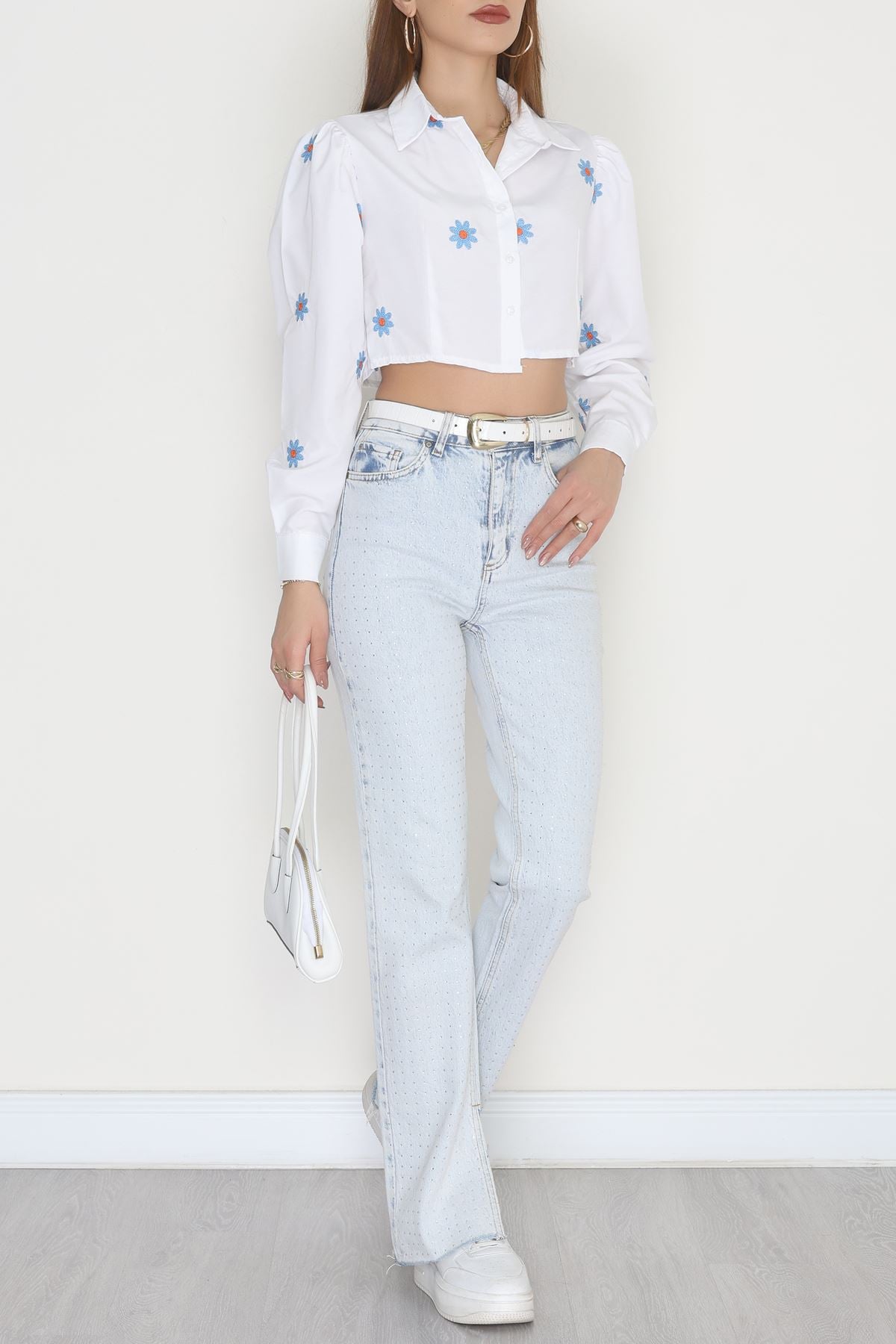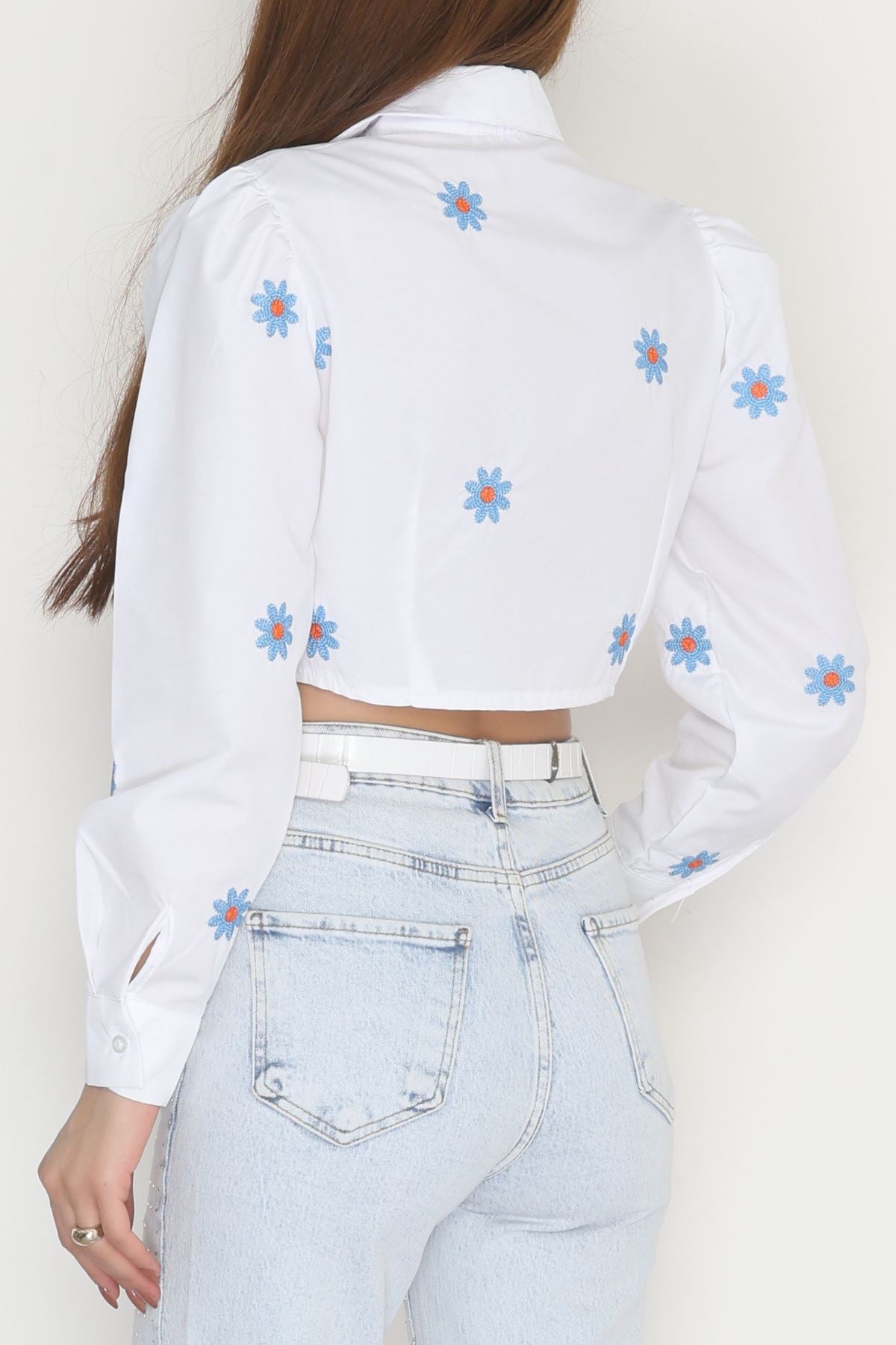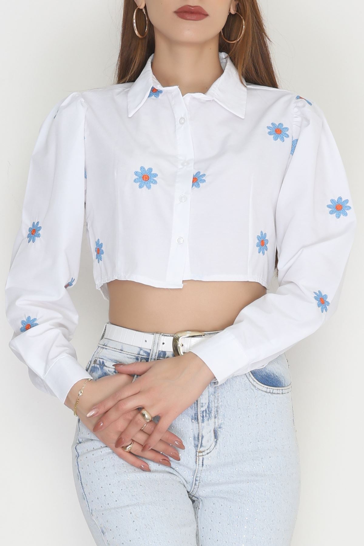 Nakışlı Balon Kol Gömlek Beyaz - 30773.1949.