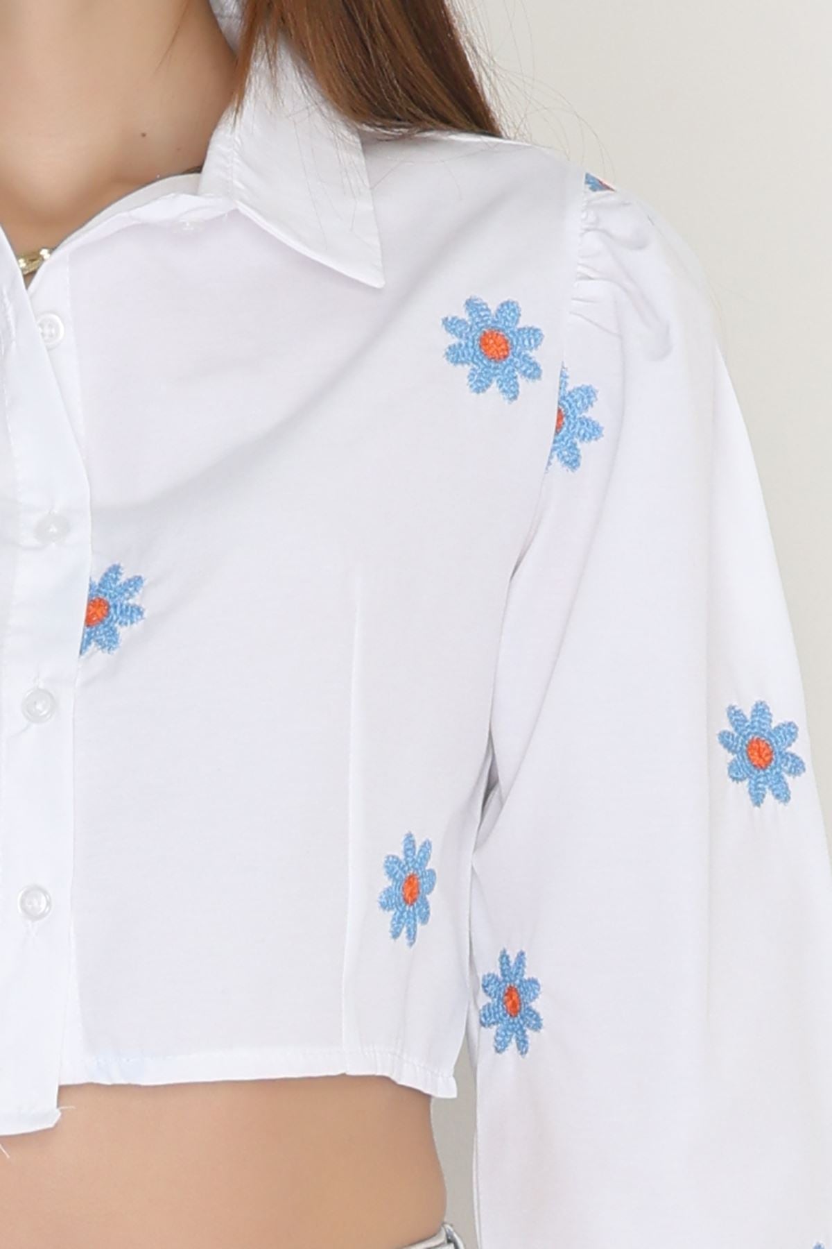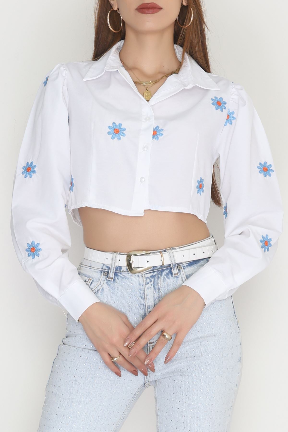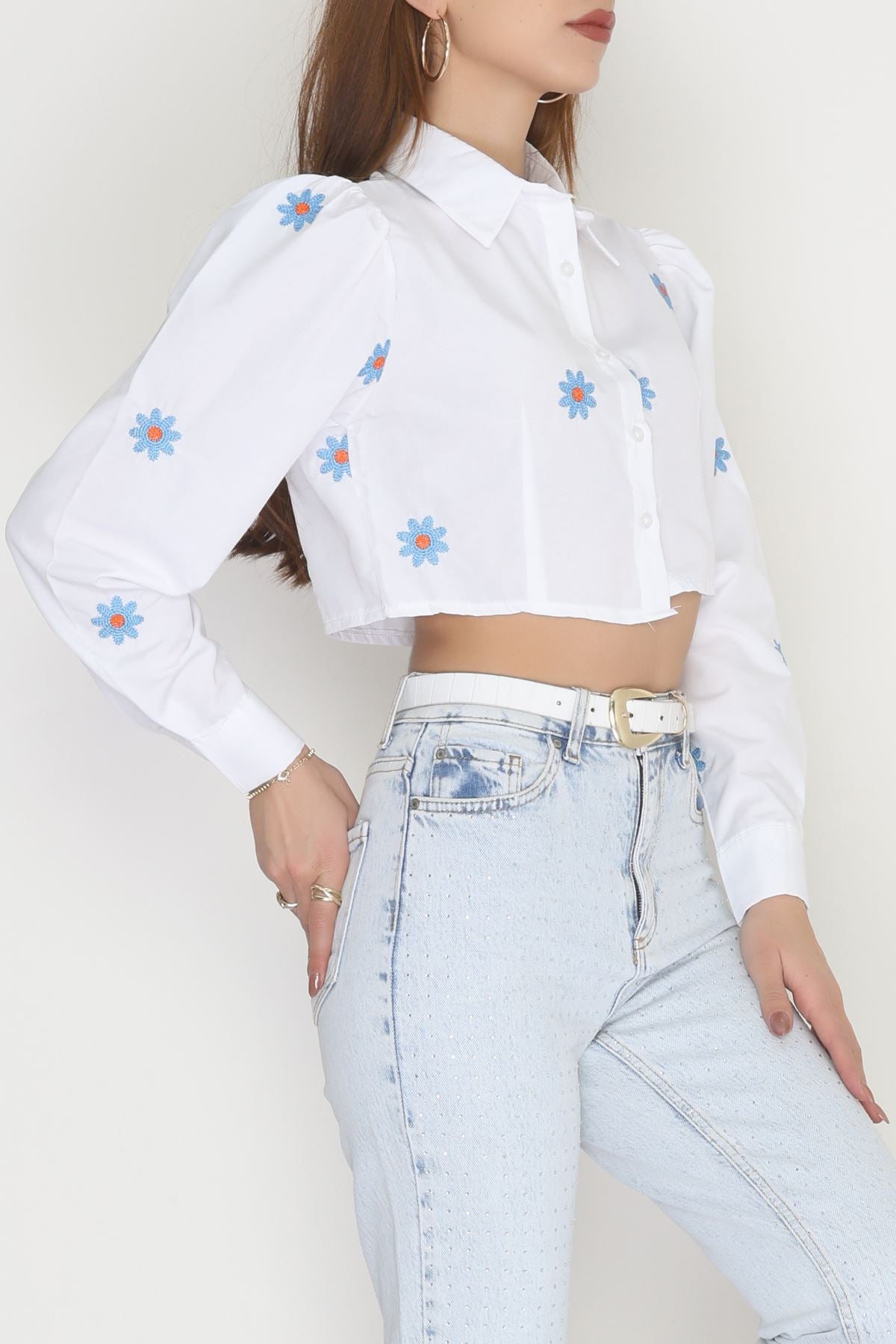 Nakışlı Balon Kol Gömlek Beyaz - 30773.1949.