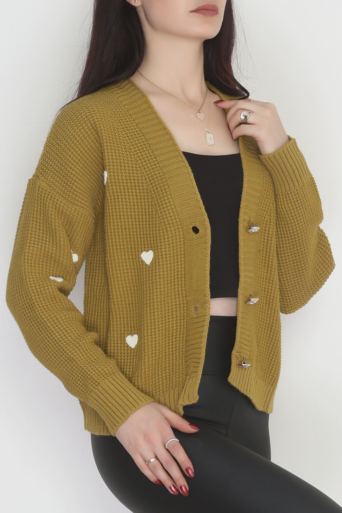 Nakışlı Crop Hırka Yağyeşililatte - 443.1577.