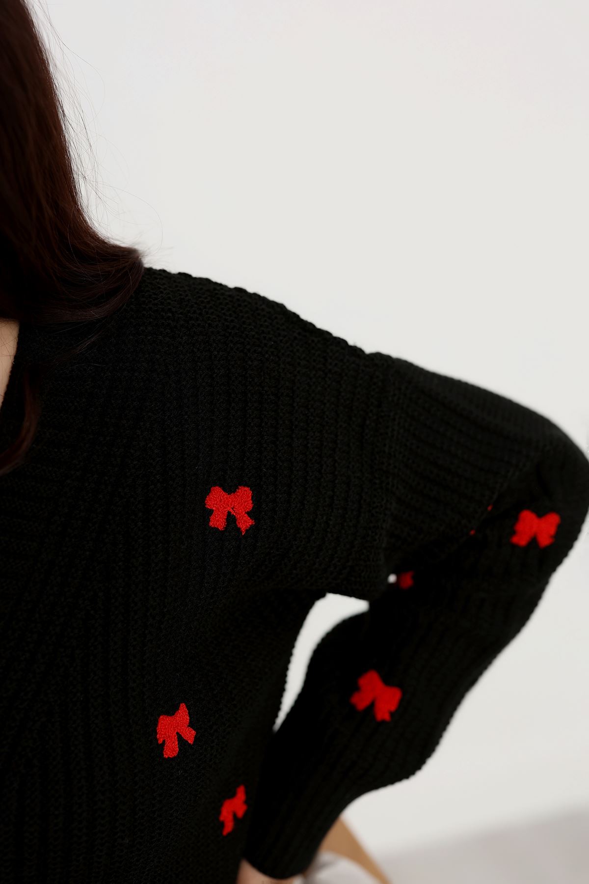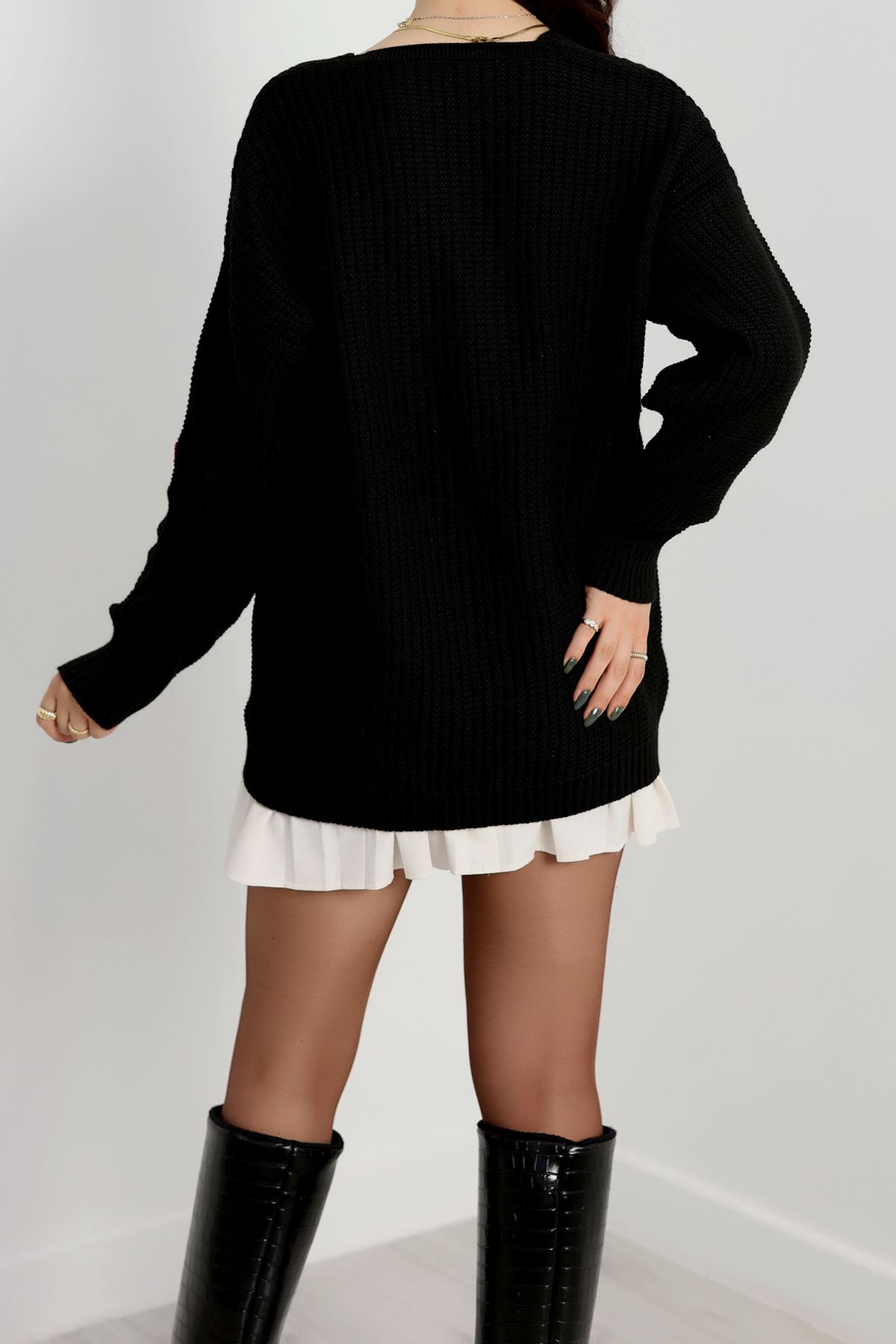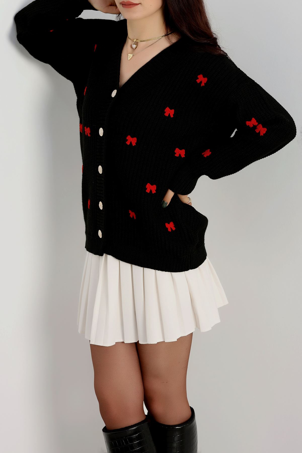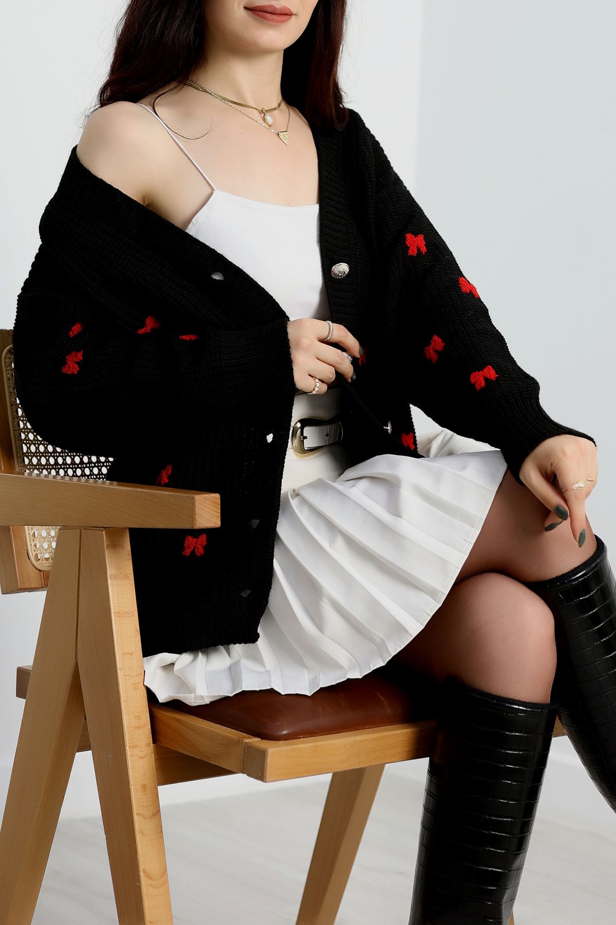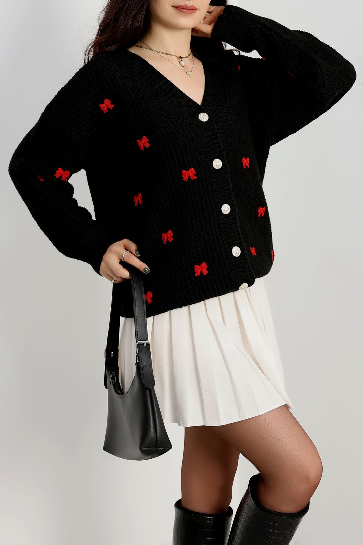 Nakışlı Hırka Siyahkırmızı - 490.1577.