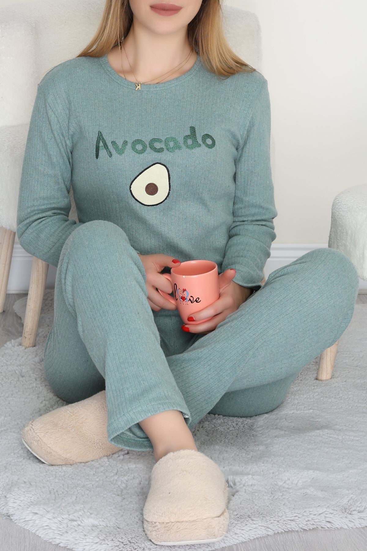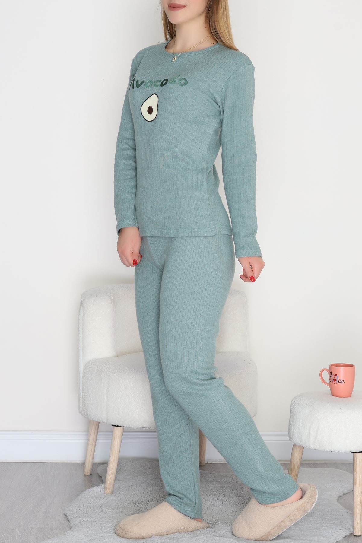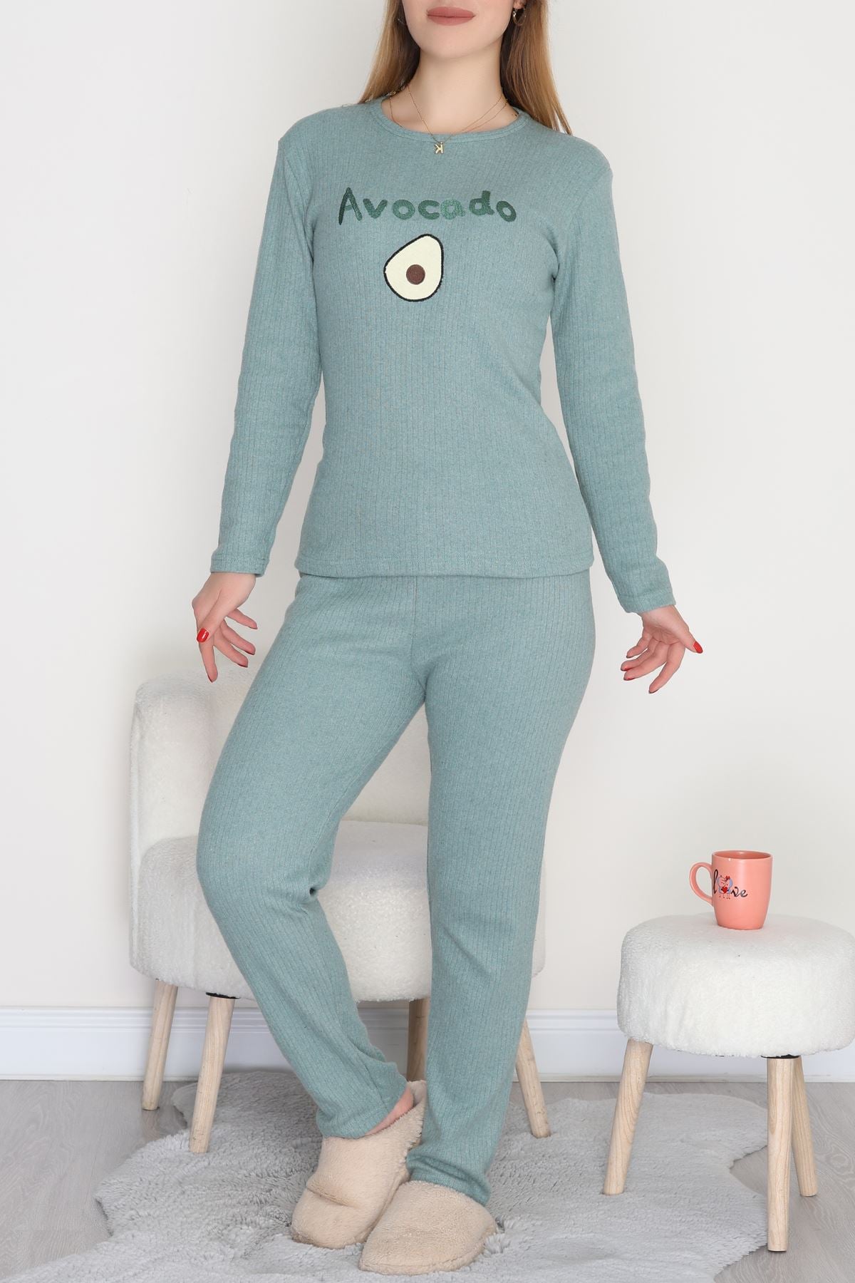 Nakışlı İnterlok Pijama Takımı Yeşilavokado - 800.1287.