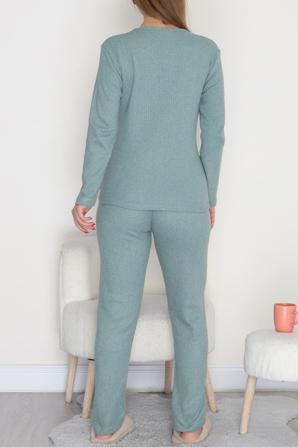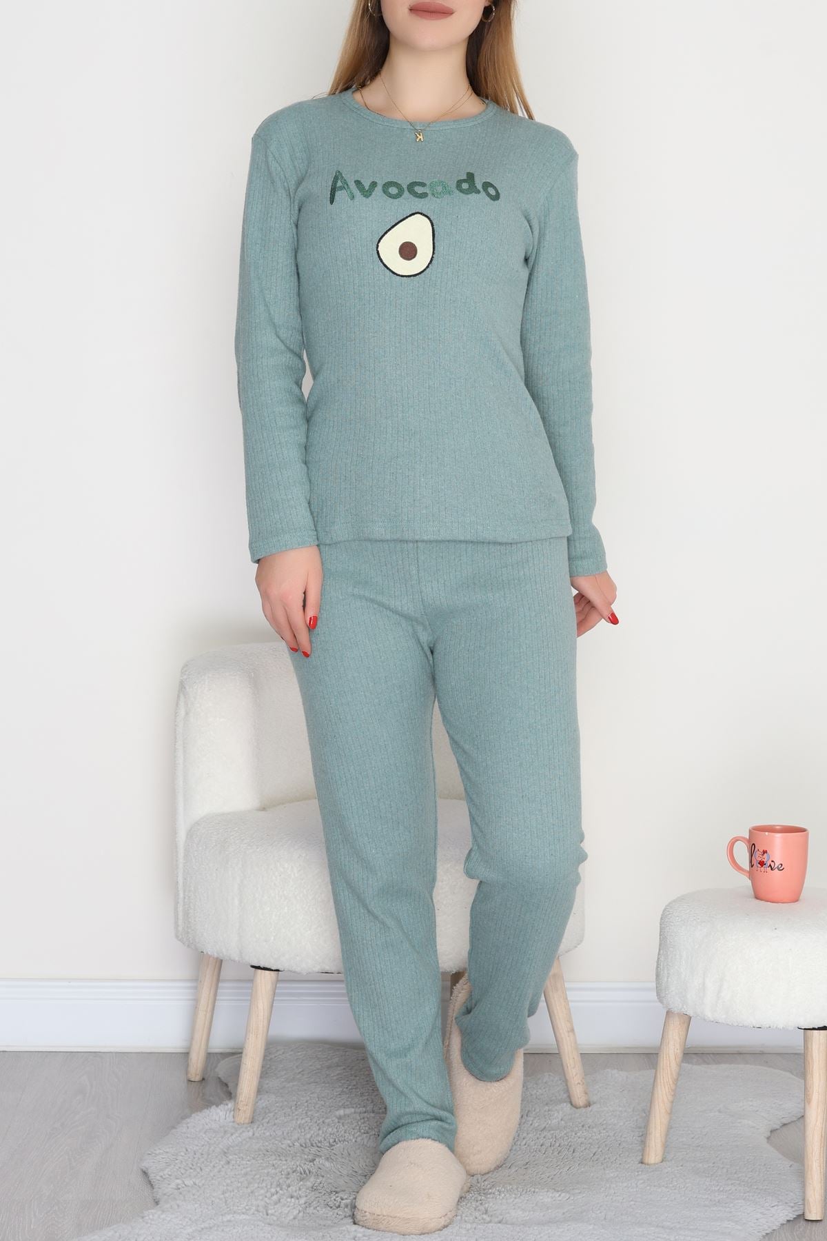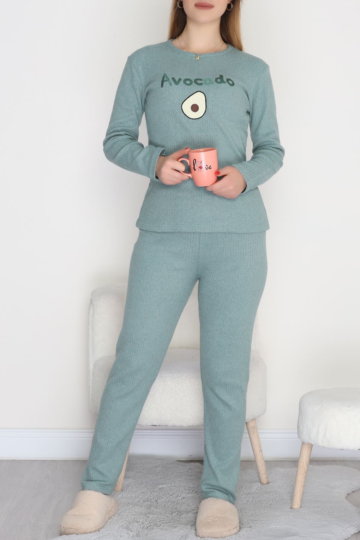 Nakışlı İnterlok Pijama Takımı Yeşilavokado - 800.1287.