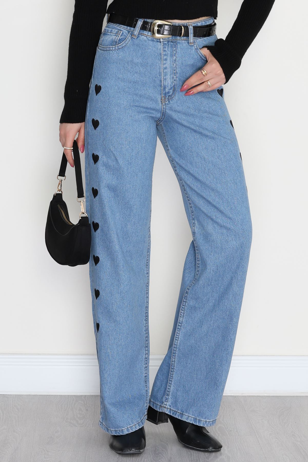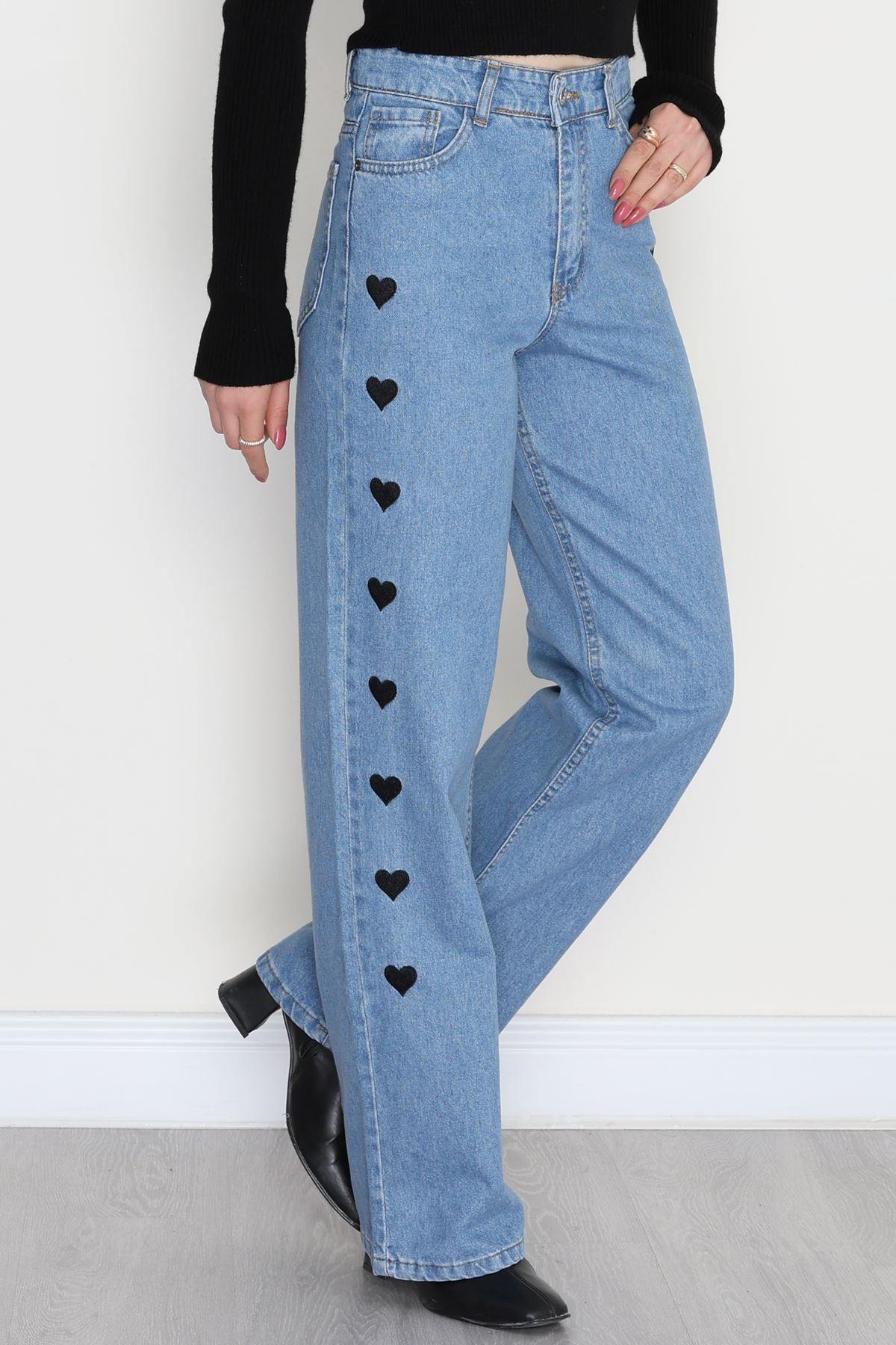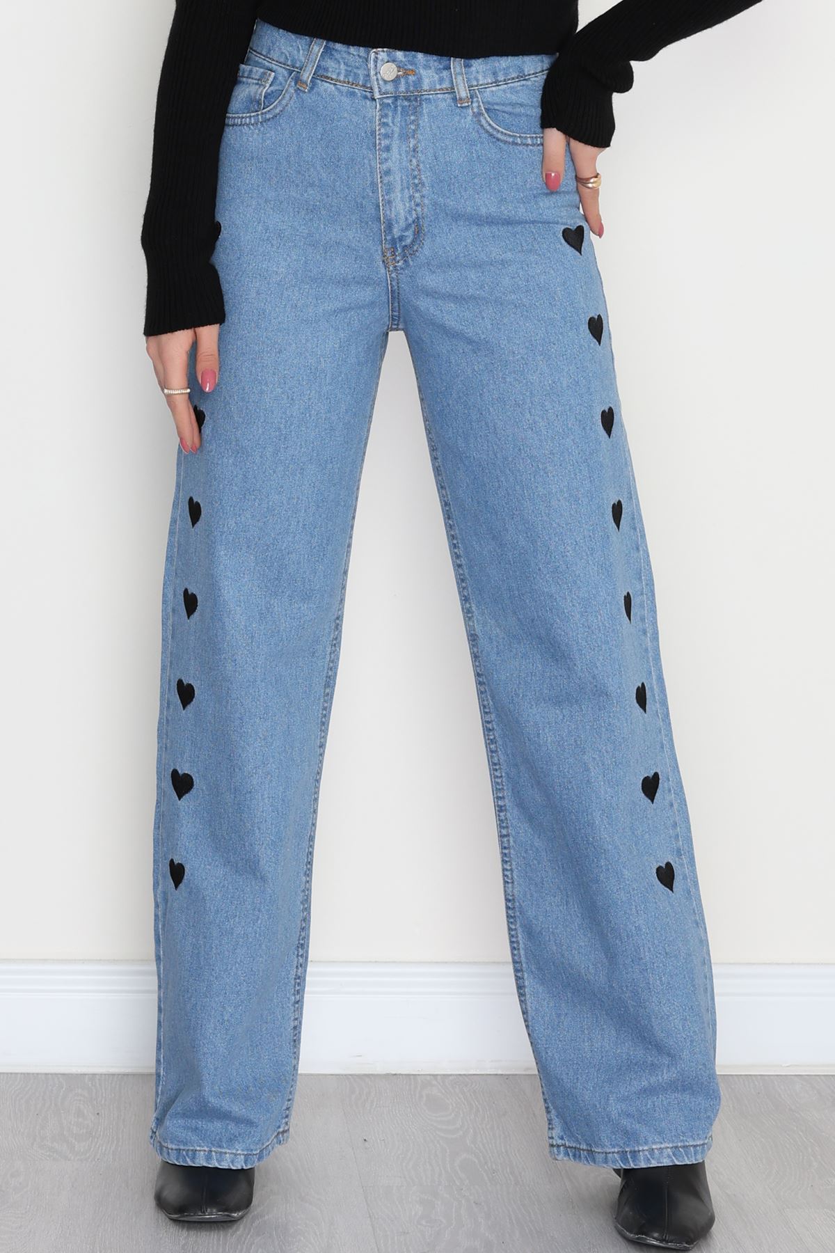 Nakışlı Palazzo Kot Pantolon Açıkmavi - 31324.2001.