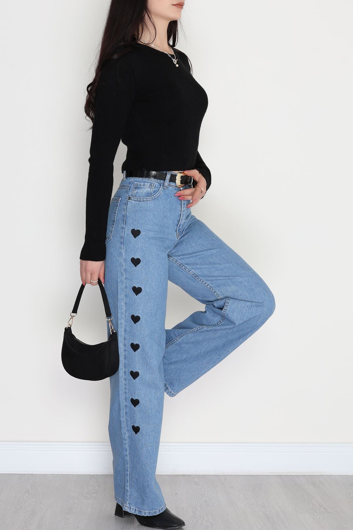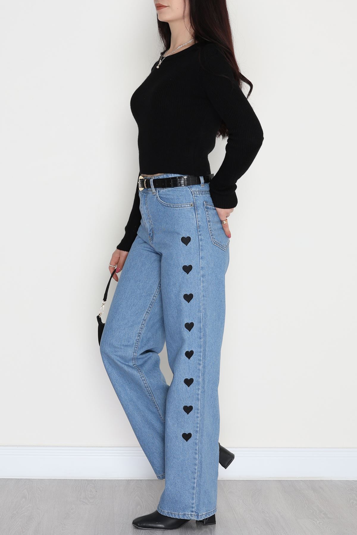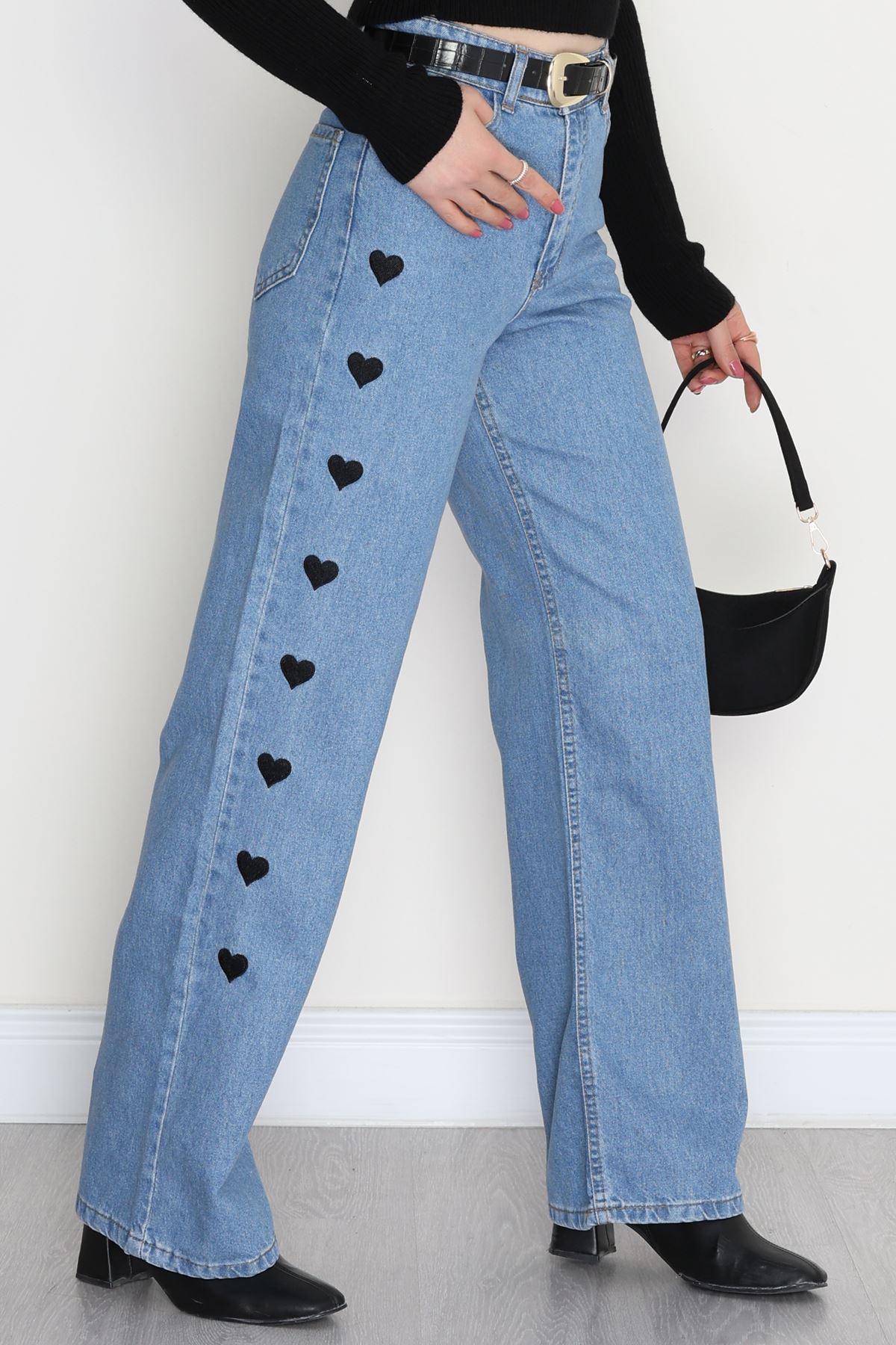 Nakışlı Palazzo Kot Pantolon Açıkmavi - 31324.2001.