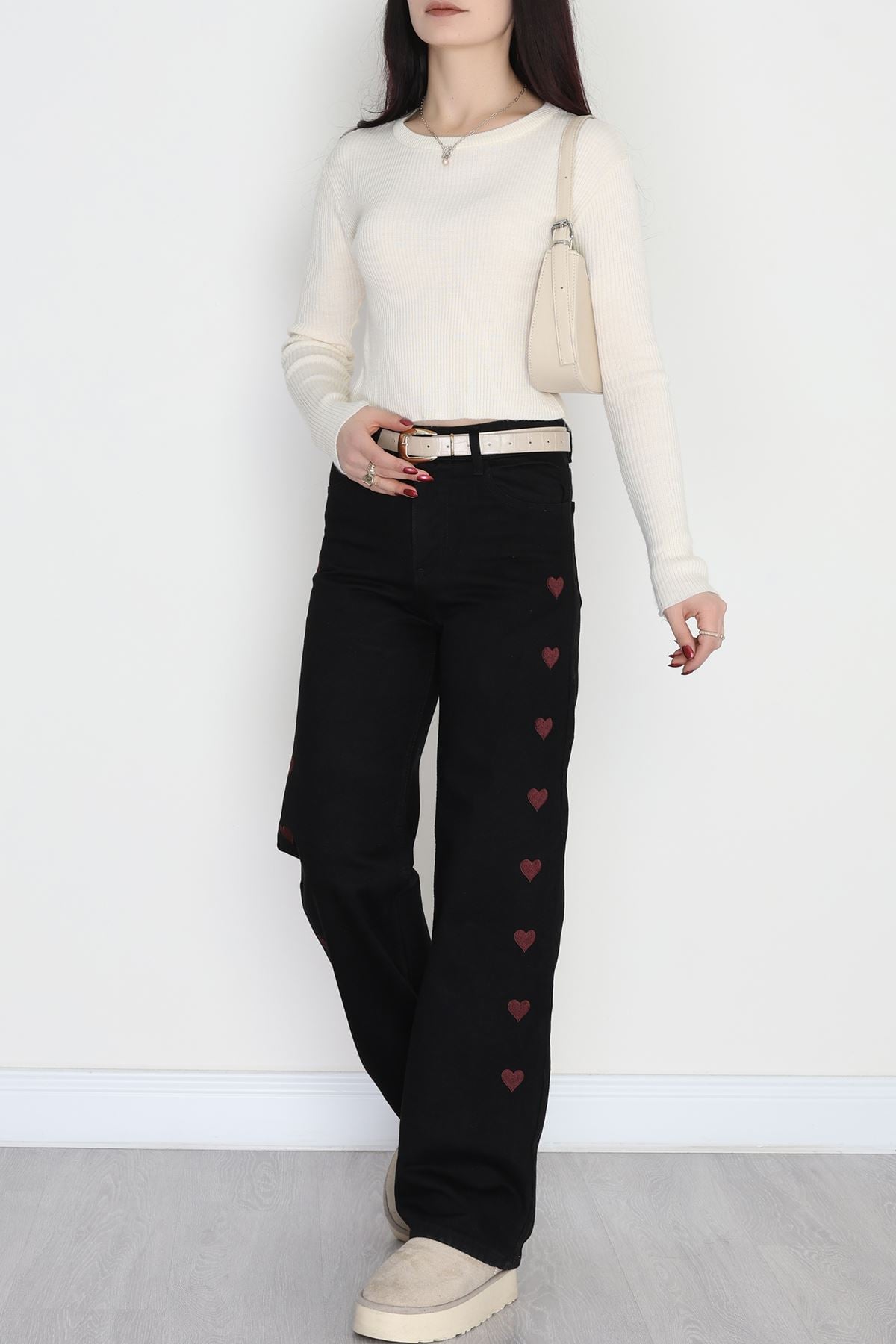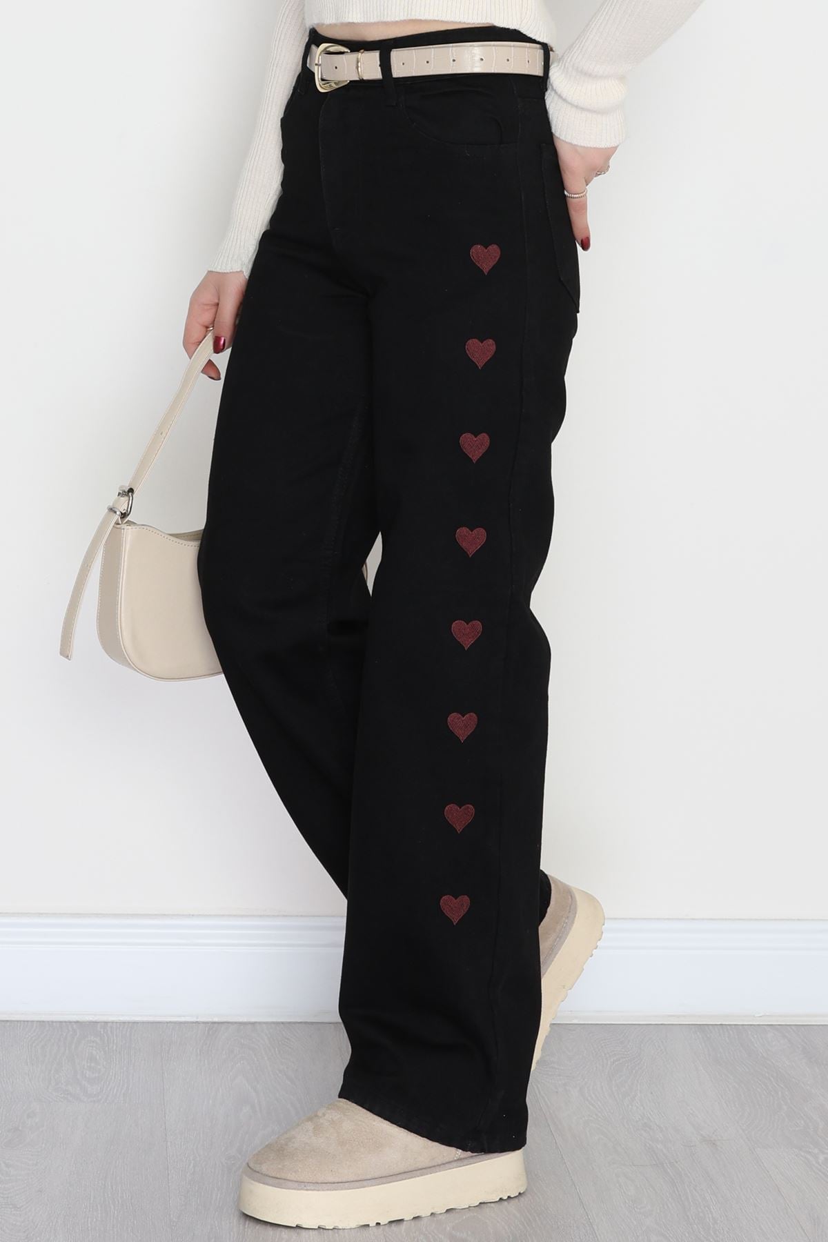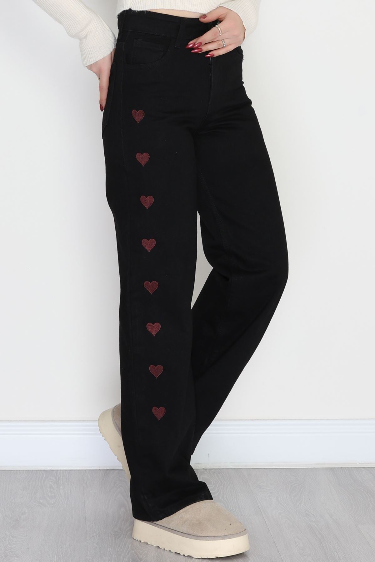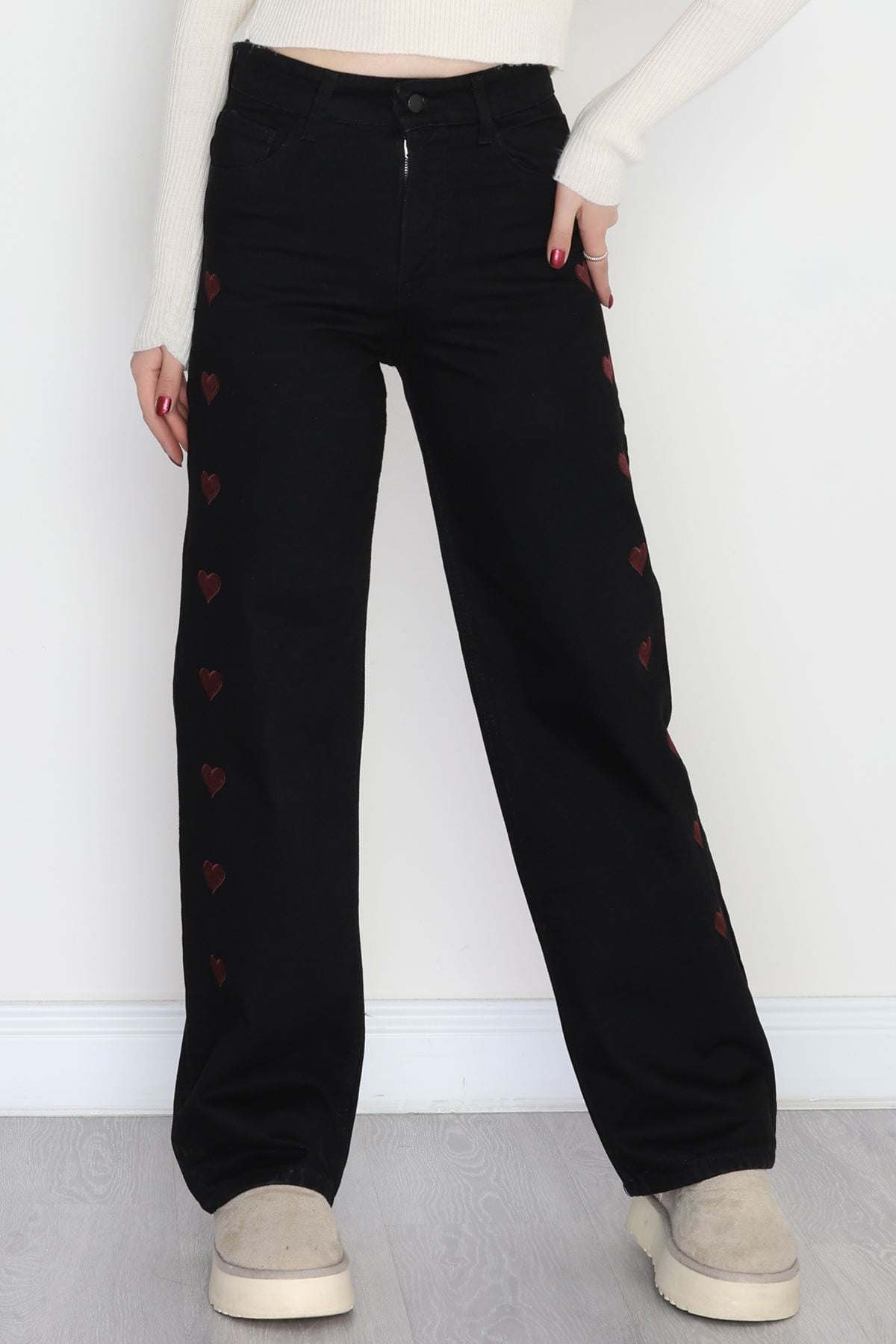 Nakışlı Palazzo Kot Pantolon Siyahbordo - 31324.2001.