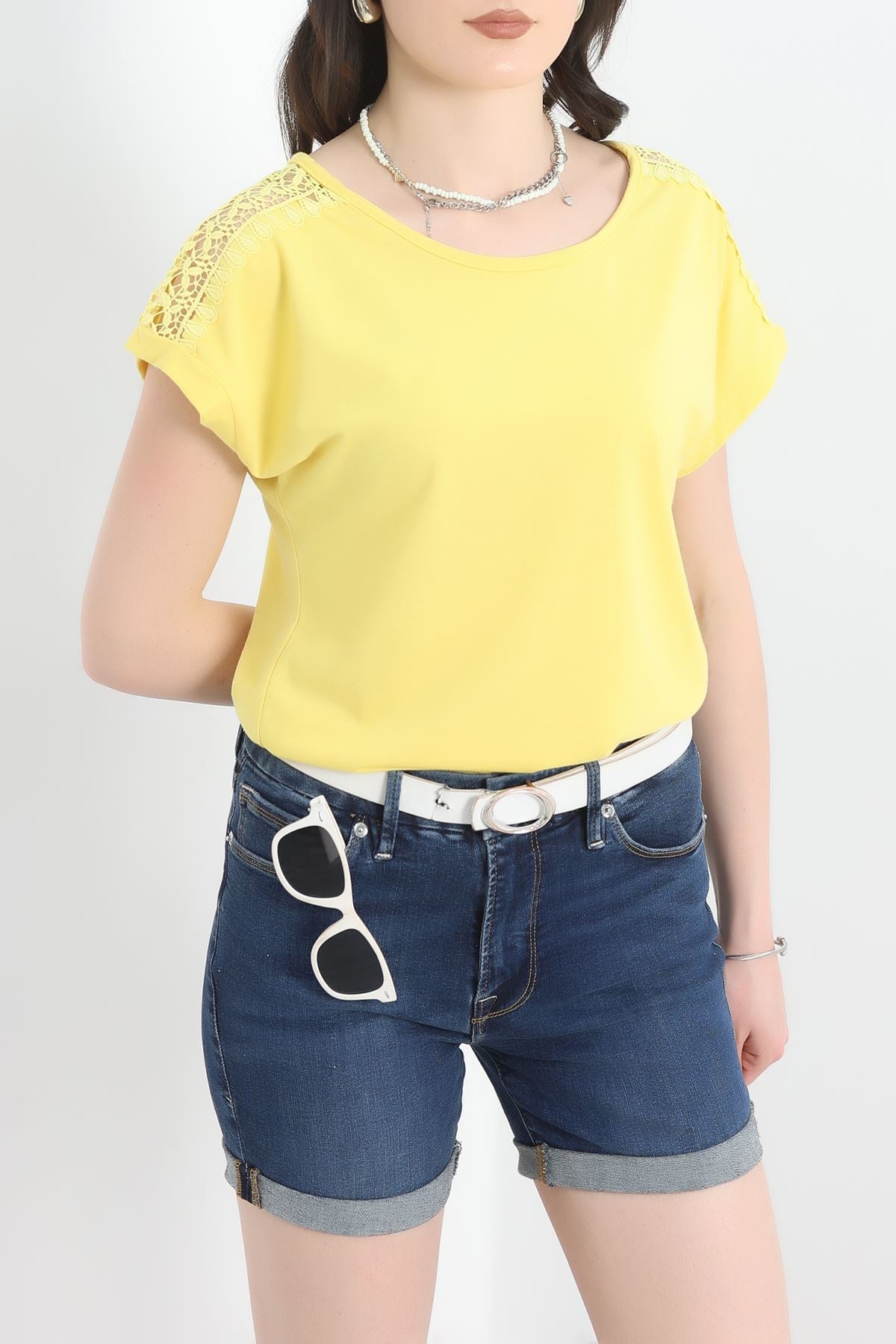 Omuz Dantelli Bluz Sarı - 20766.599.