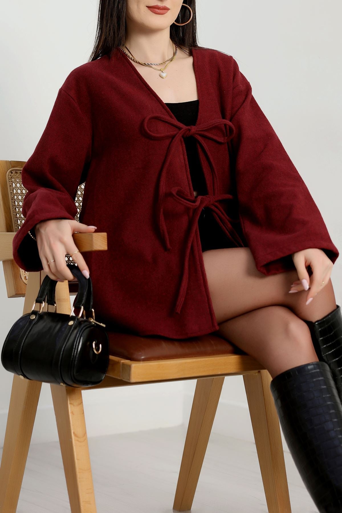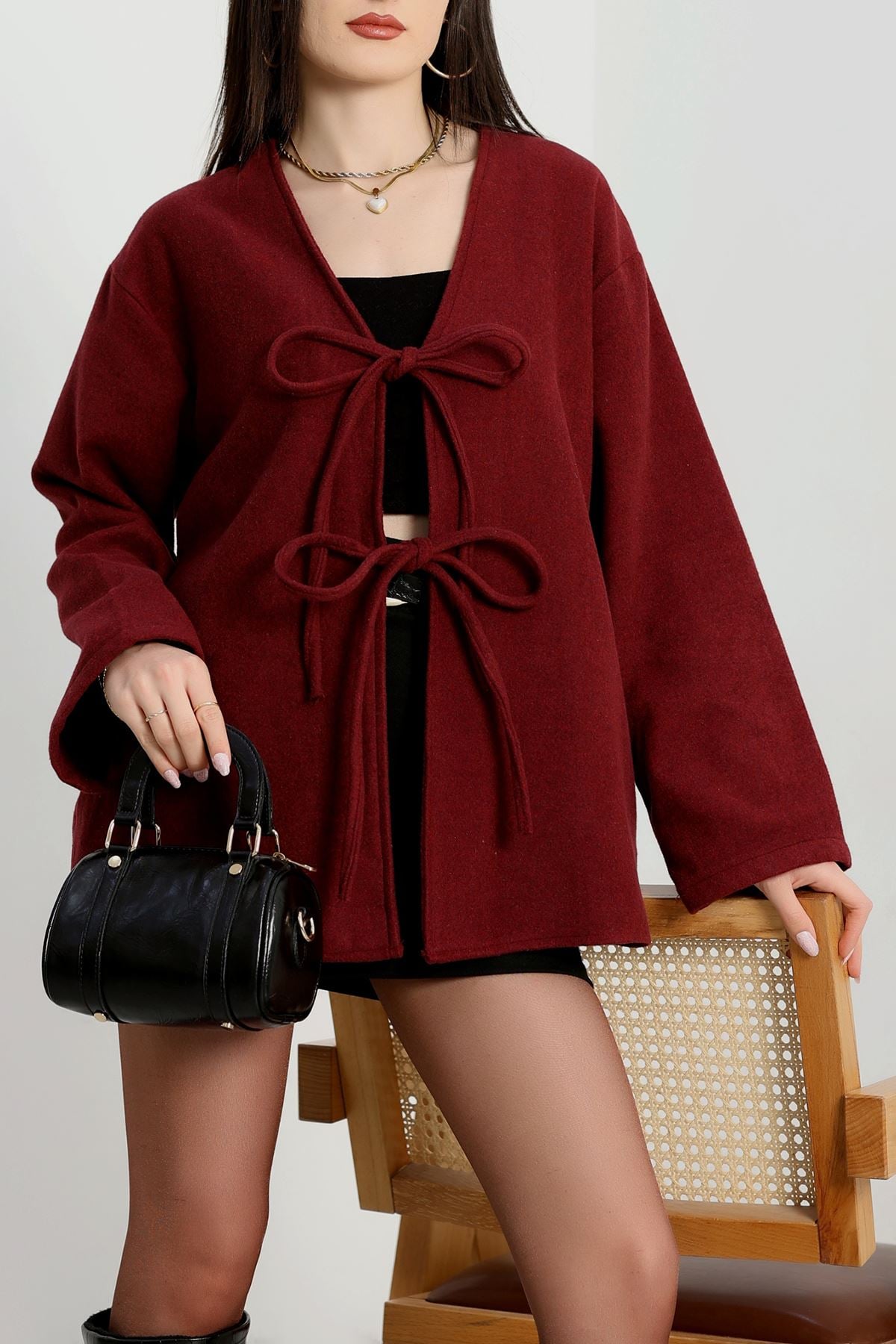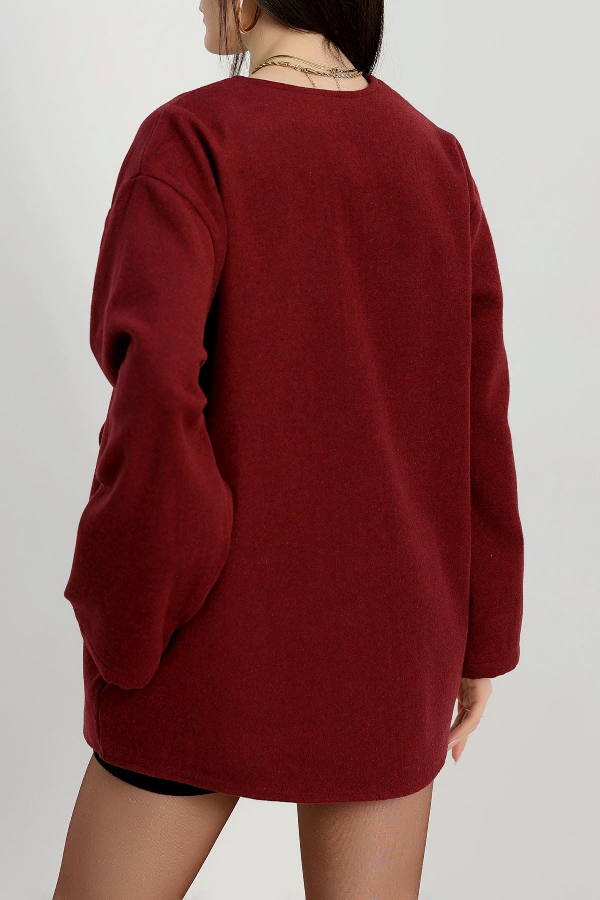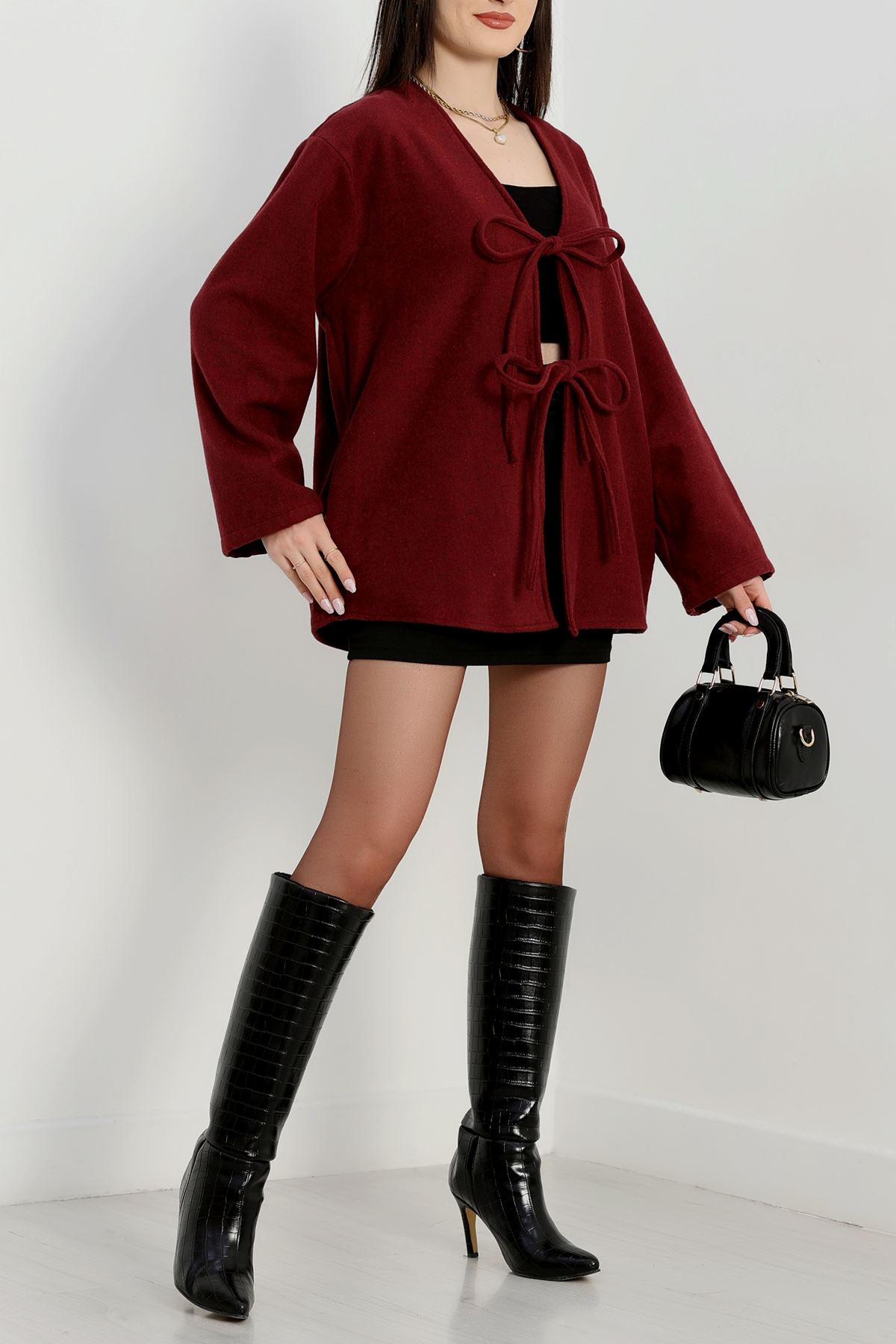 Önü Bağcıklı Kaşe Hırka Bordo - 70995.1775.