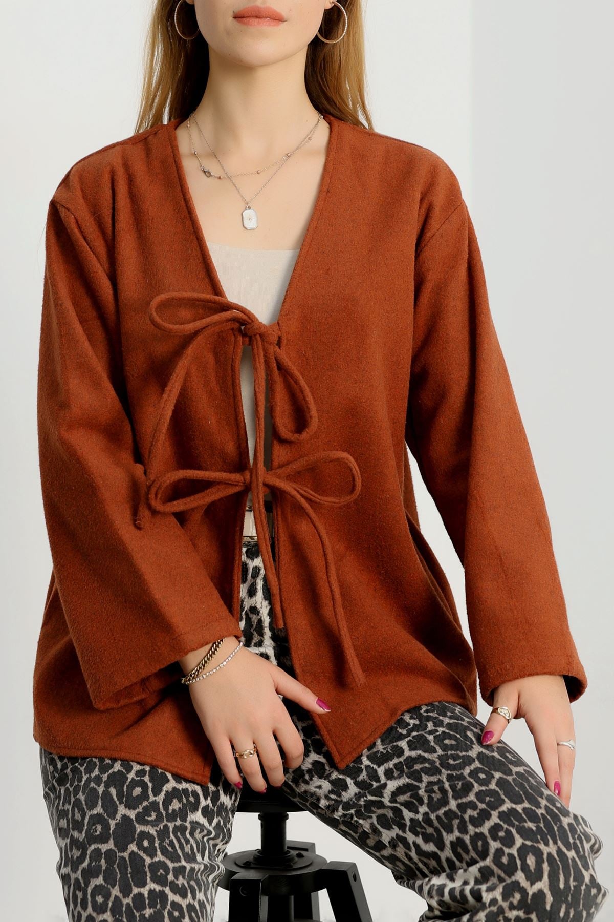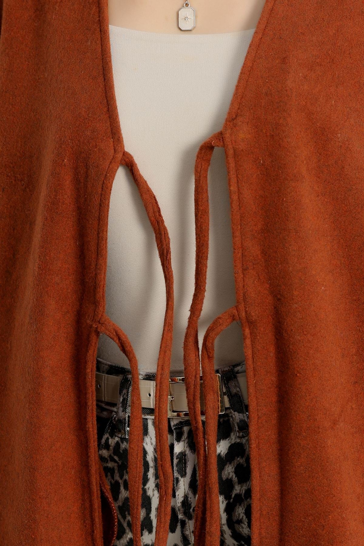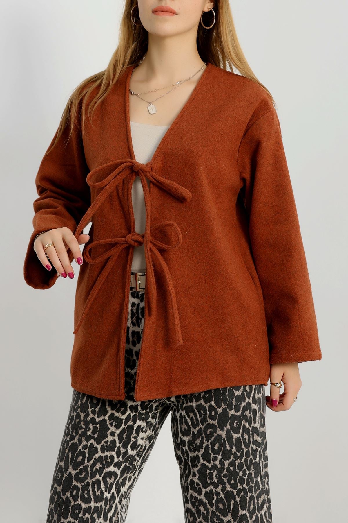 Önü Bağcıklı Kaşe Hırka Tarçın - 70995.1775.