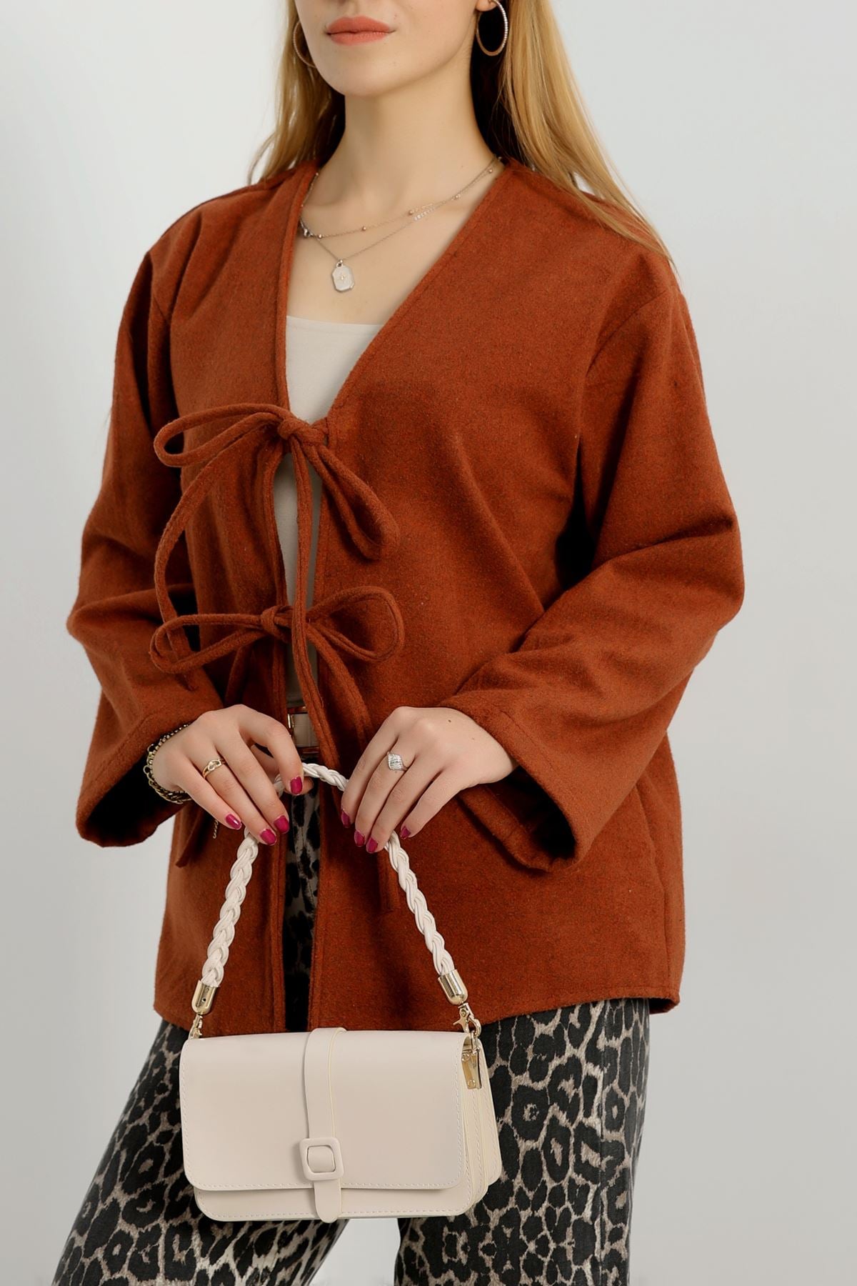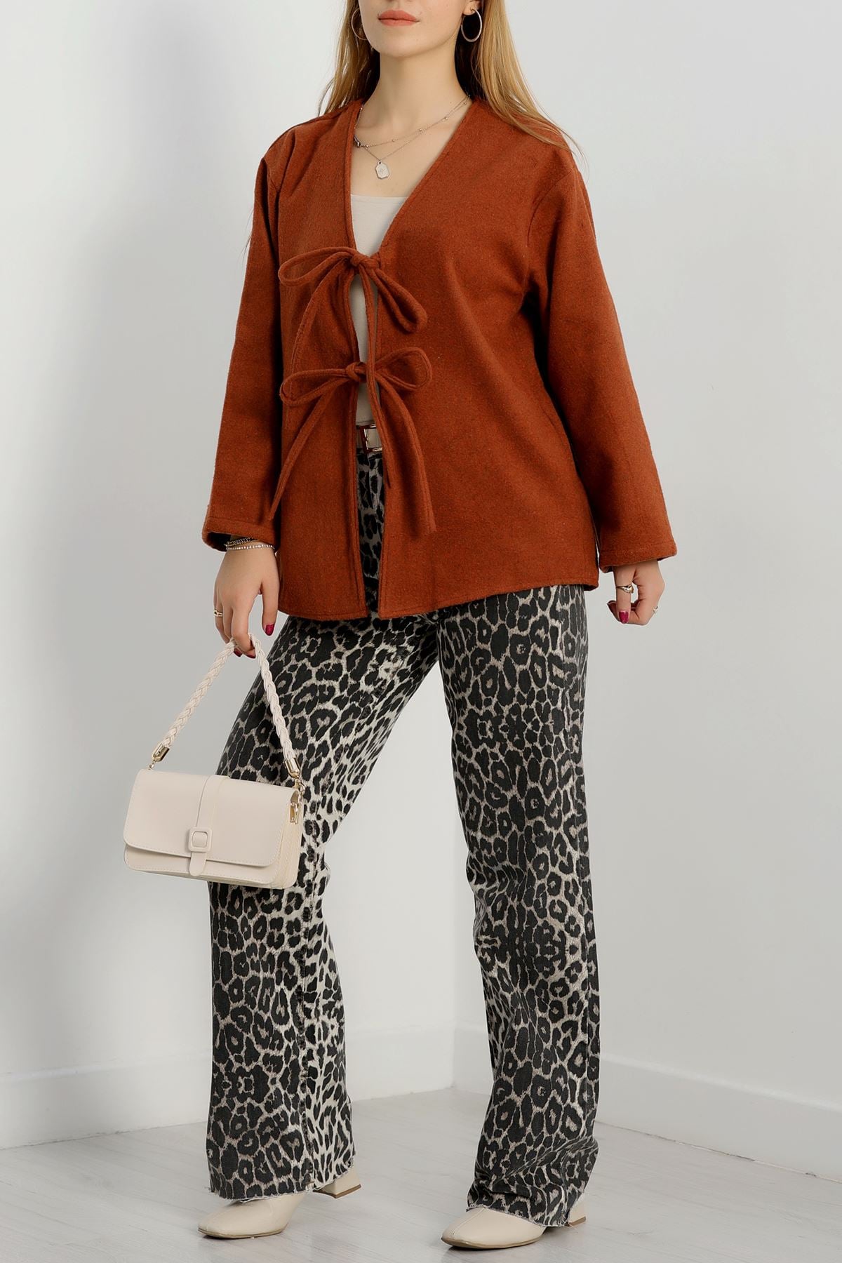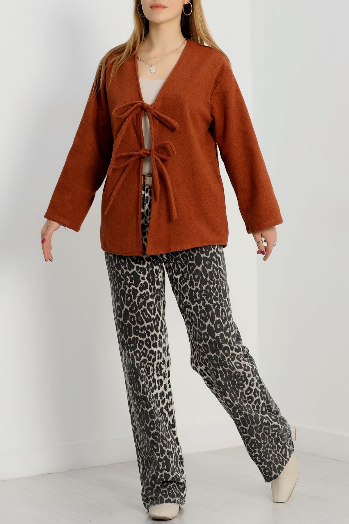Önü Bağcıklı Kaşe Hırka Tarçın - 70995.1775.