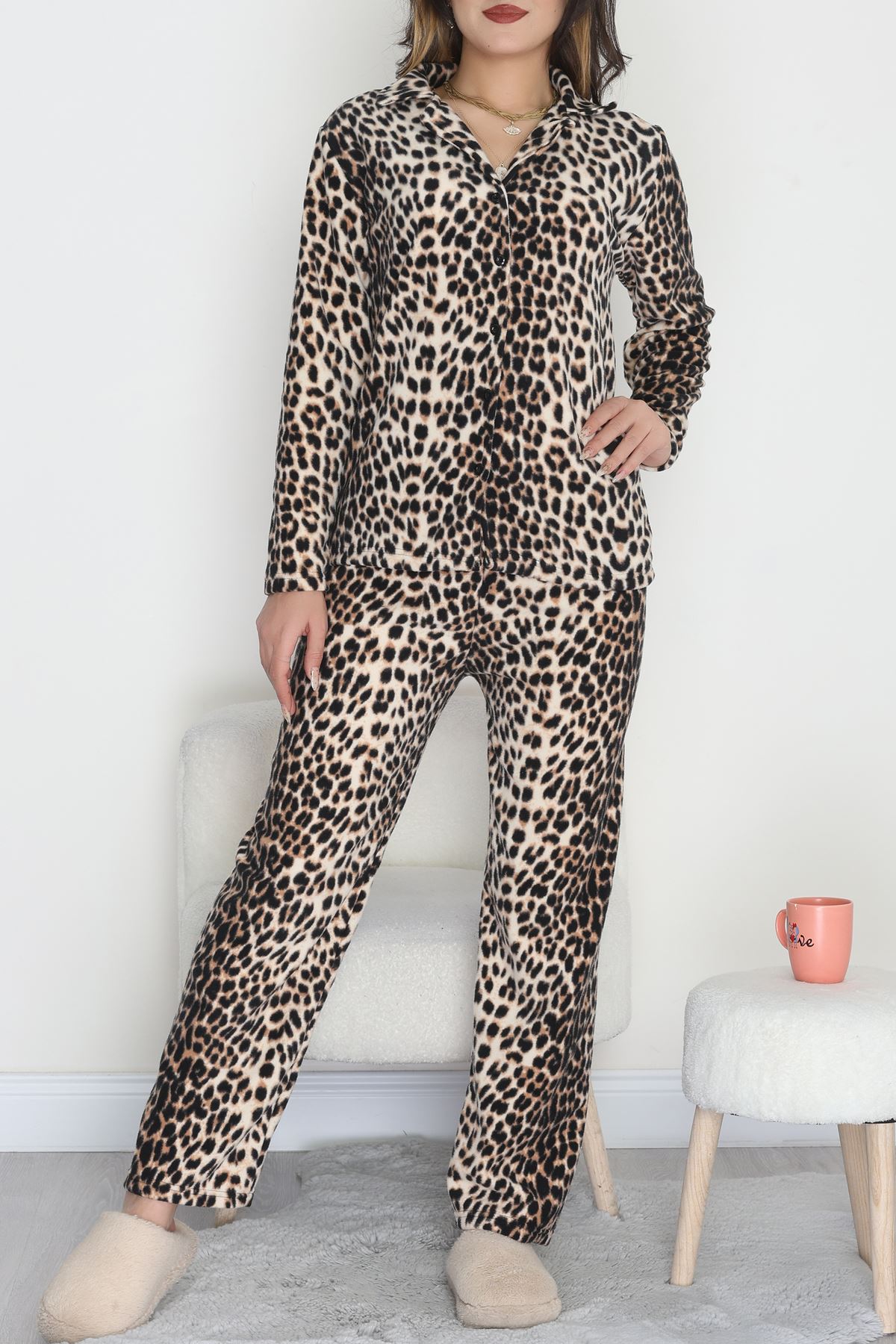 Önü Düğmeli Polar Takım Leopar - 451.1287.