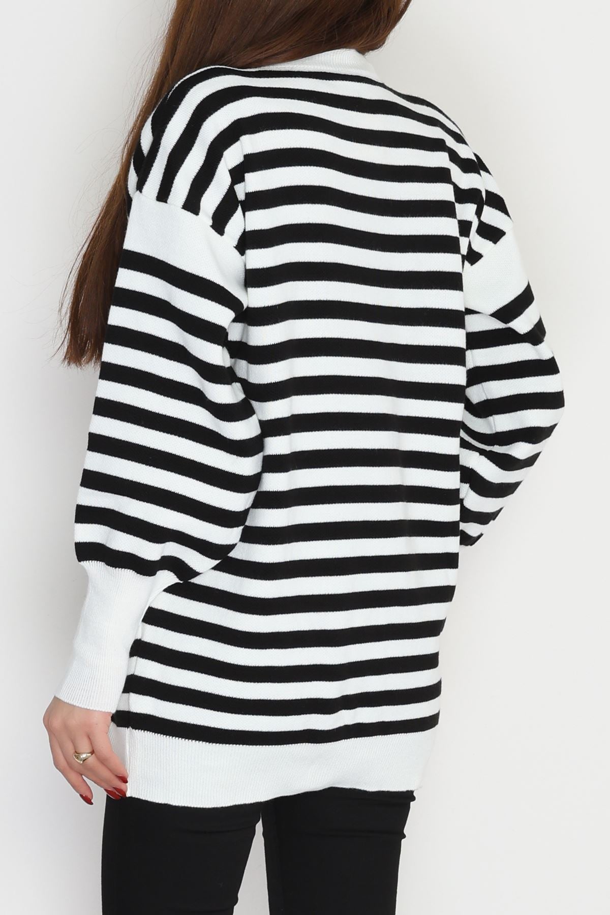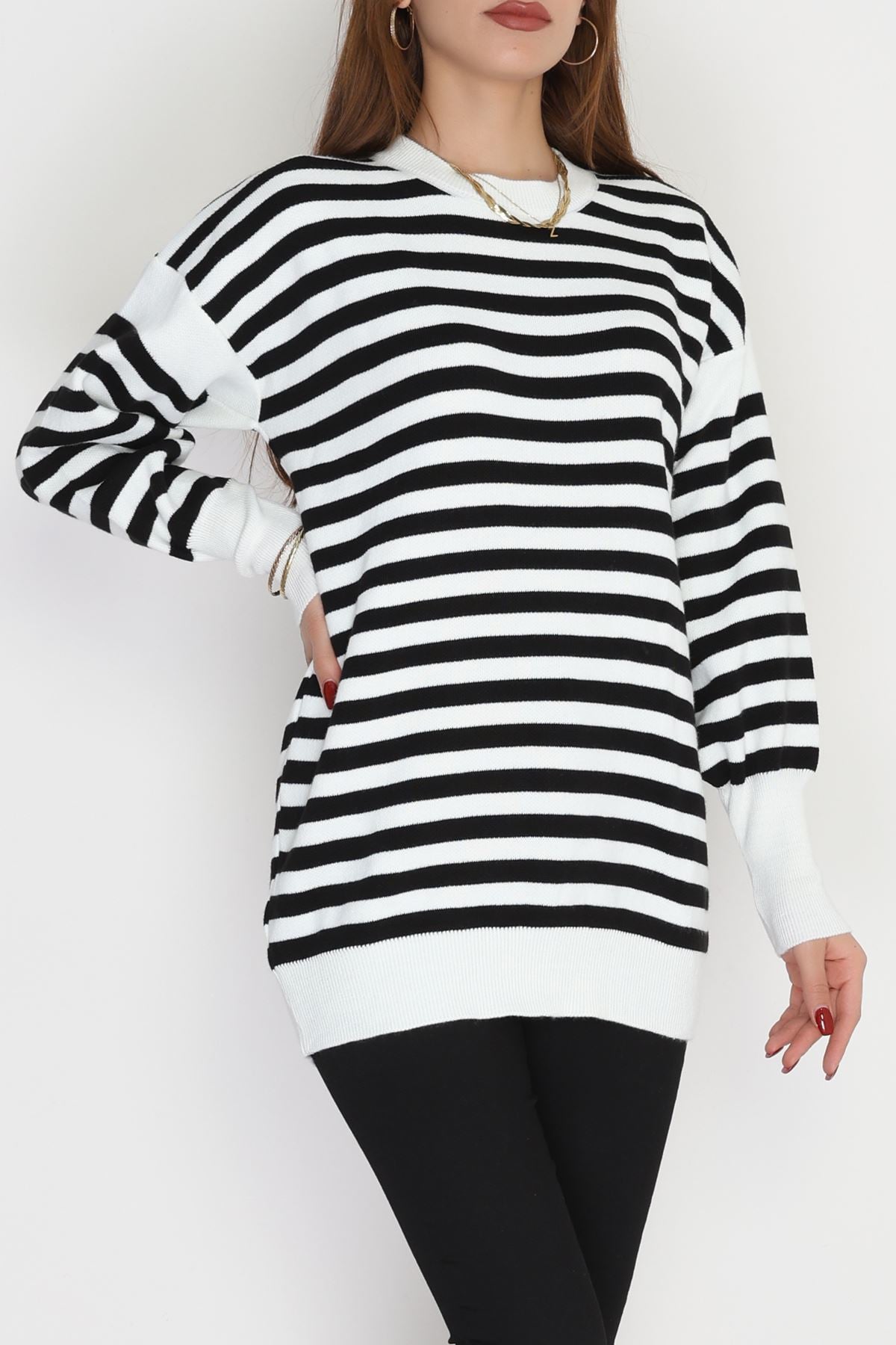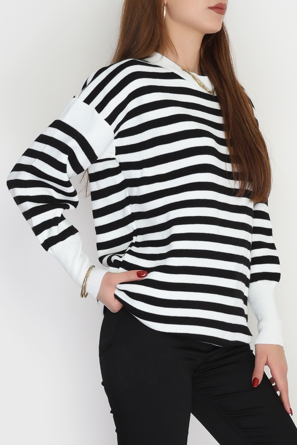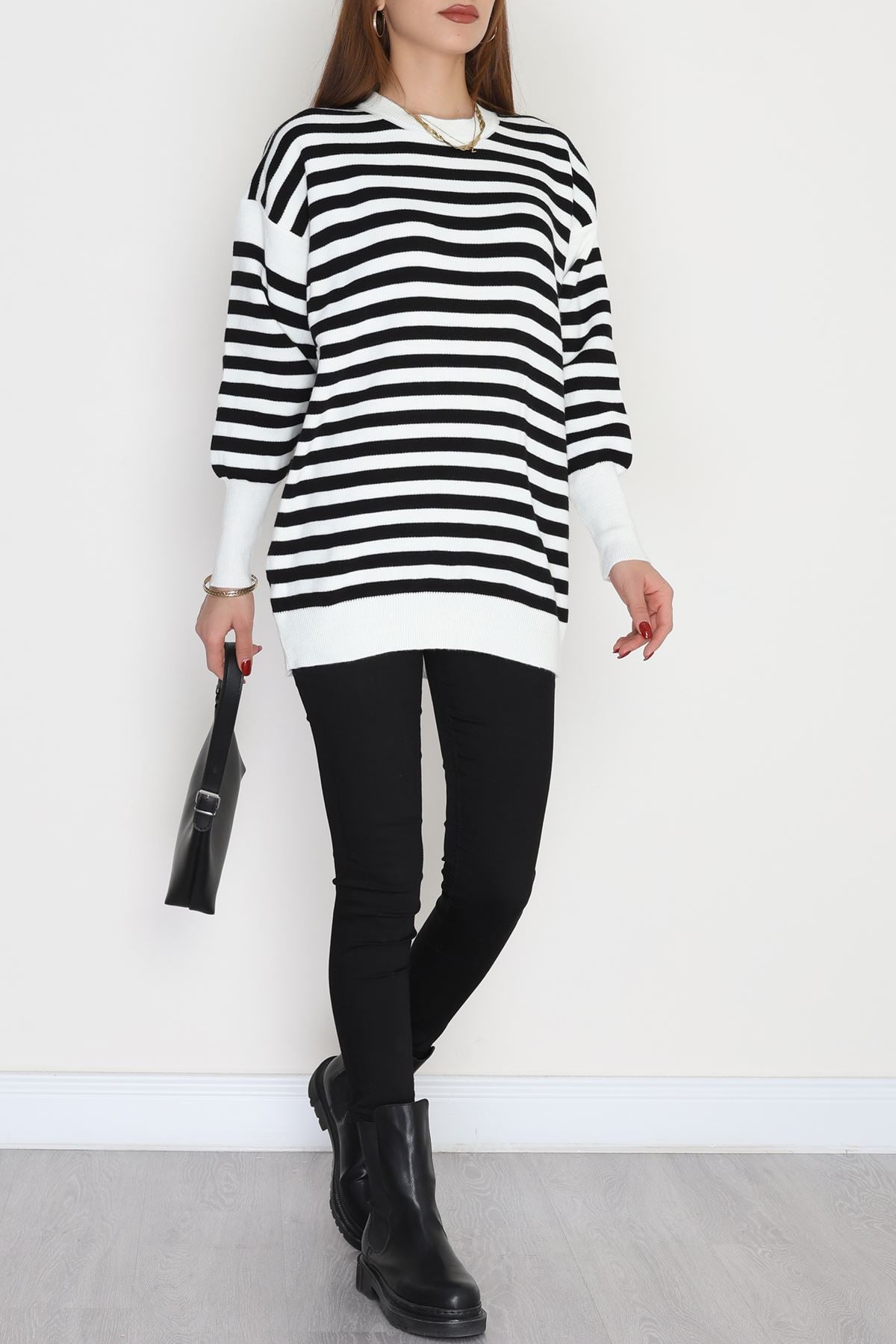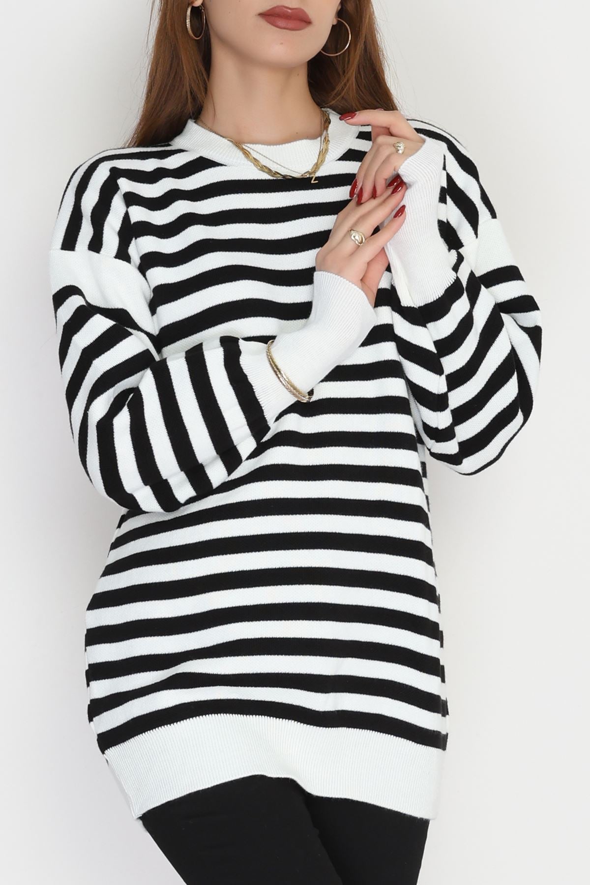 Oversıze Çizgili Triko Beyazsiyah - 2025.1577.