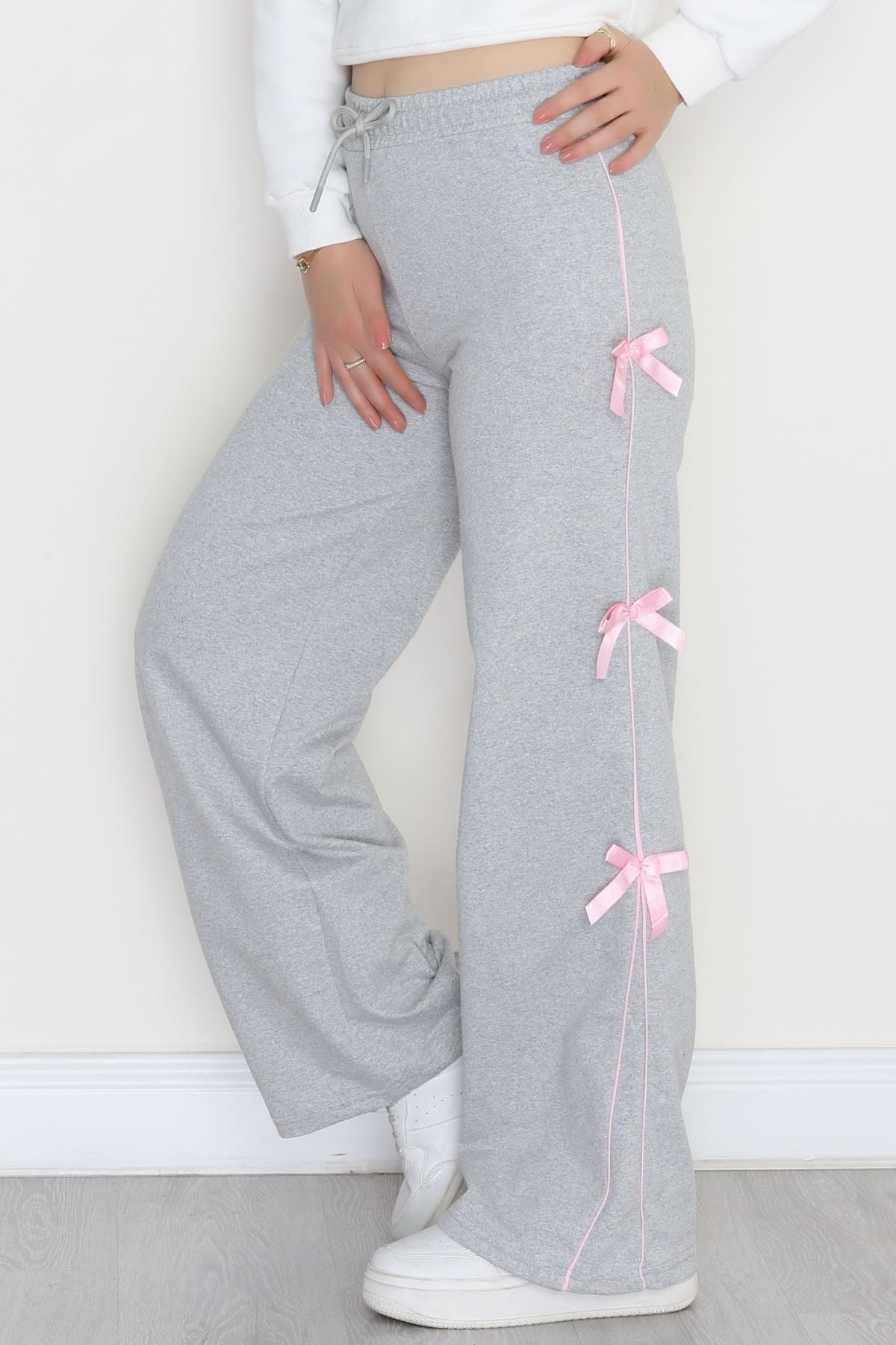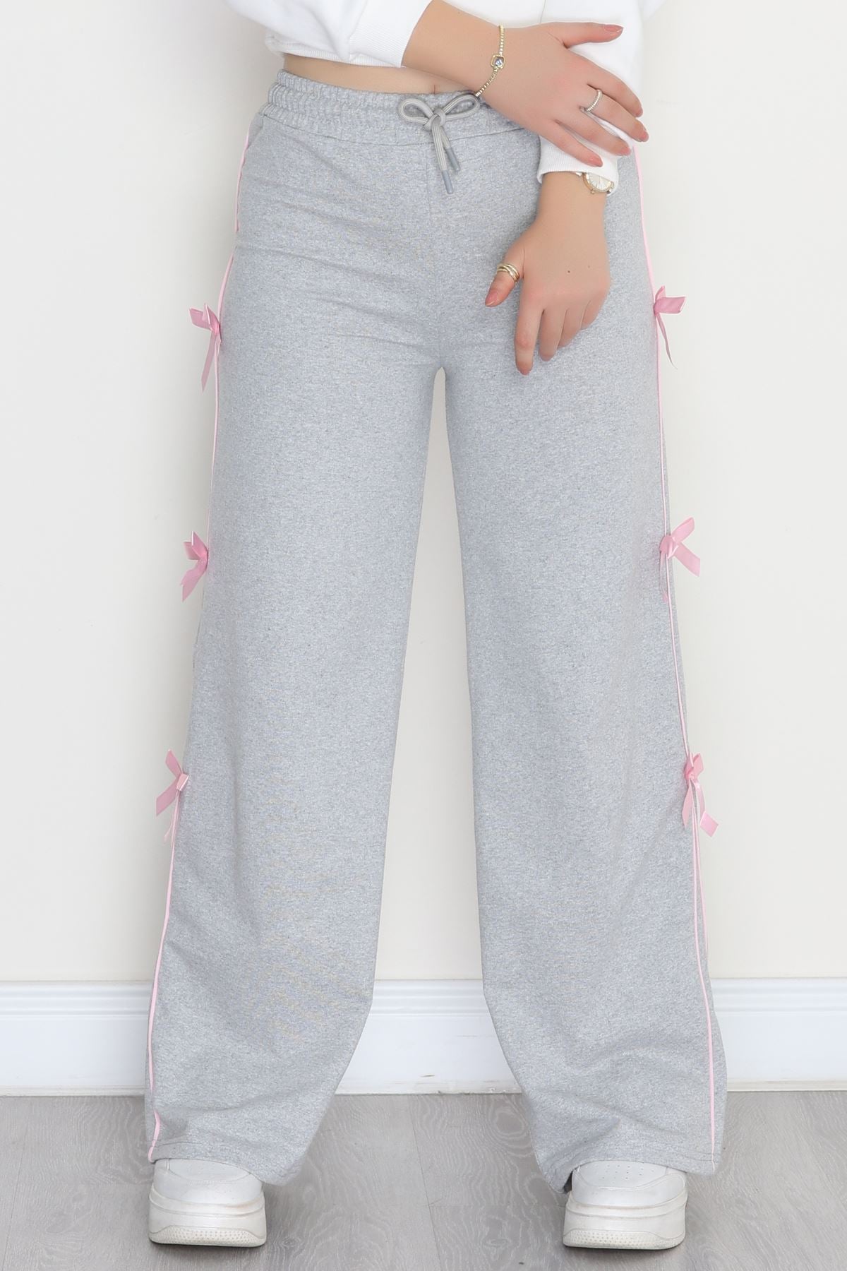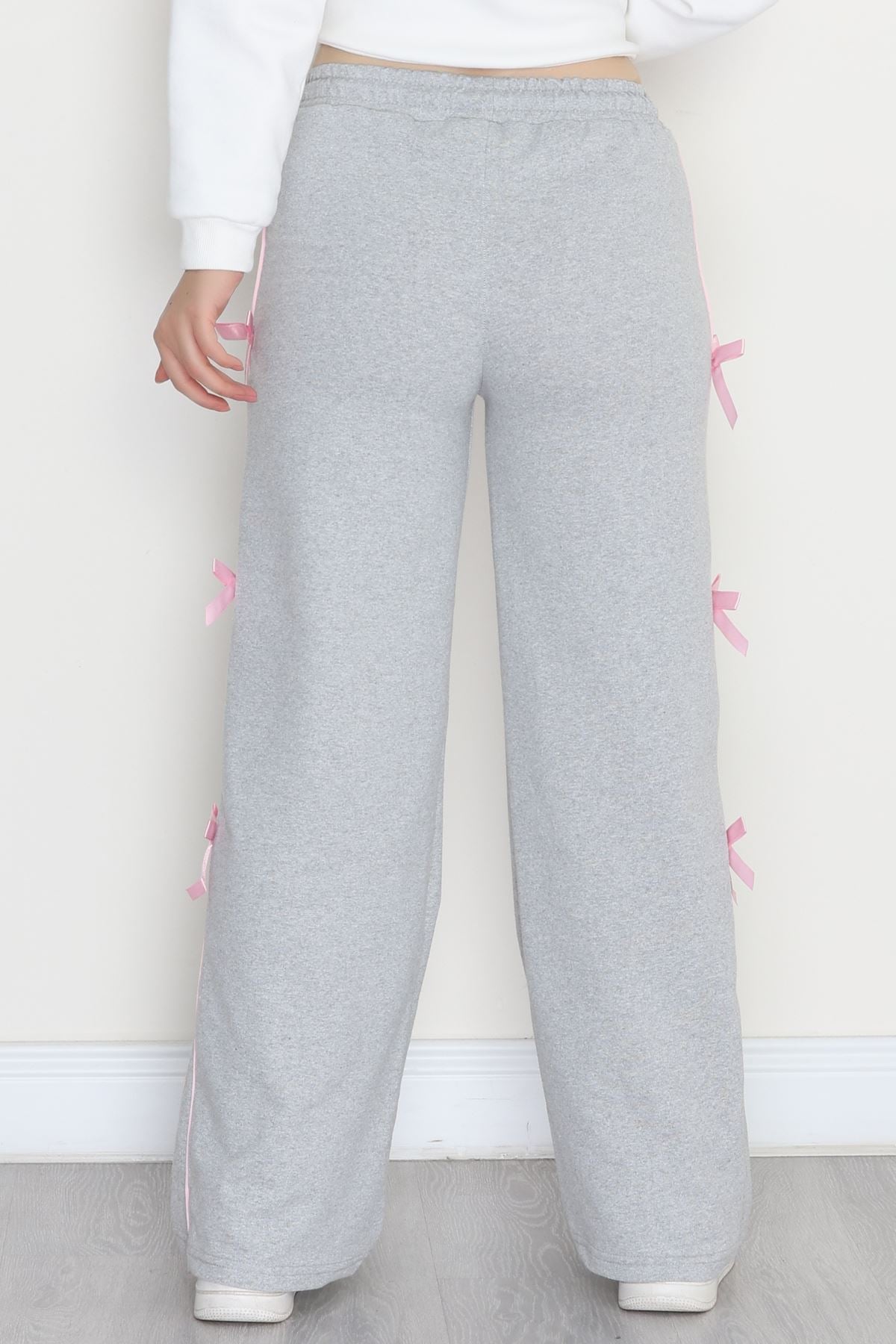 Özel Tasarım Biyeli Kurdeleli İki İplik Eşofman Altı Gri - 70192.1857.
