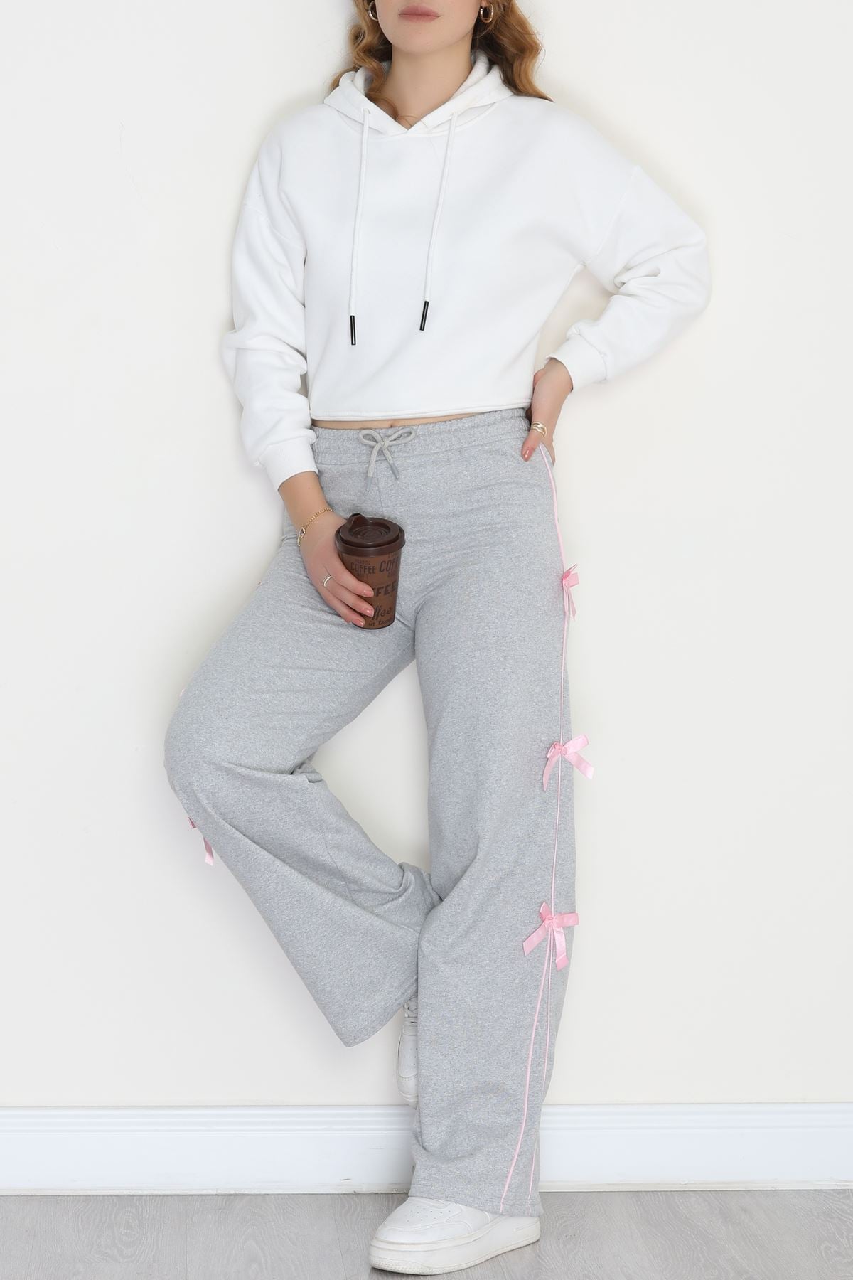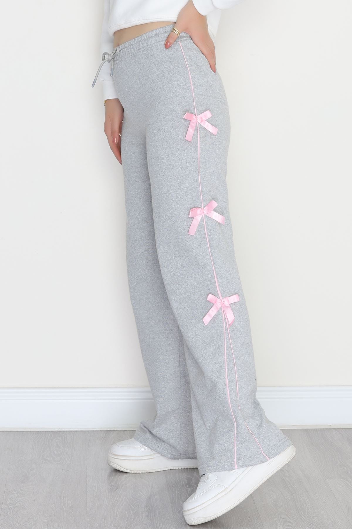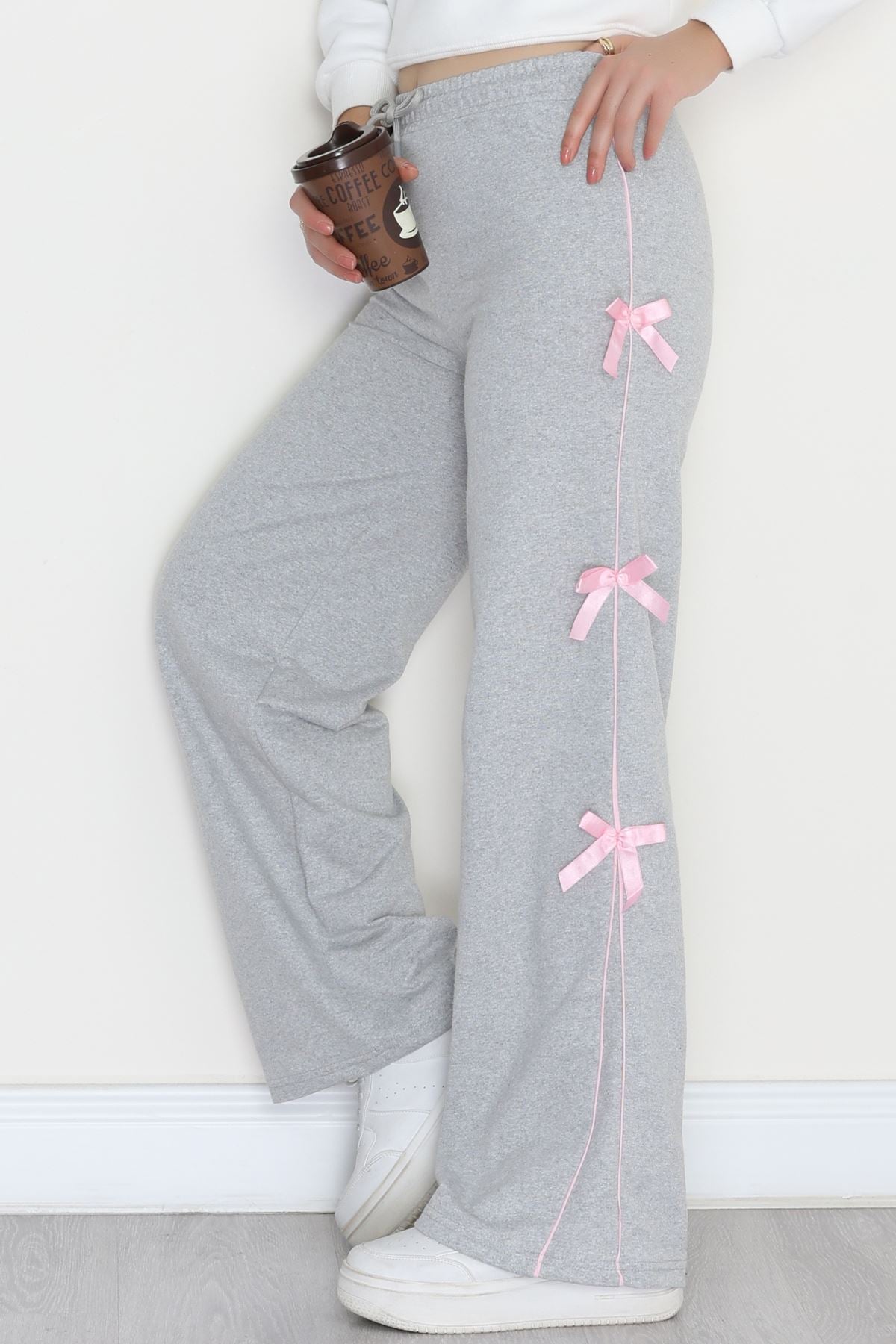 Özel Tasarım Biyeli Kurdeleli İki İplik Eşofman Altı Gri - 70192.1857.