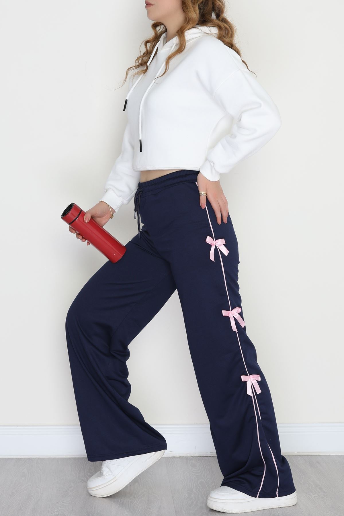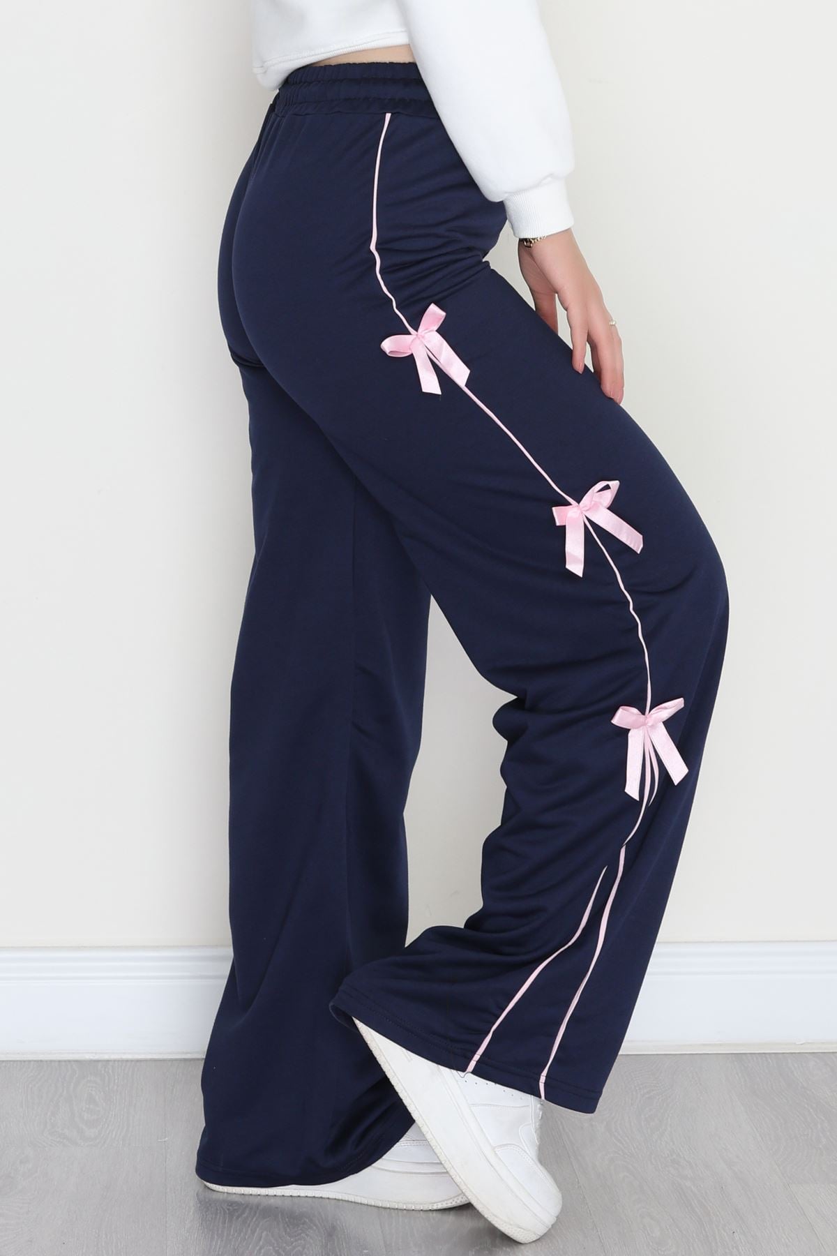 Özel Tasarım Biyeli Kurdeleli İki İplik Eşofman Altı Lacivert - 70192.1857.