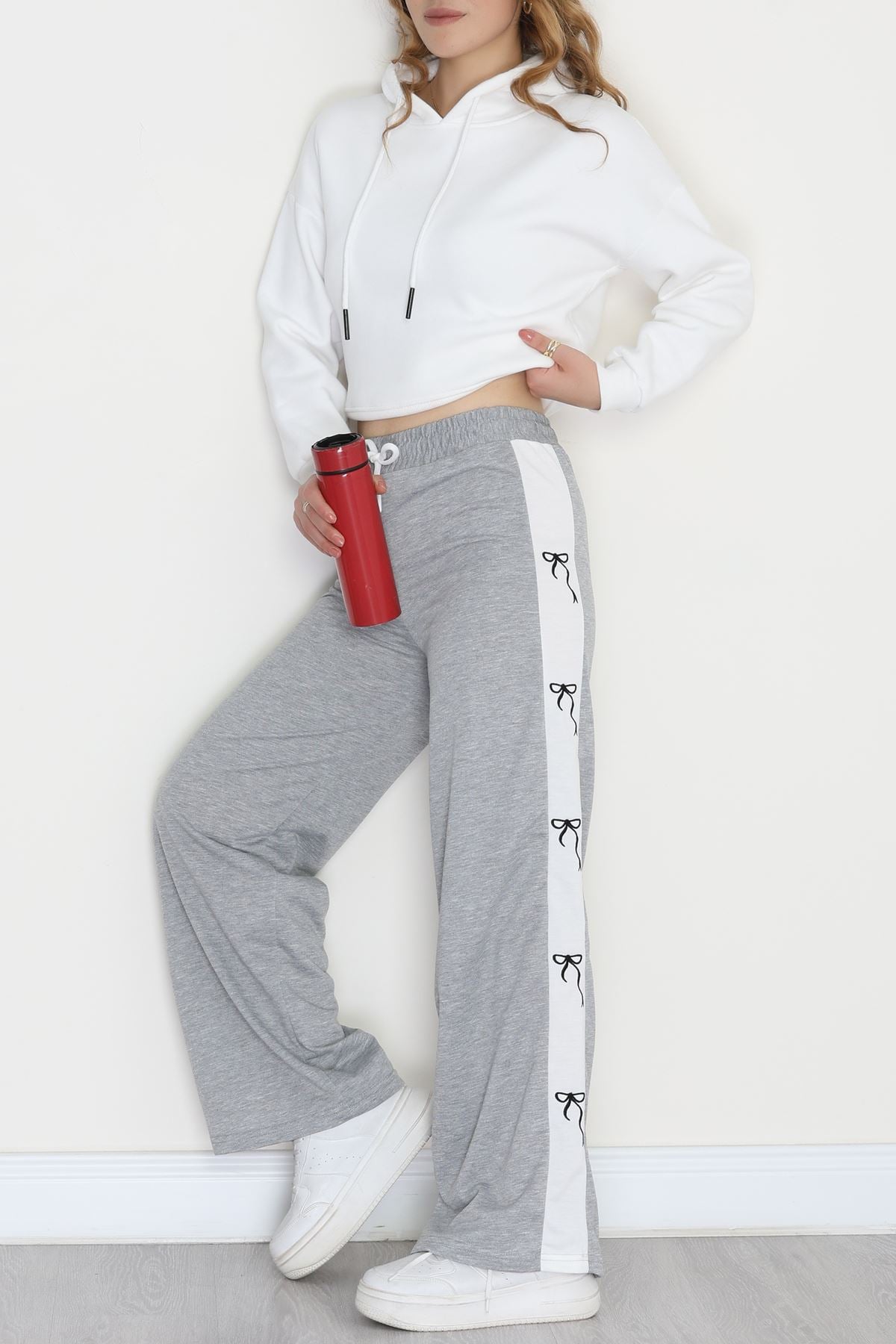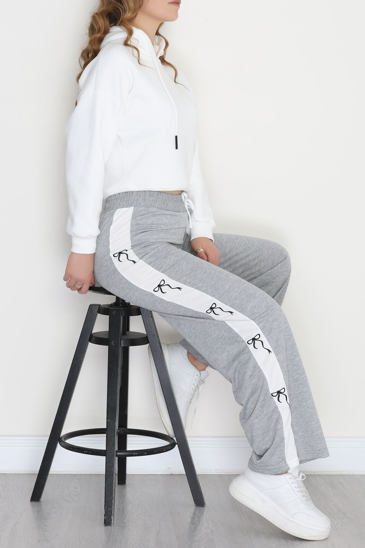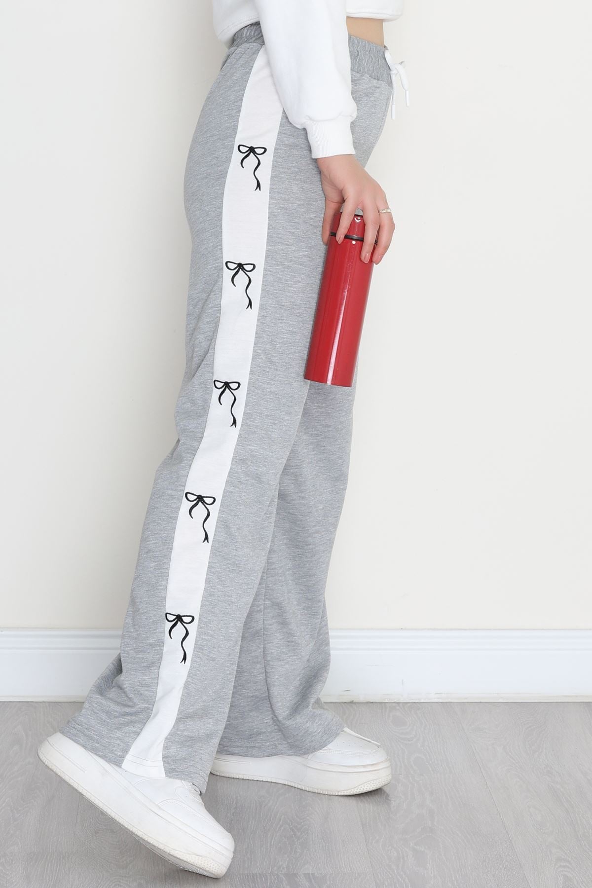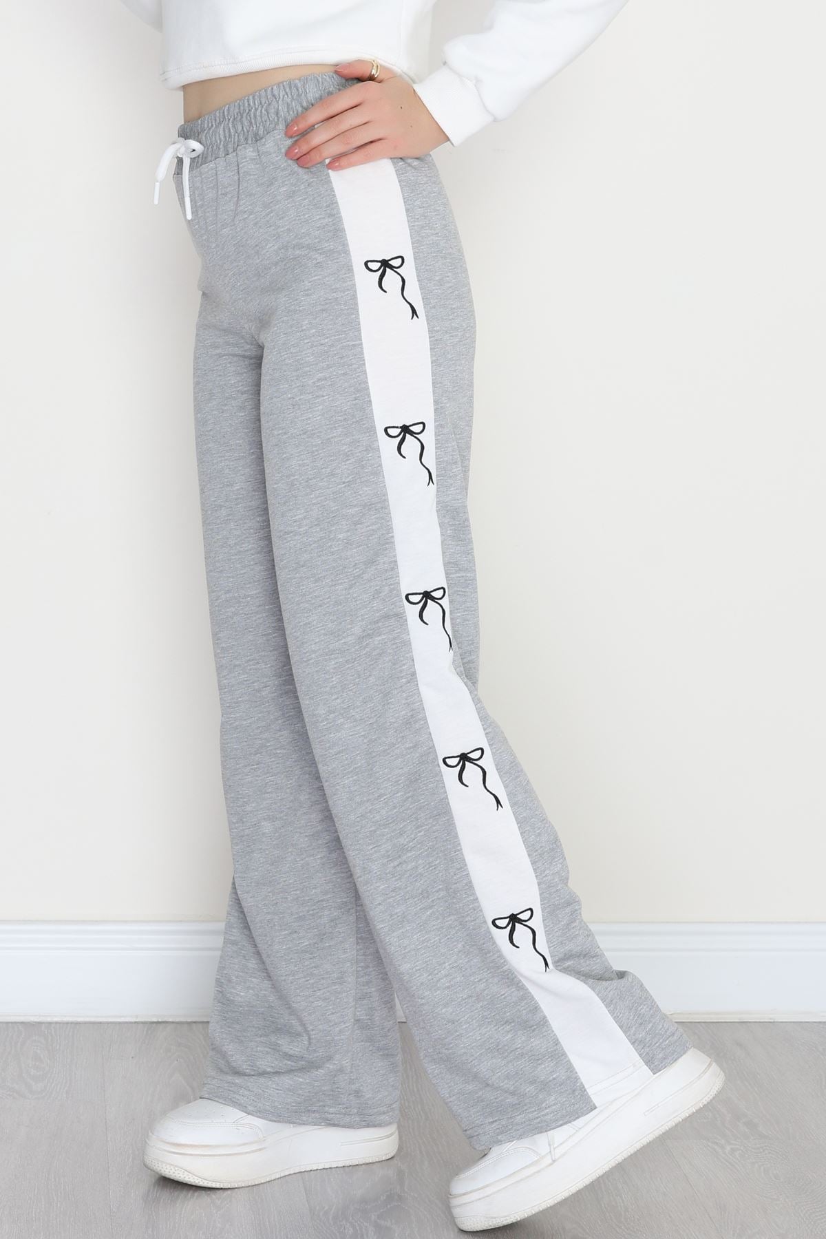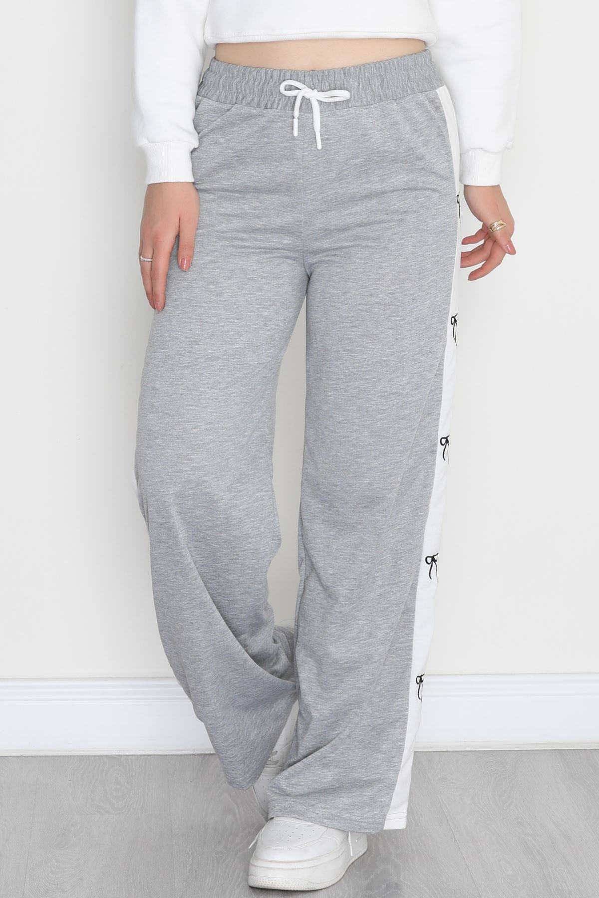 Özel Tasarım Nakışlı 2 İplik Eşofman Altı Gri - 70158.1857.
