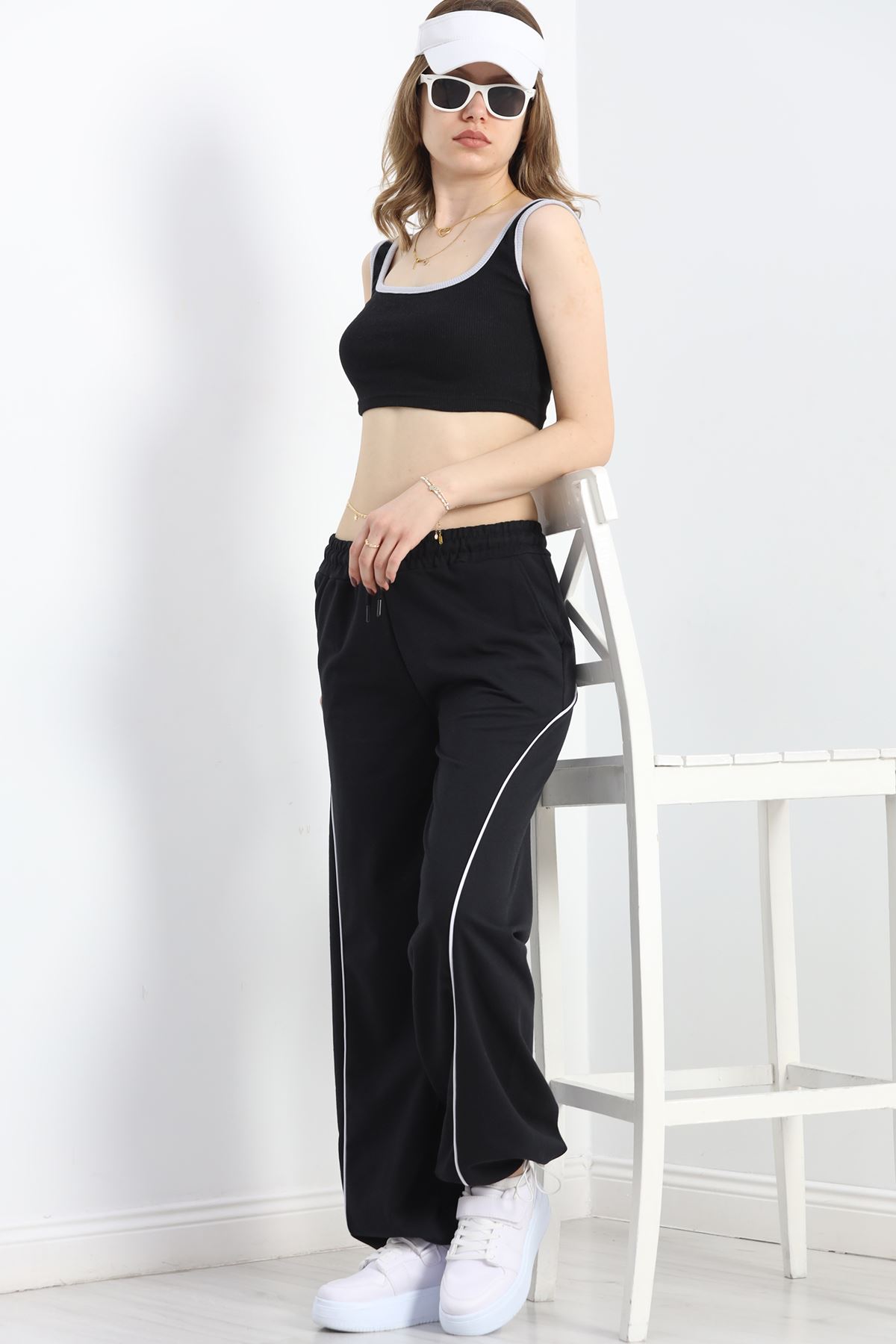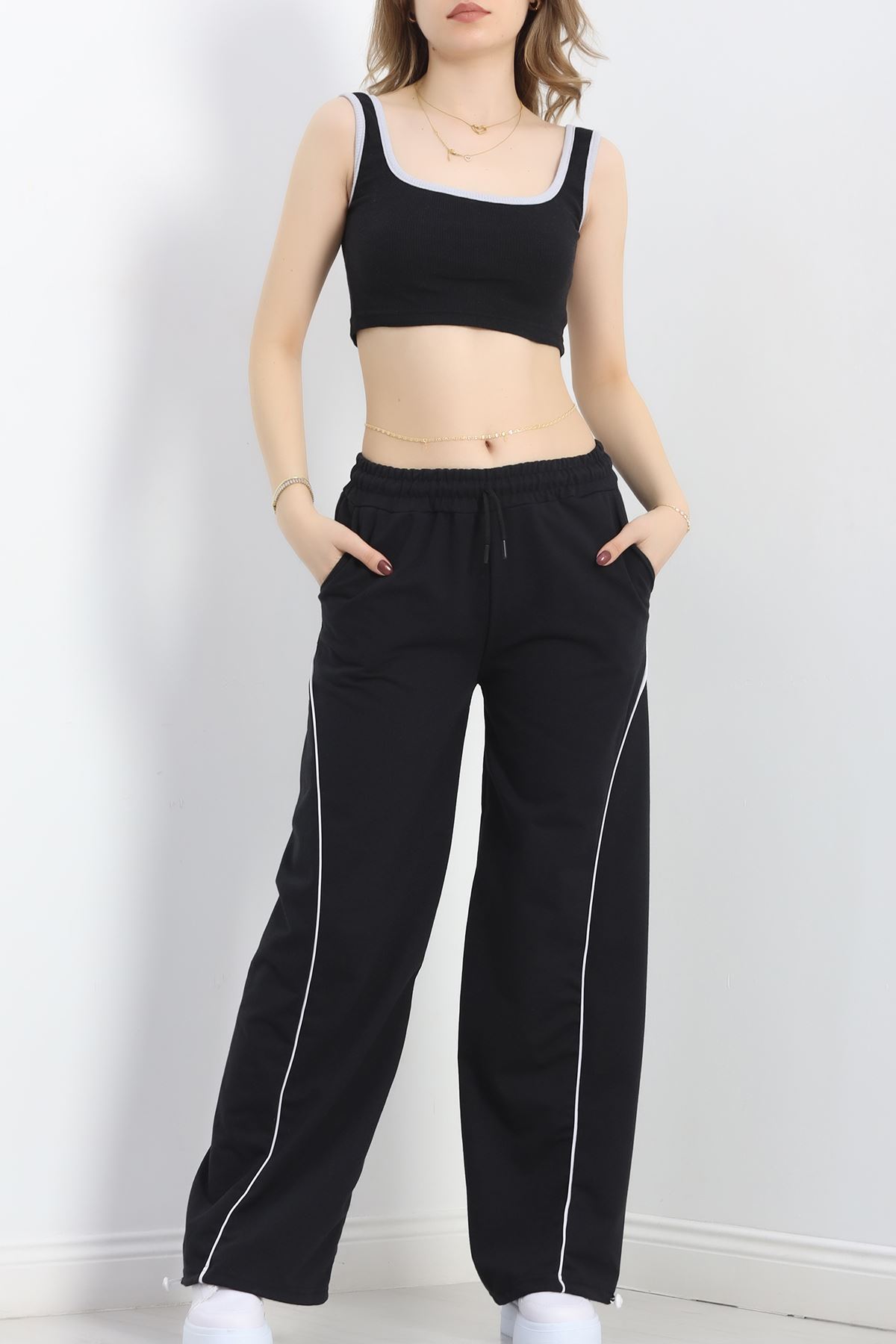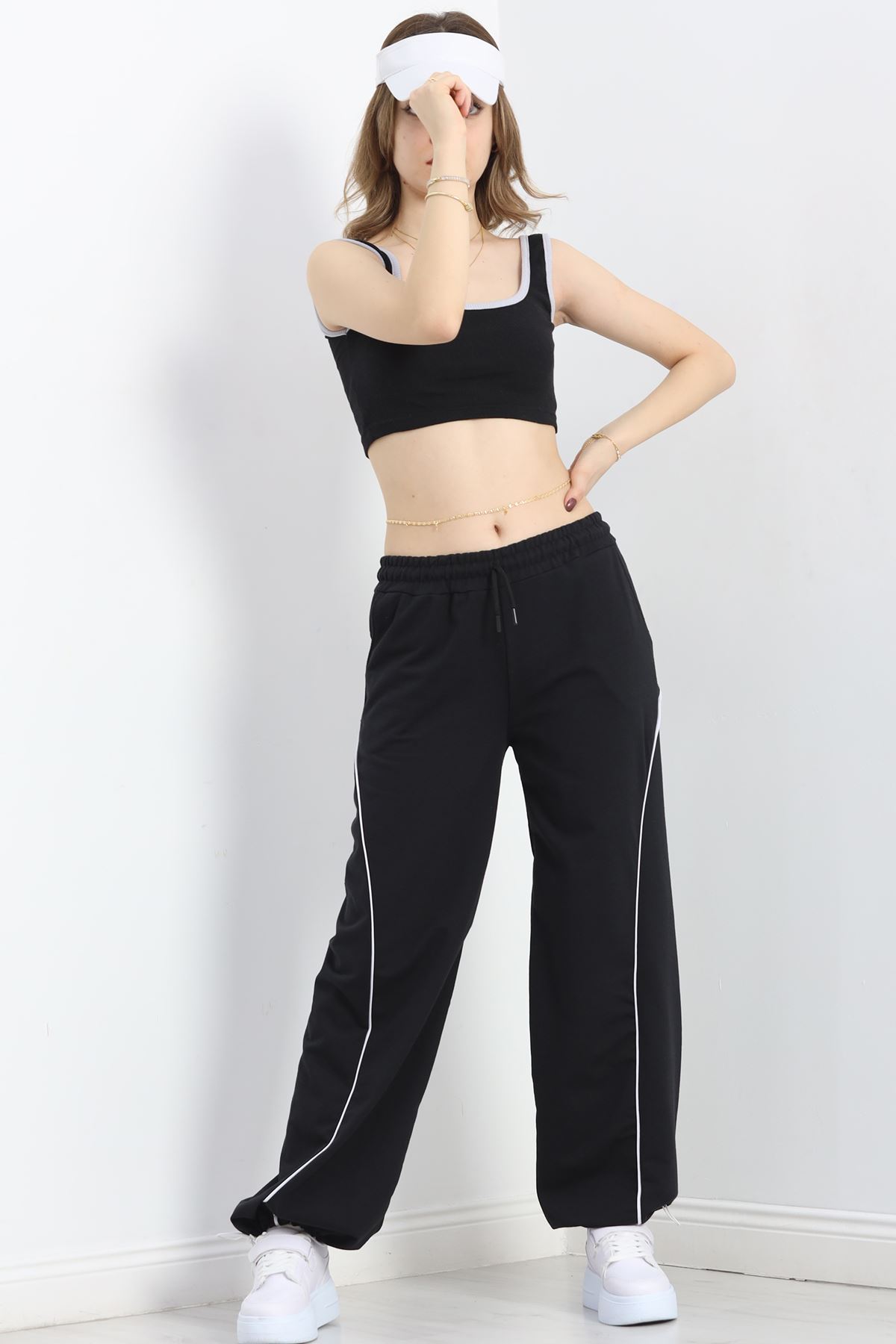 Paça Stoperli 2 İplik Eşofman Altı Siyah - 50058.1857.