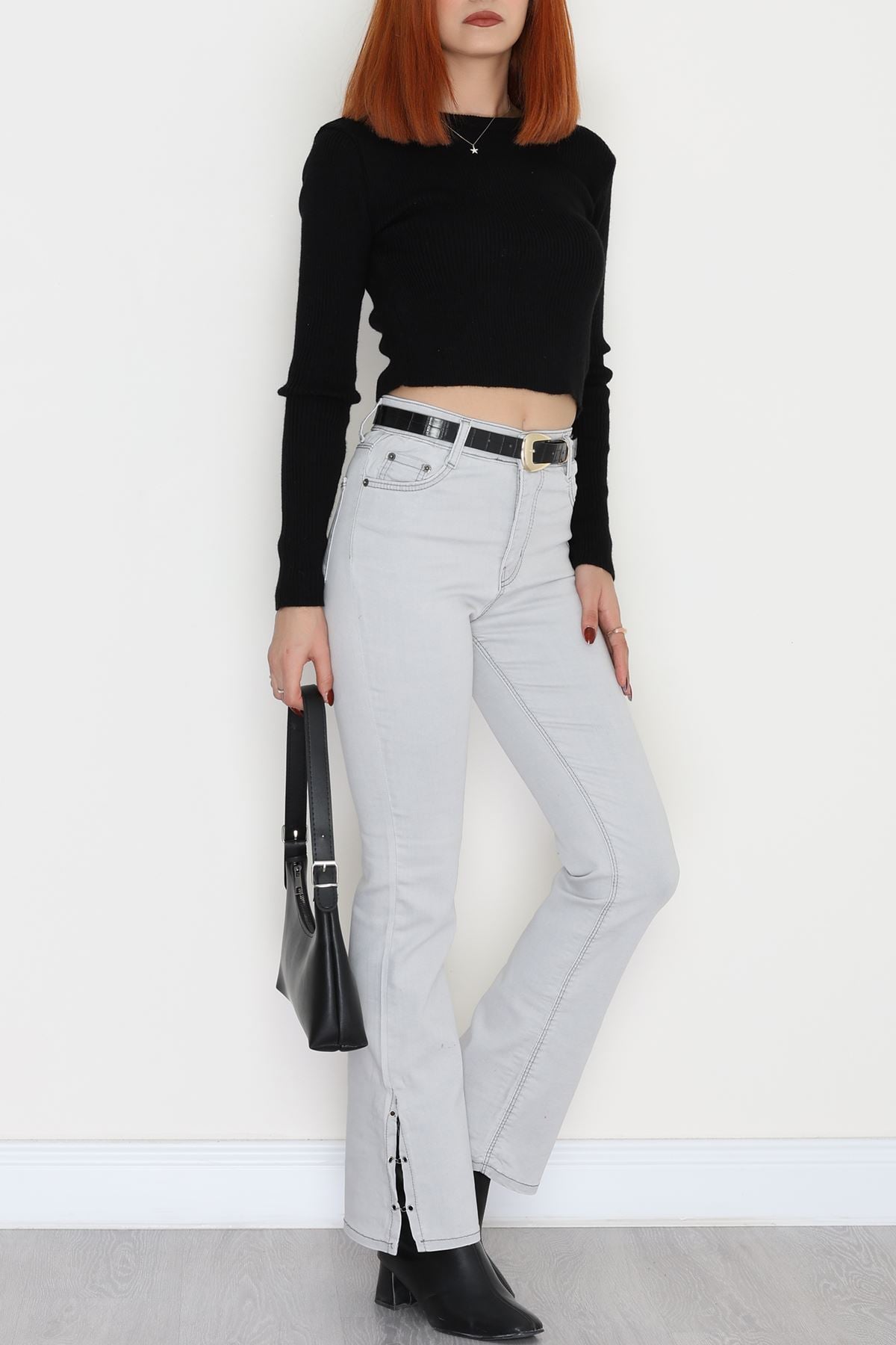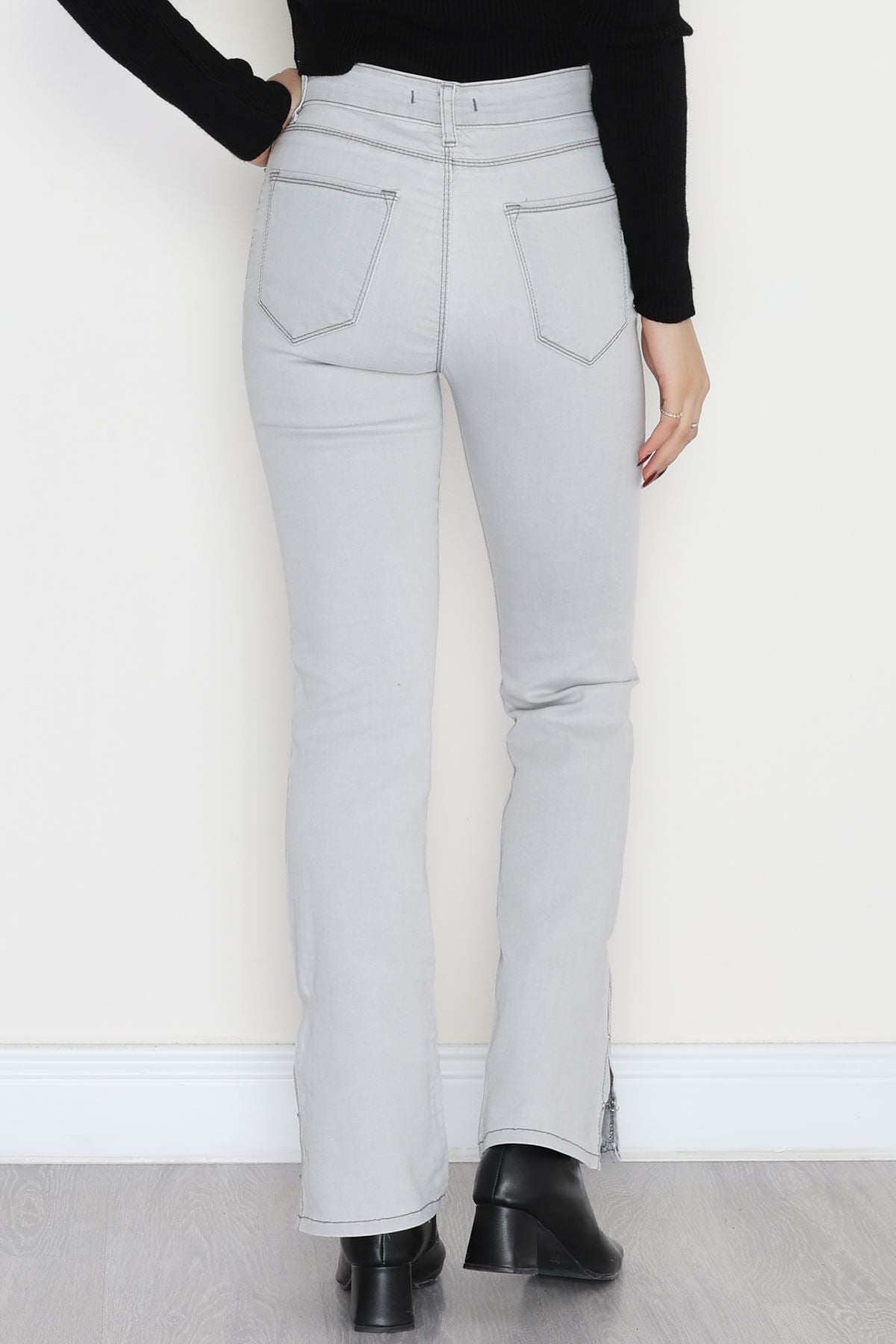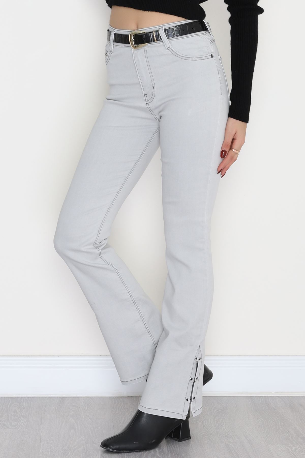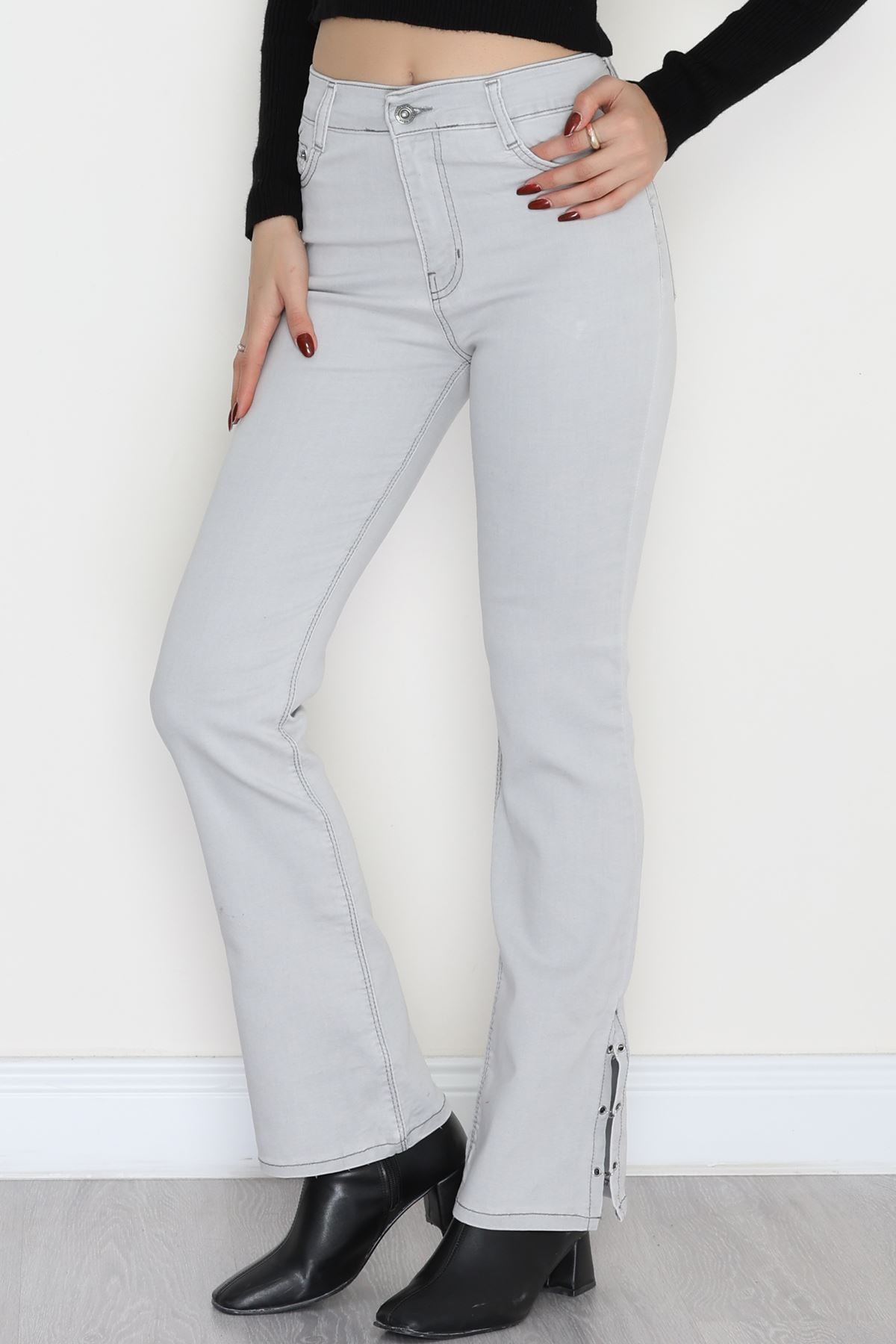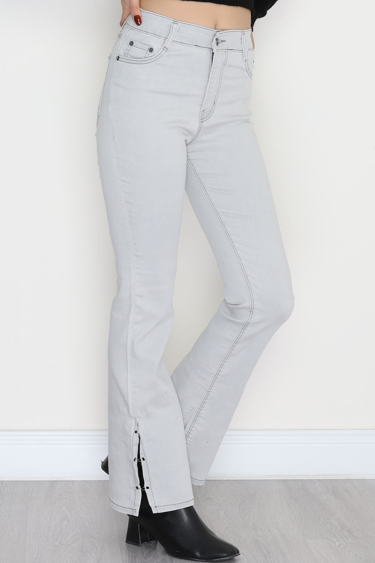 Paça Yırtmaçlı İspanyol Kot Pantolon Açıkgri - 31517.2001.