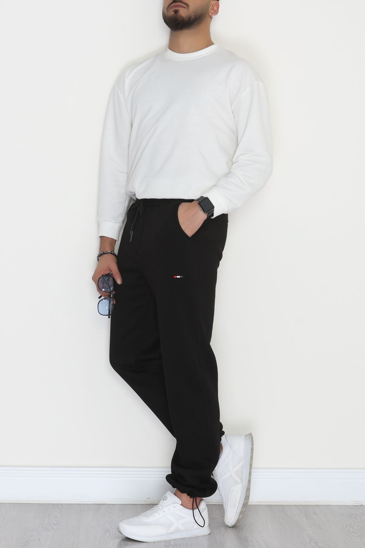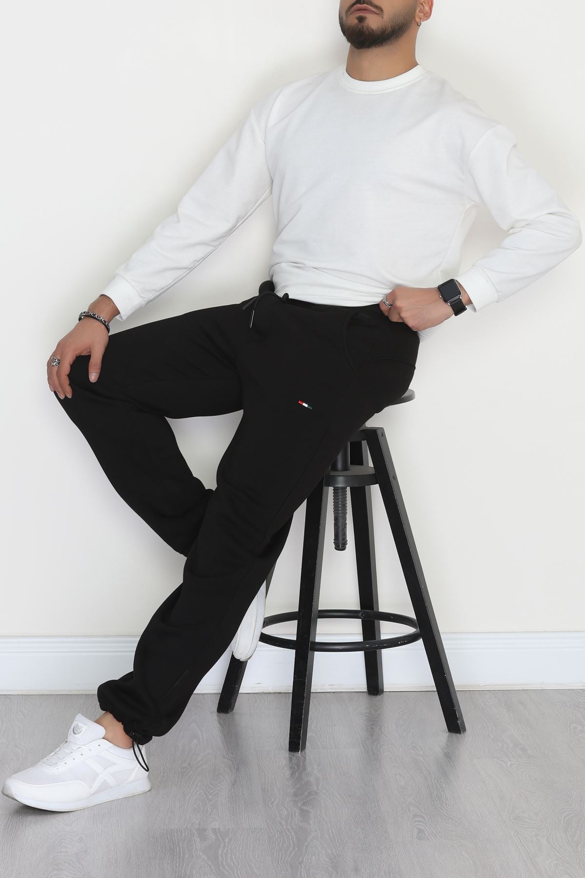 Paçası Stoperli 3 İplik Şardonlu Erkek Eşofman Altı Siyah - 42624.1937.