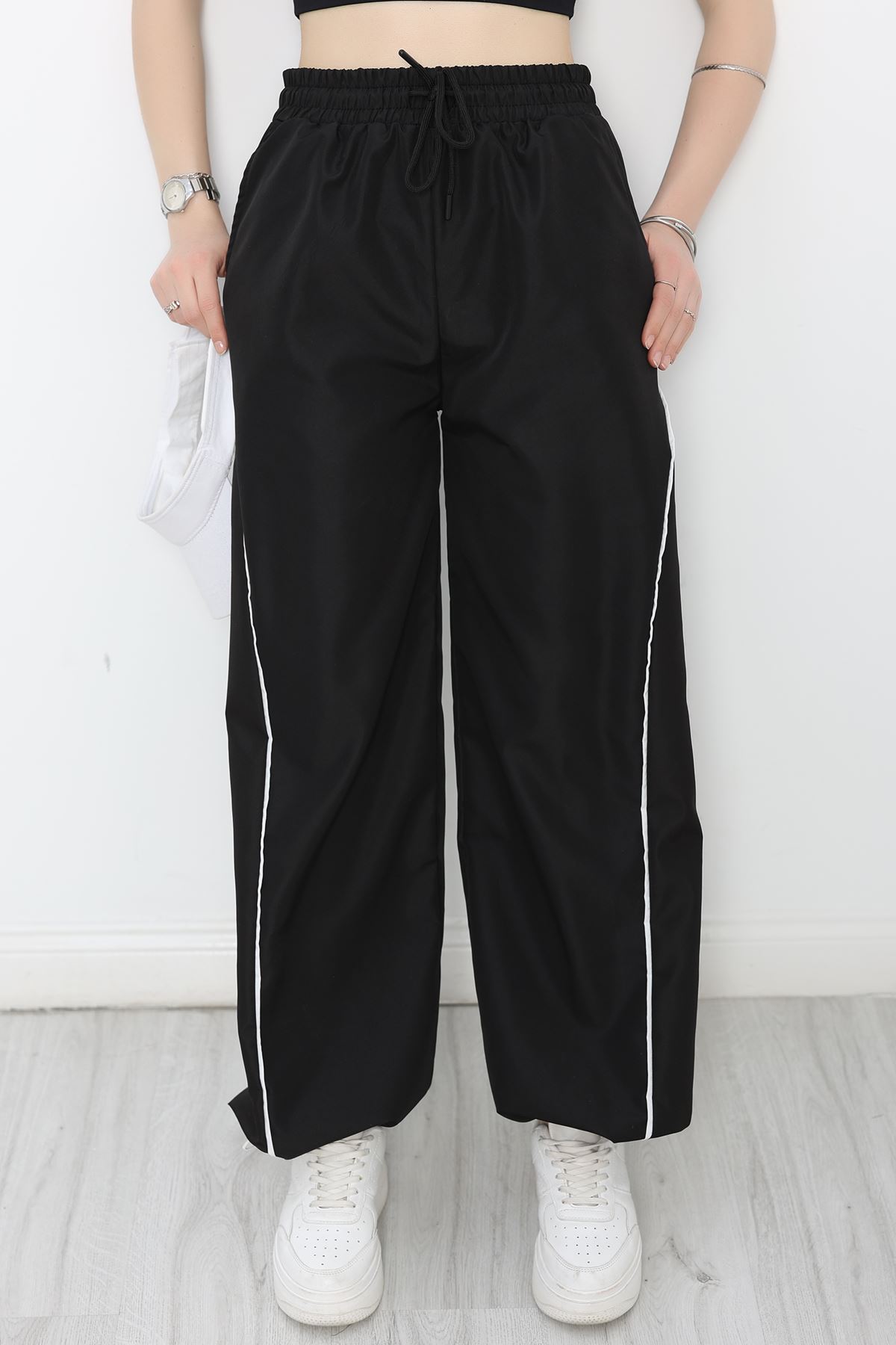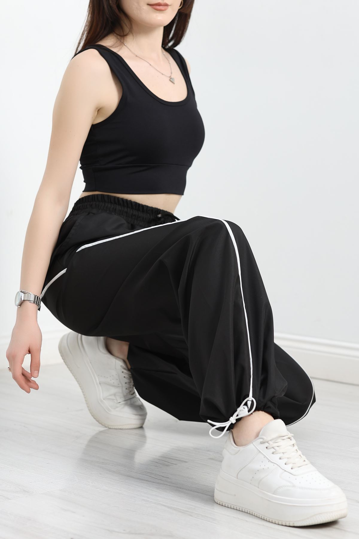 Paraşüt Kumaş Biyeli Mikro Eşofman Altı Siyah - 30392.746.