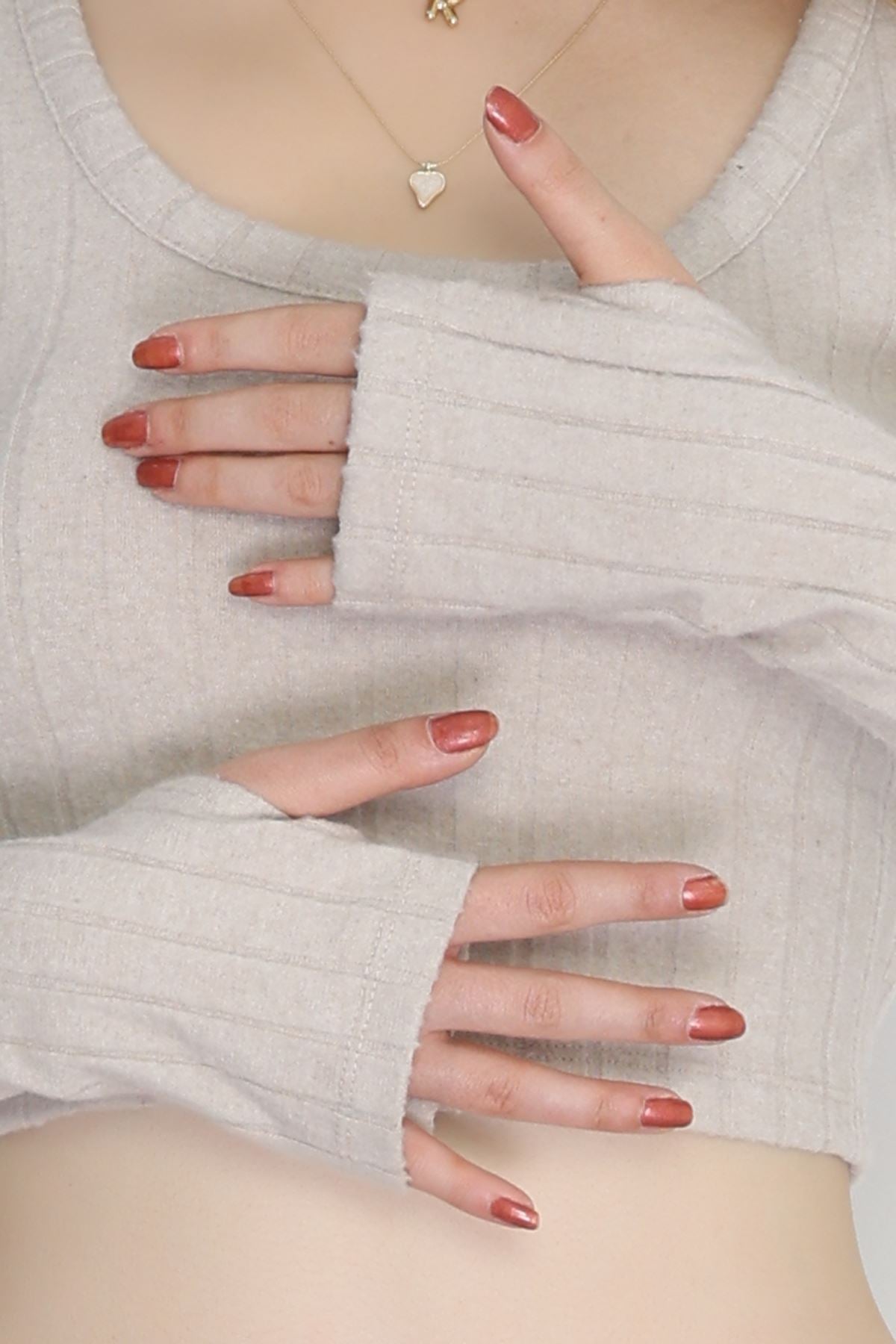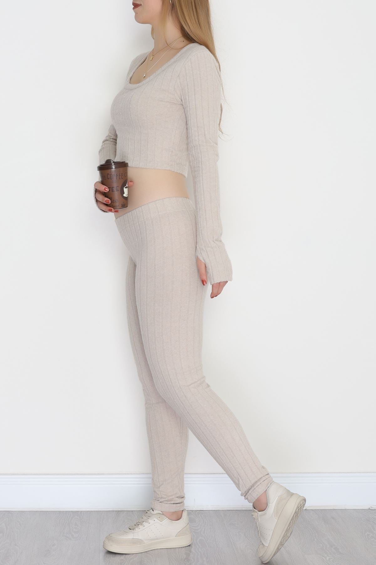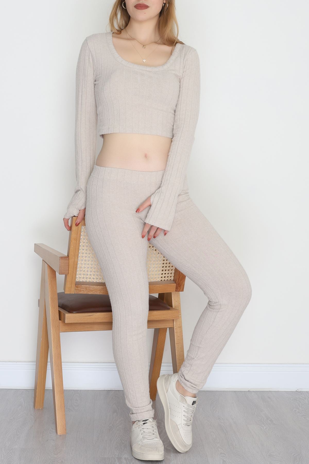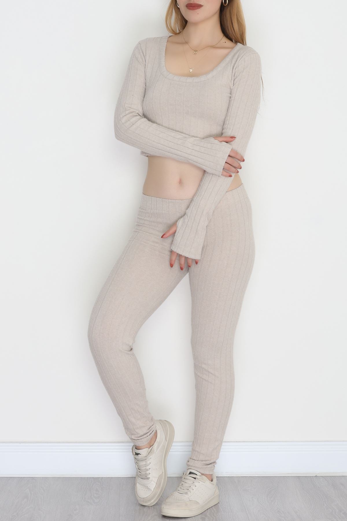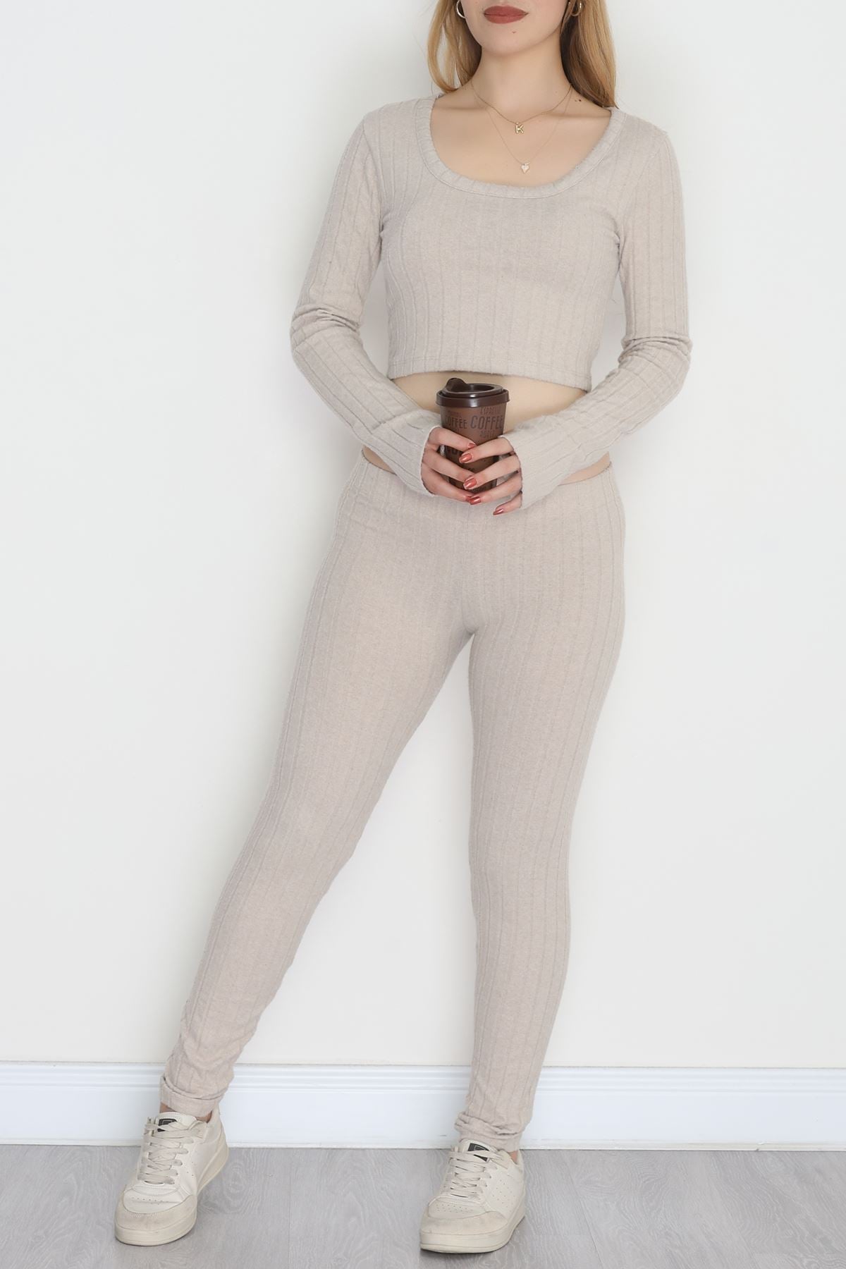 Parmak Geçmeli U Yaka Raporlu İnterlok Takım Bej - 90975.1748.