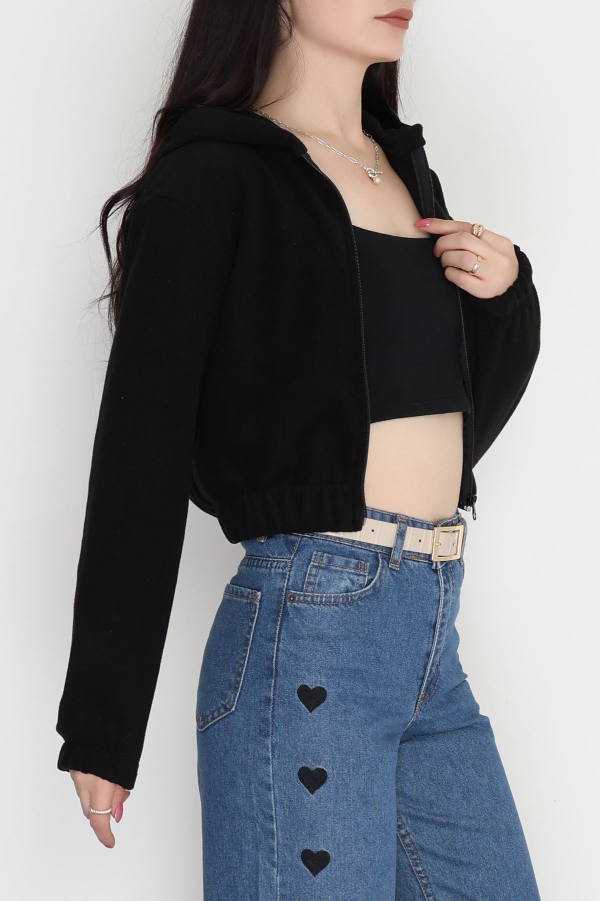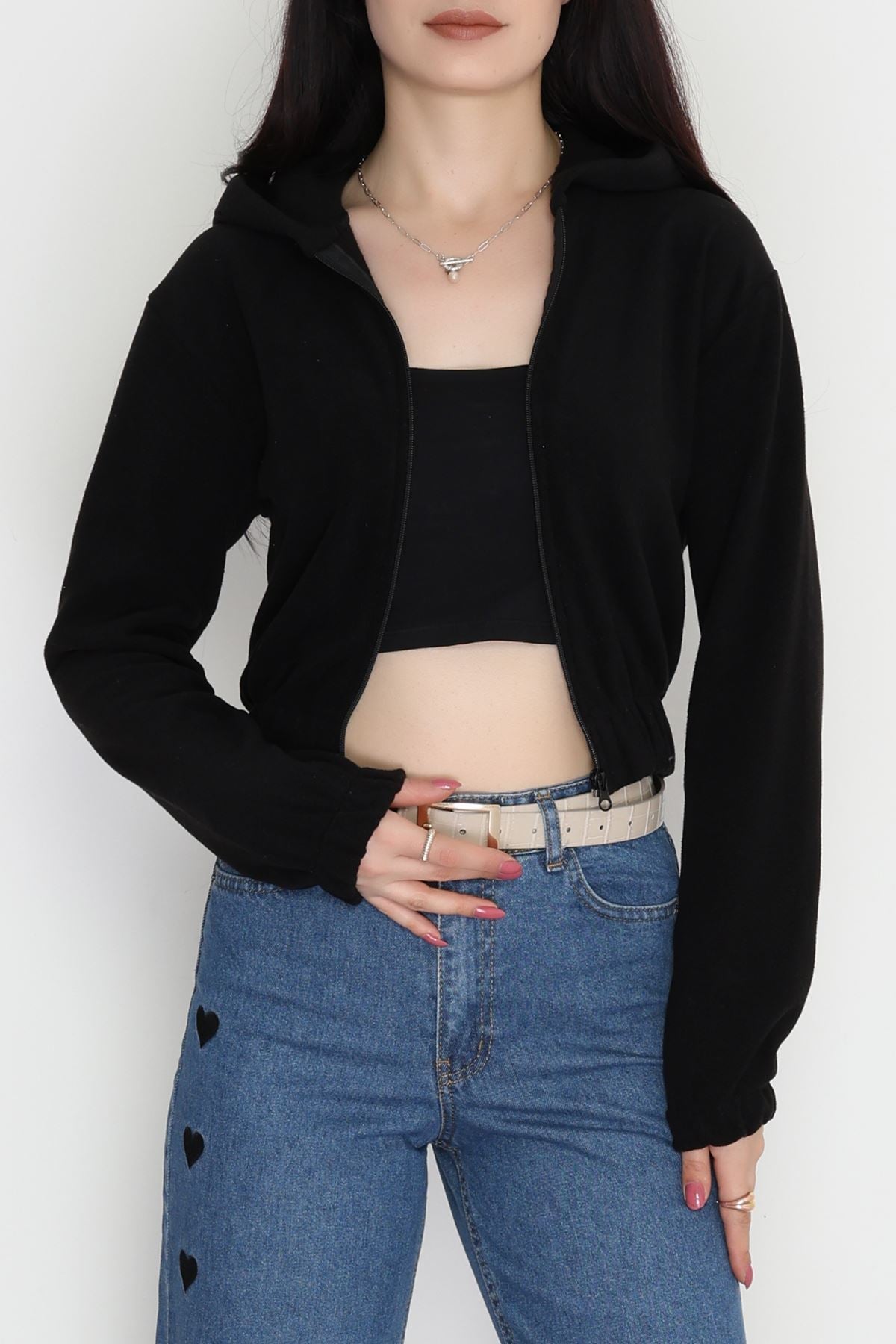 Polar Kapşonlu Crop Ceket Siyah - 51000.053.