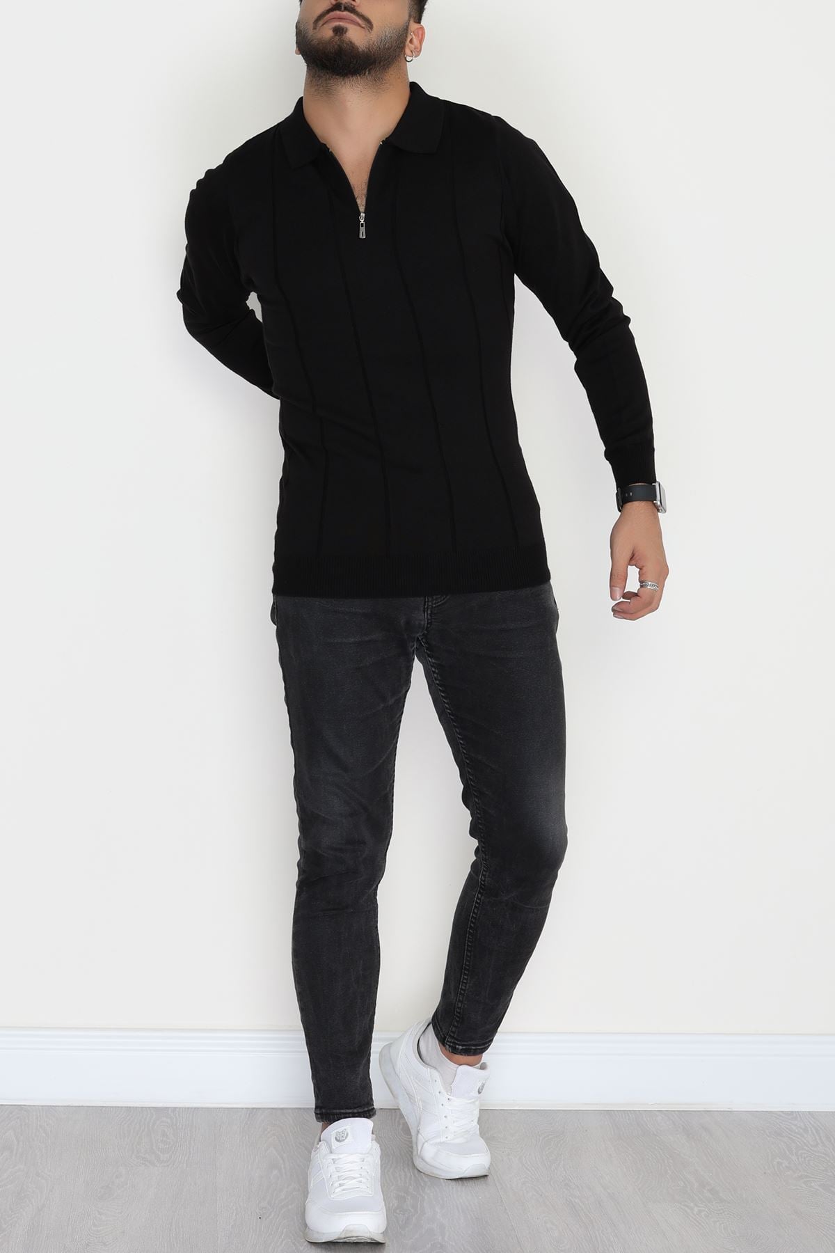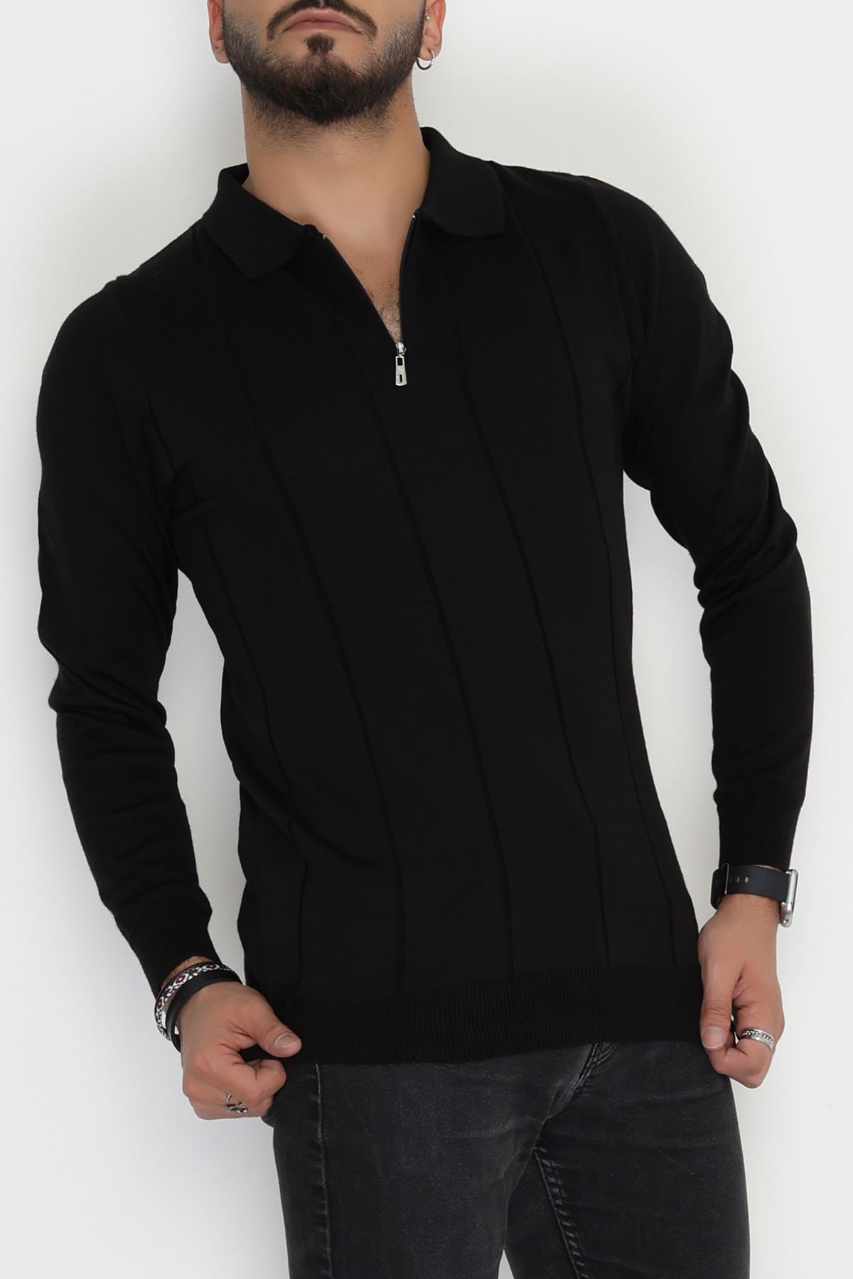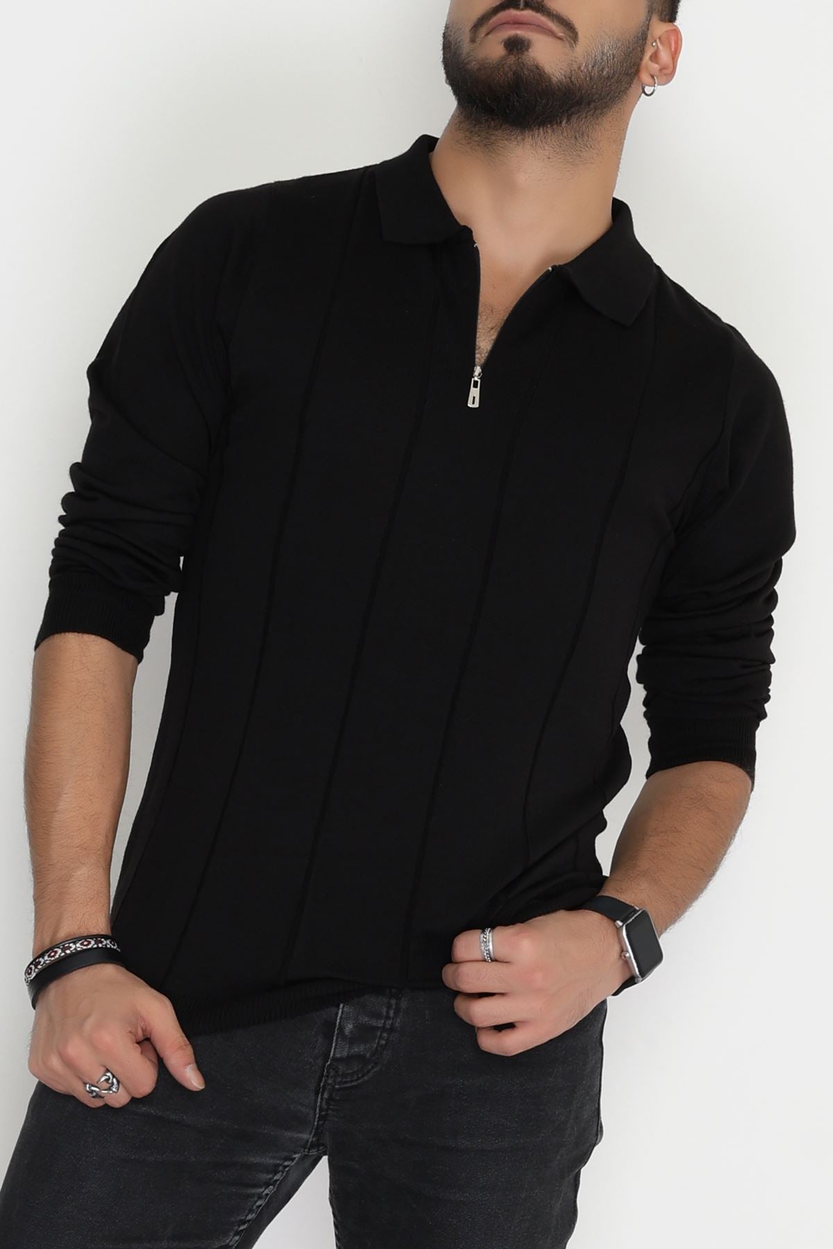 Polo Yaka Erkek Triko Sweat Siyah - 42529.2052.