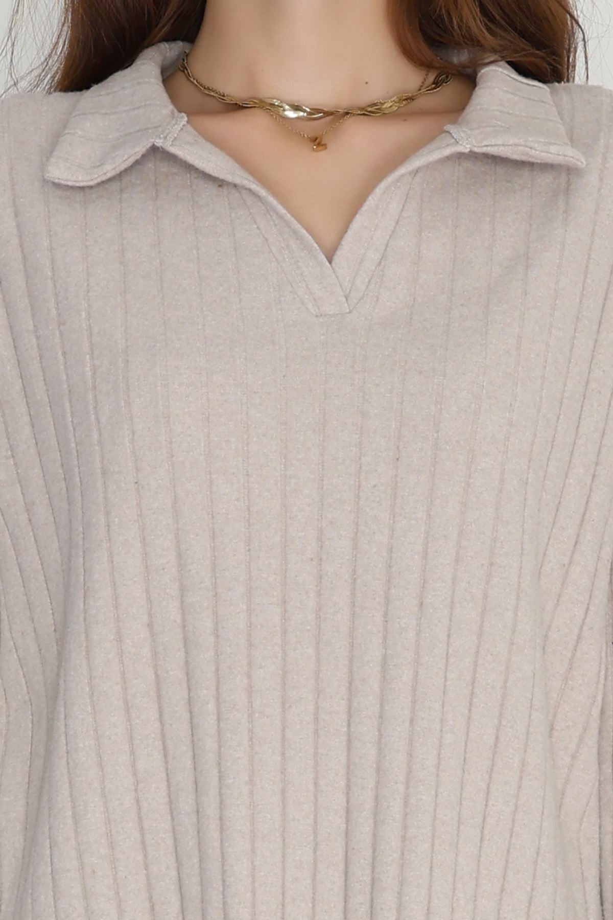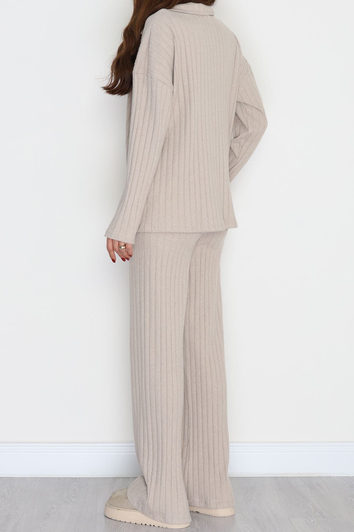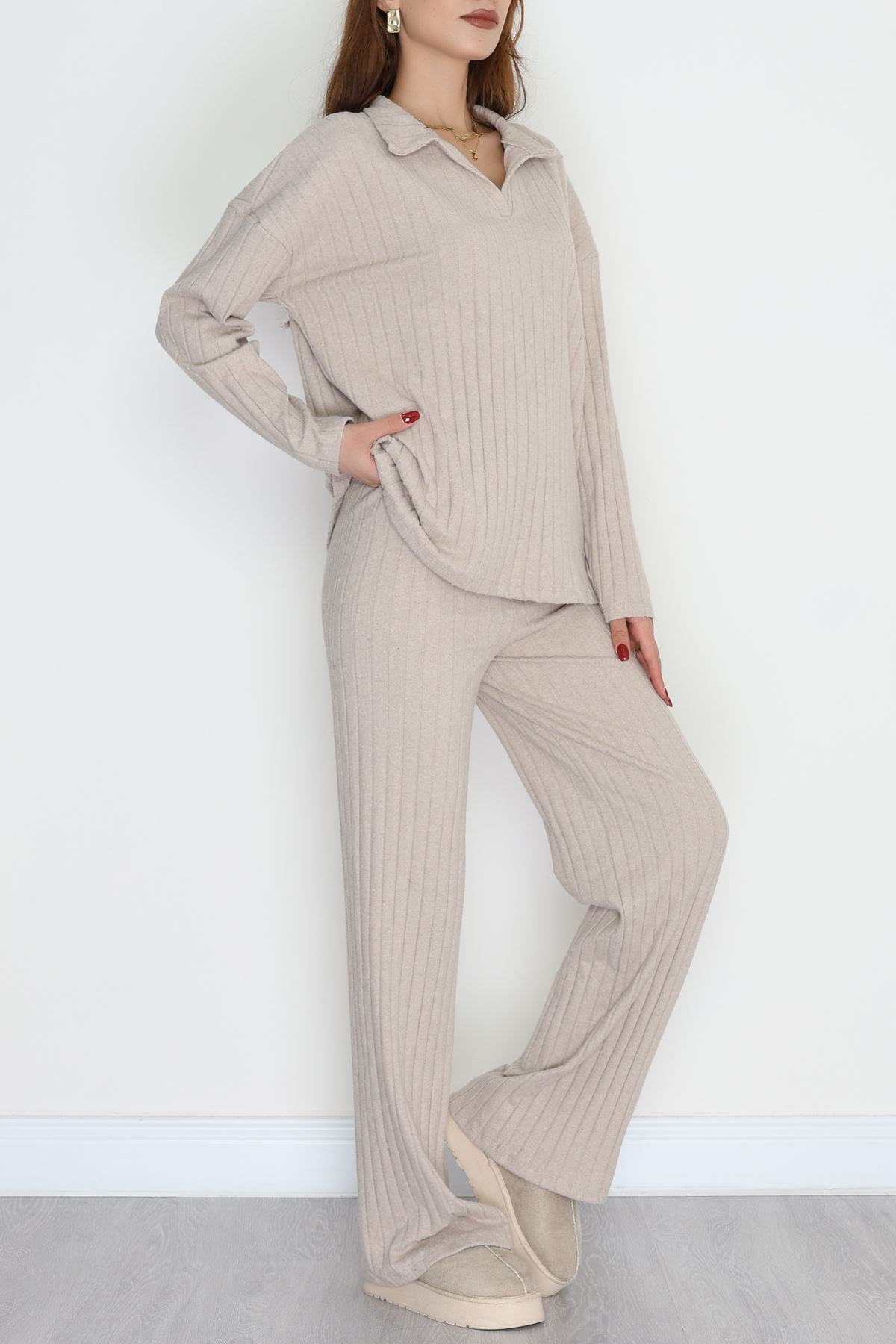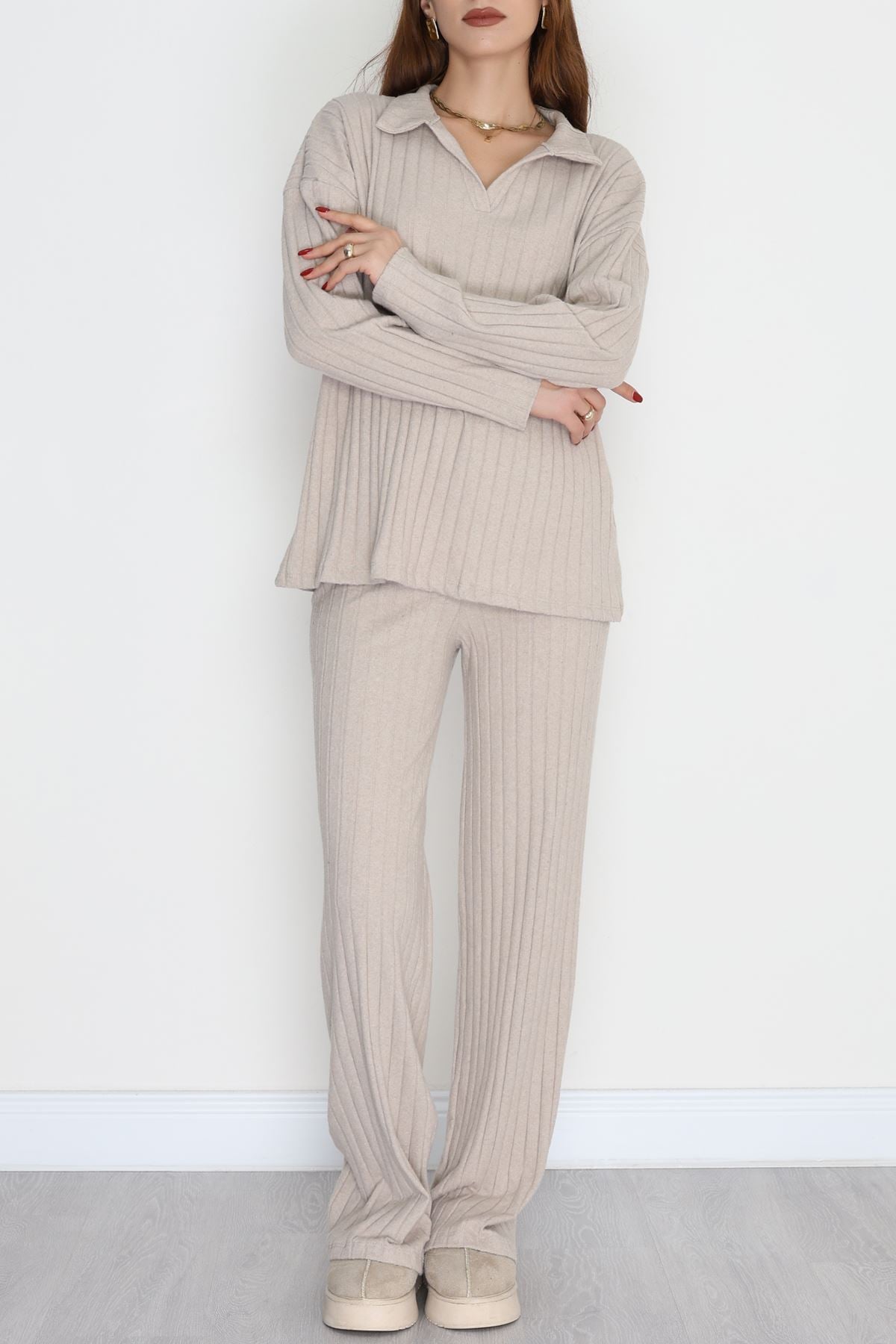 Polo Yaka Likralı İnterlok Fitilli Takım Bej - 90970.1748.