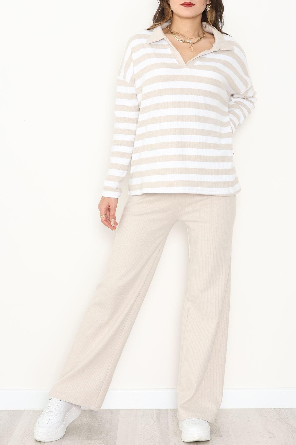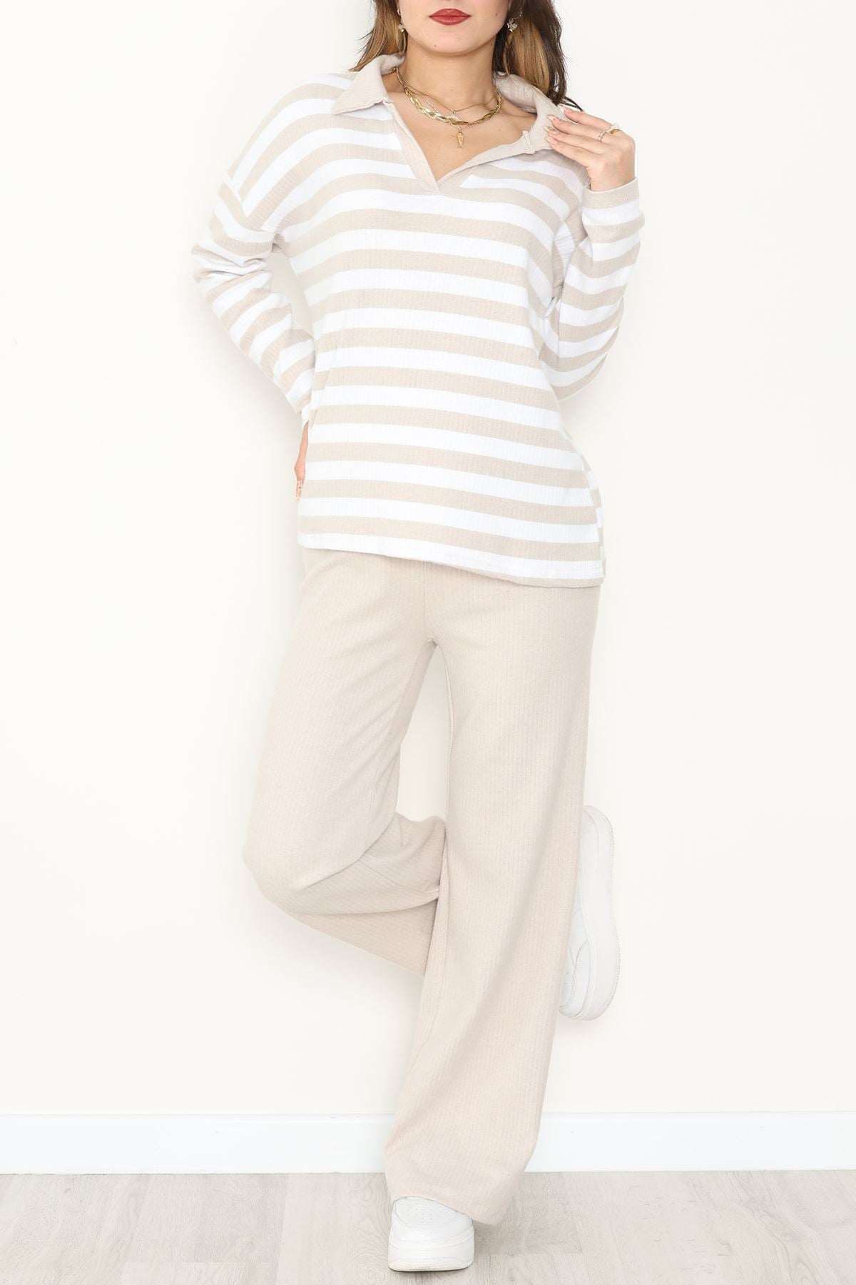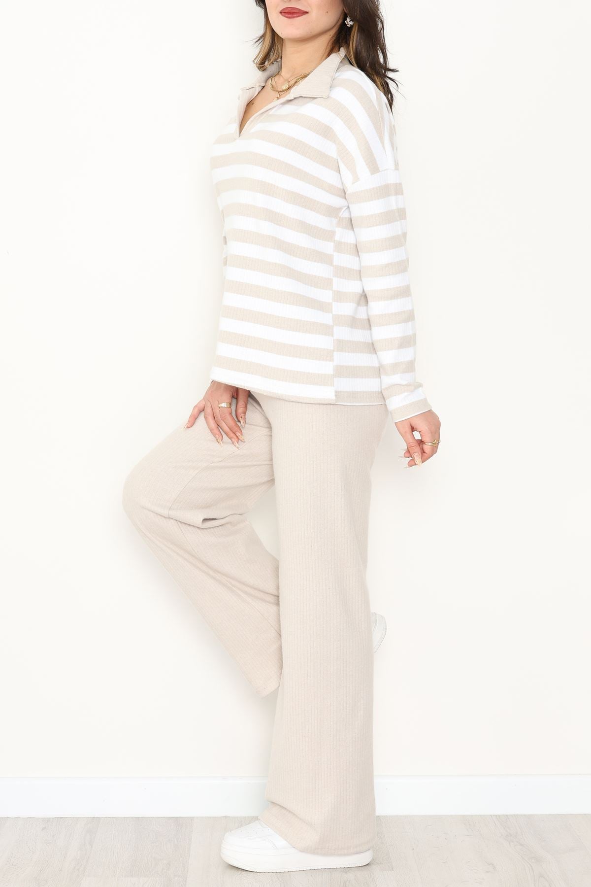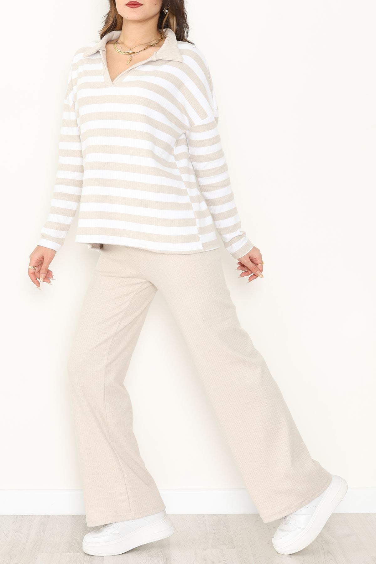 Polo Yaka Raporlu İnterlok Takım Bejbeyaz - 42738.1567.