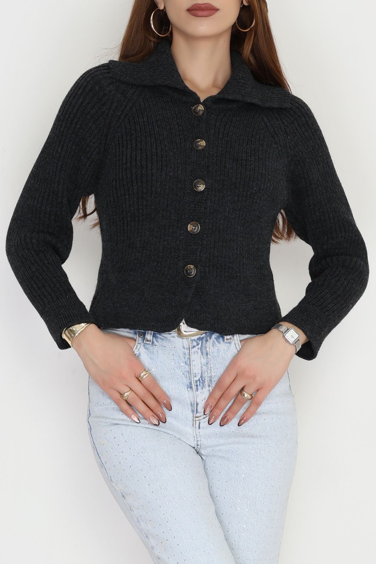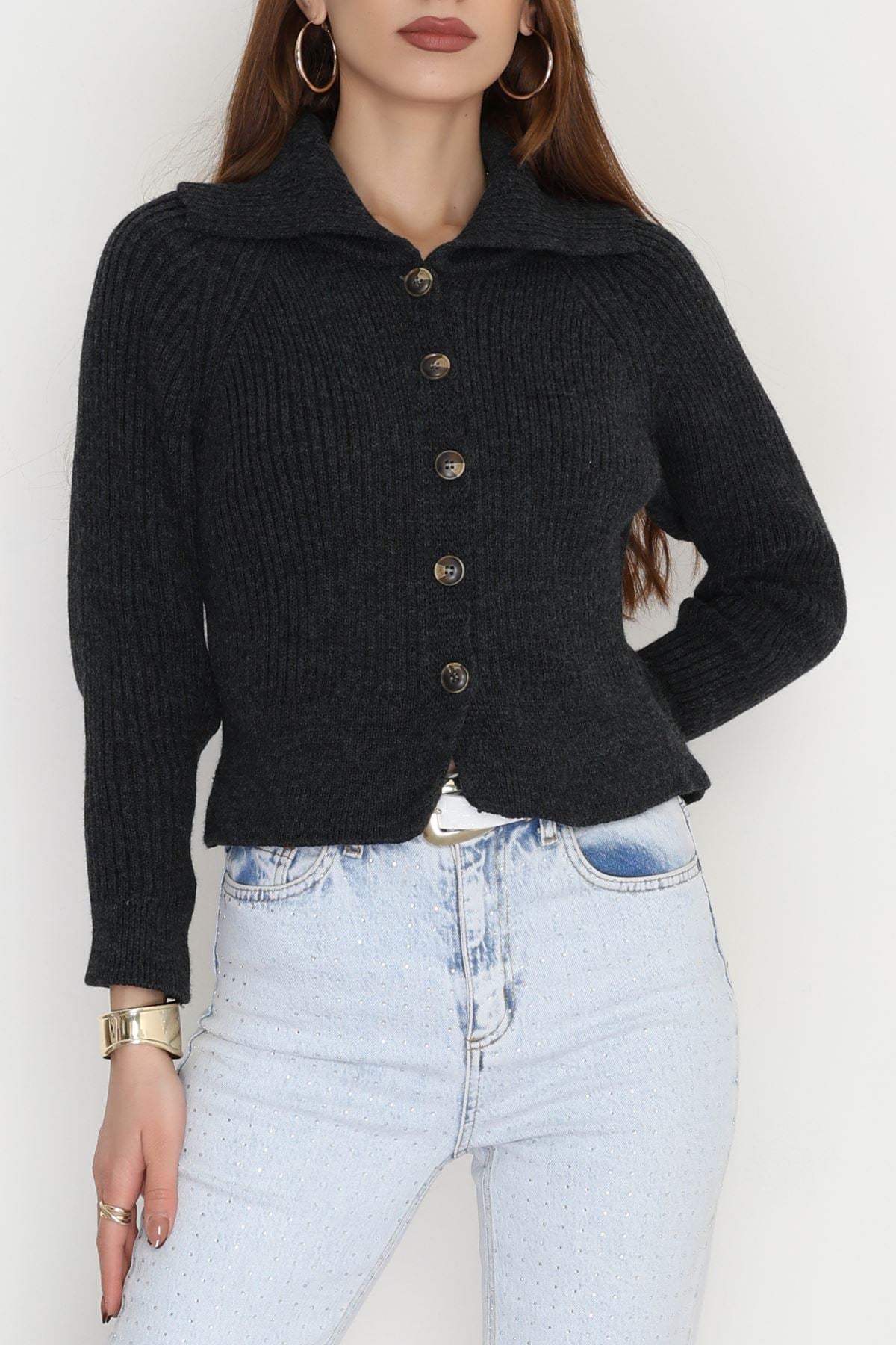 Polo Yaka Triko Hırka Antrasit - 2283.1765.
