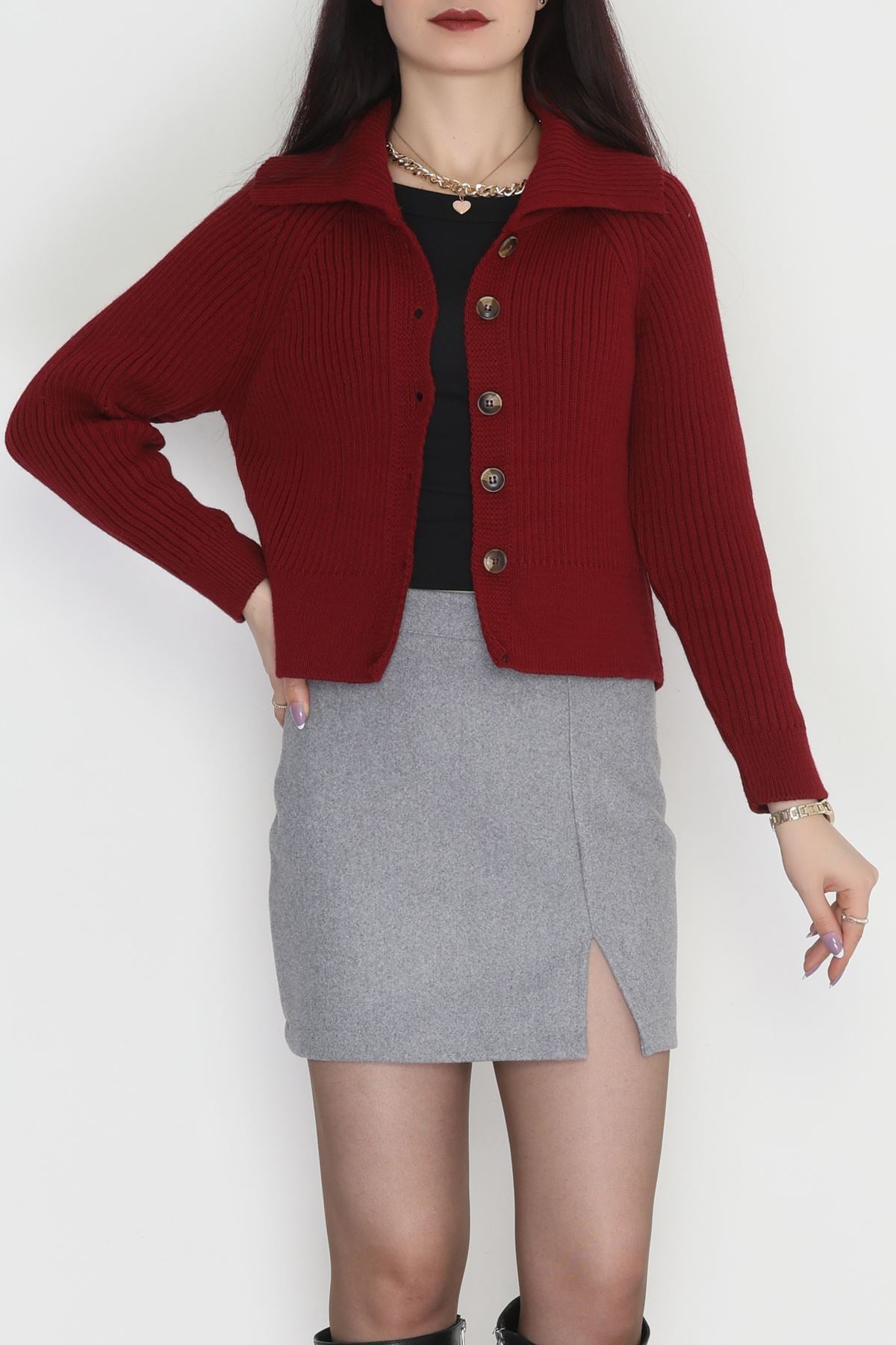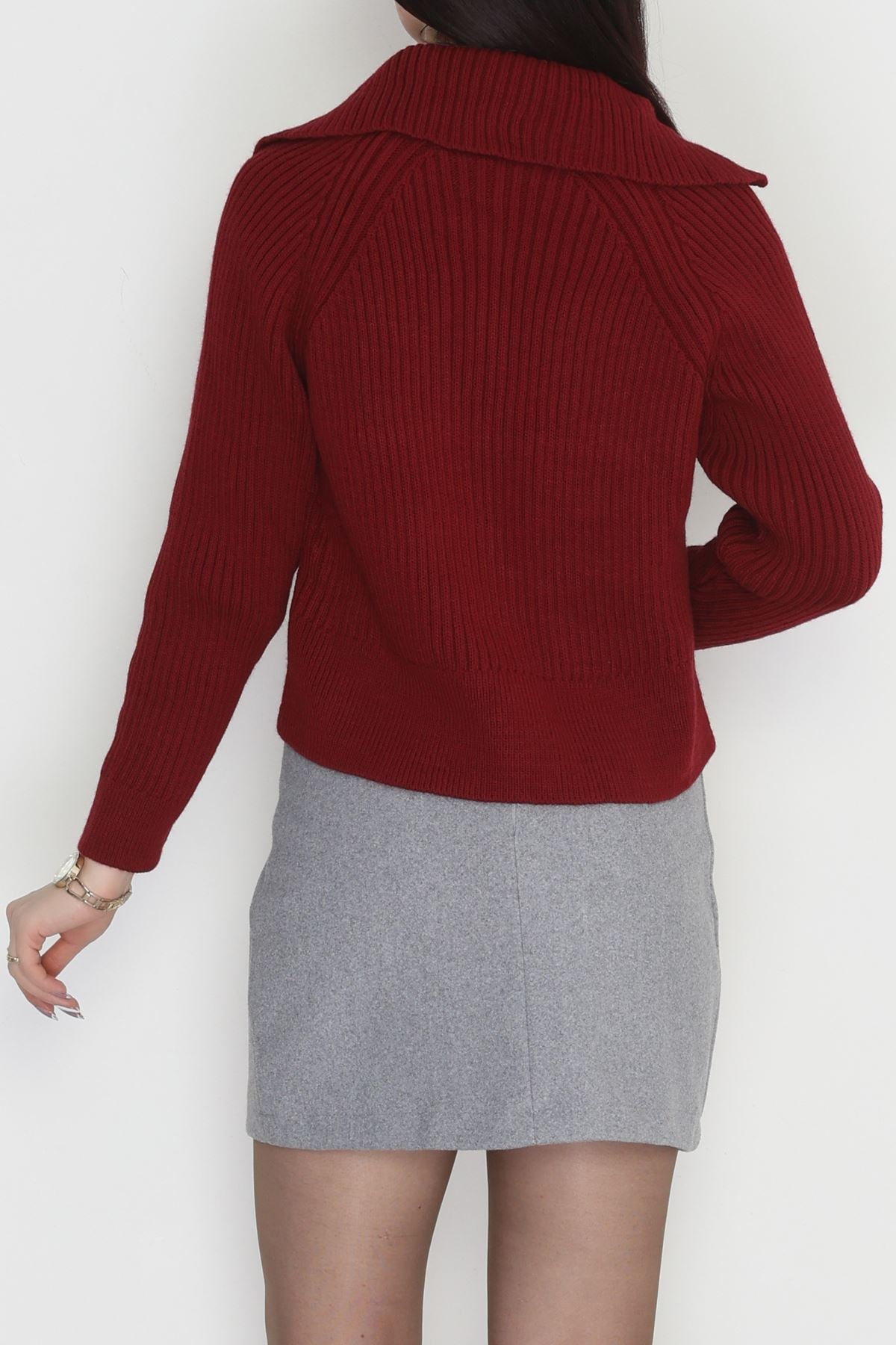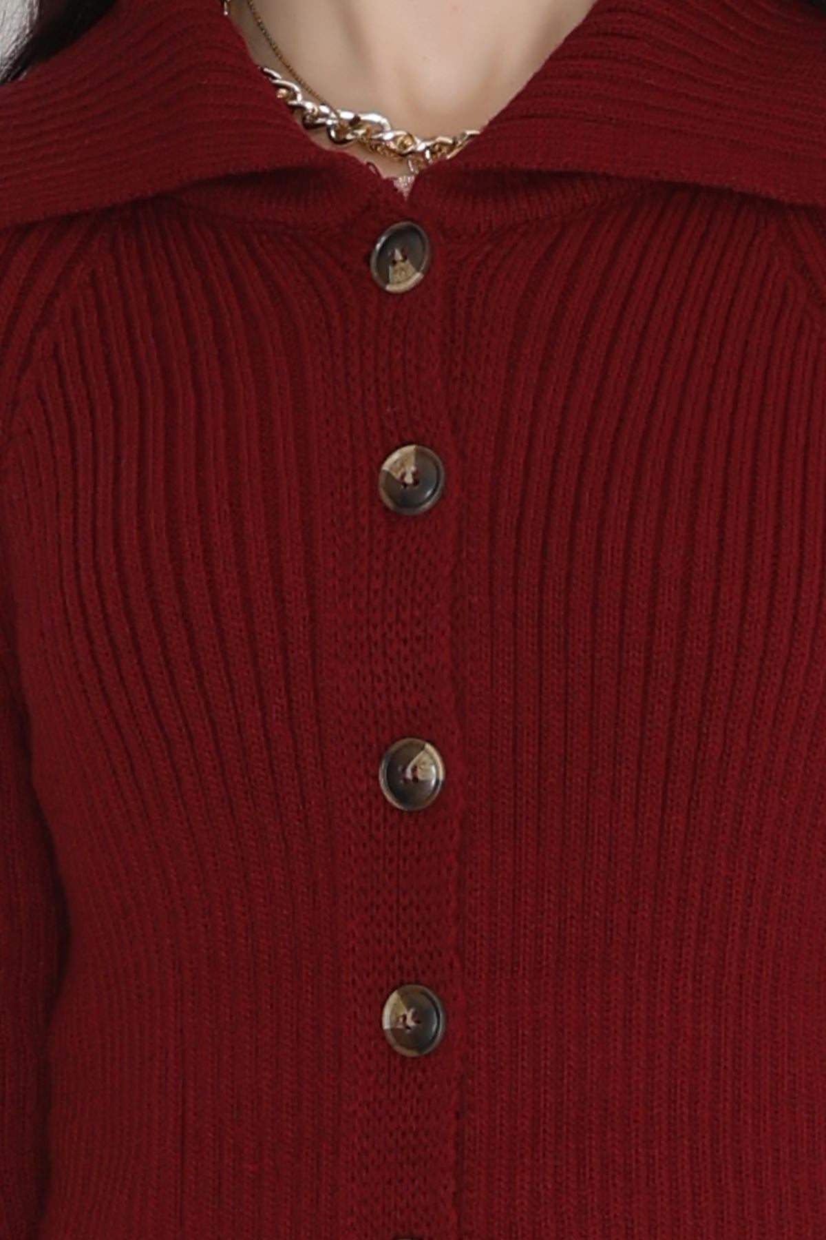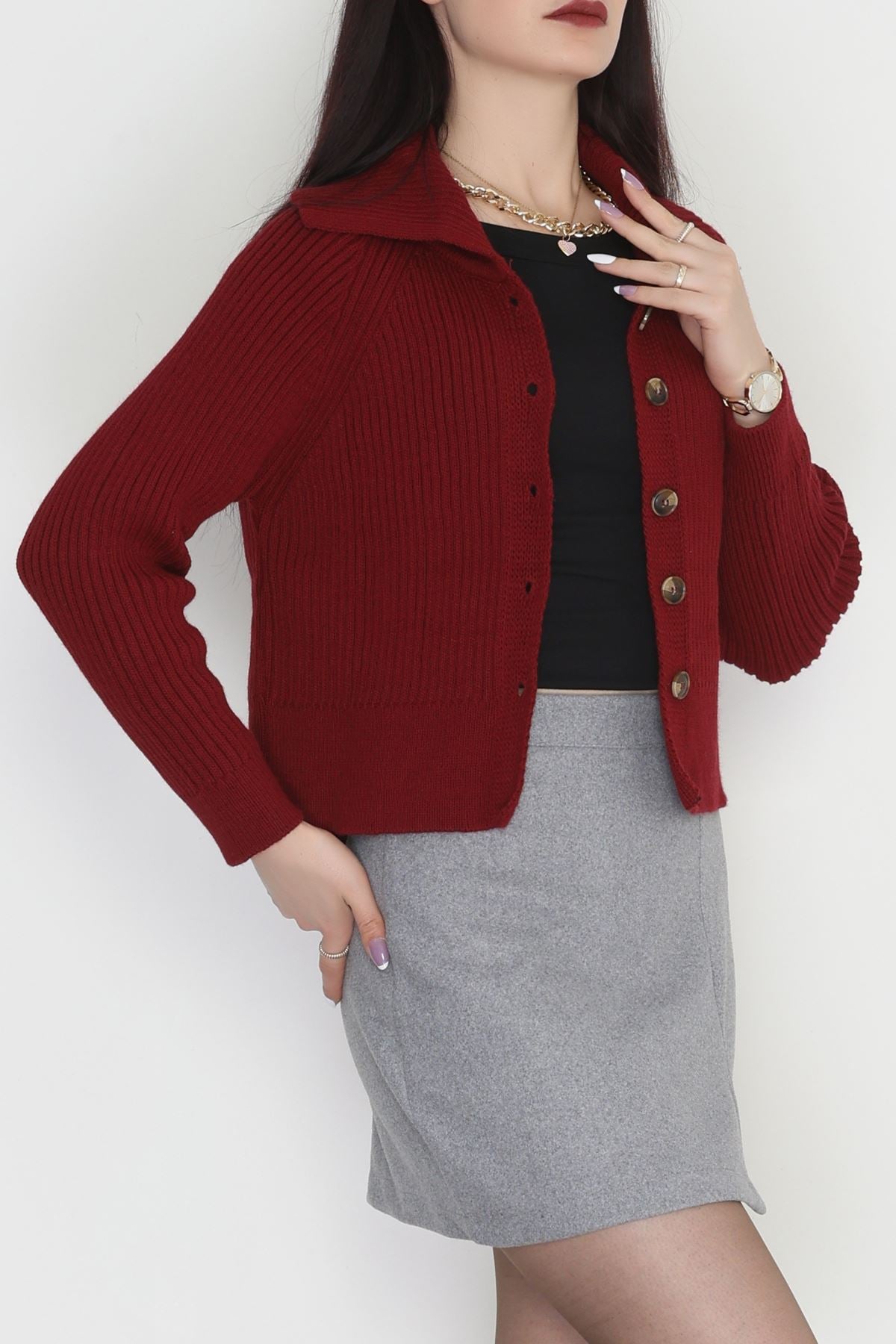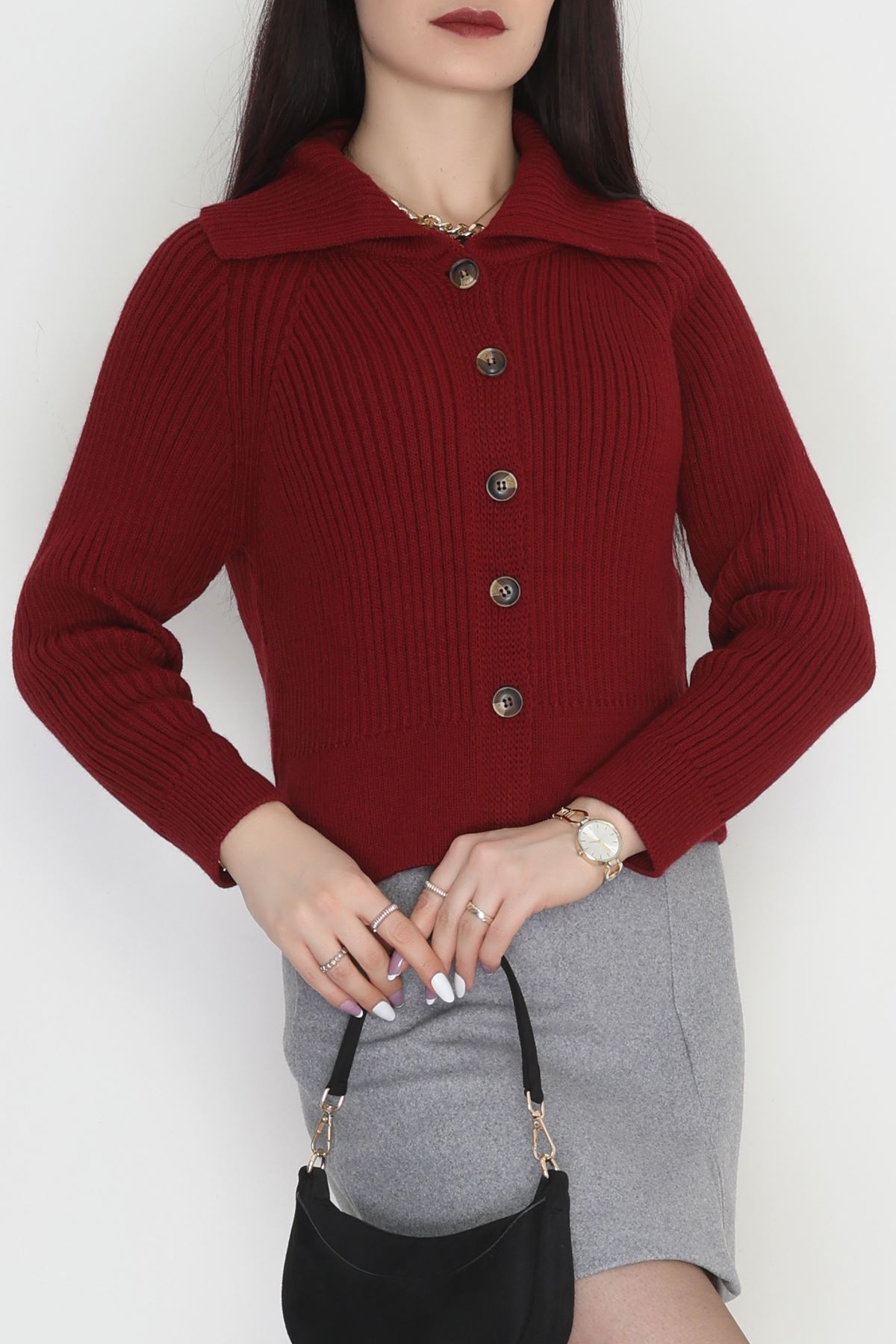 Polo Yaka Triko Hırka Bordo - 2283.1765.