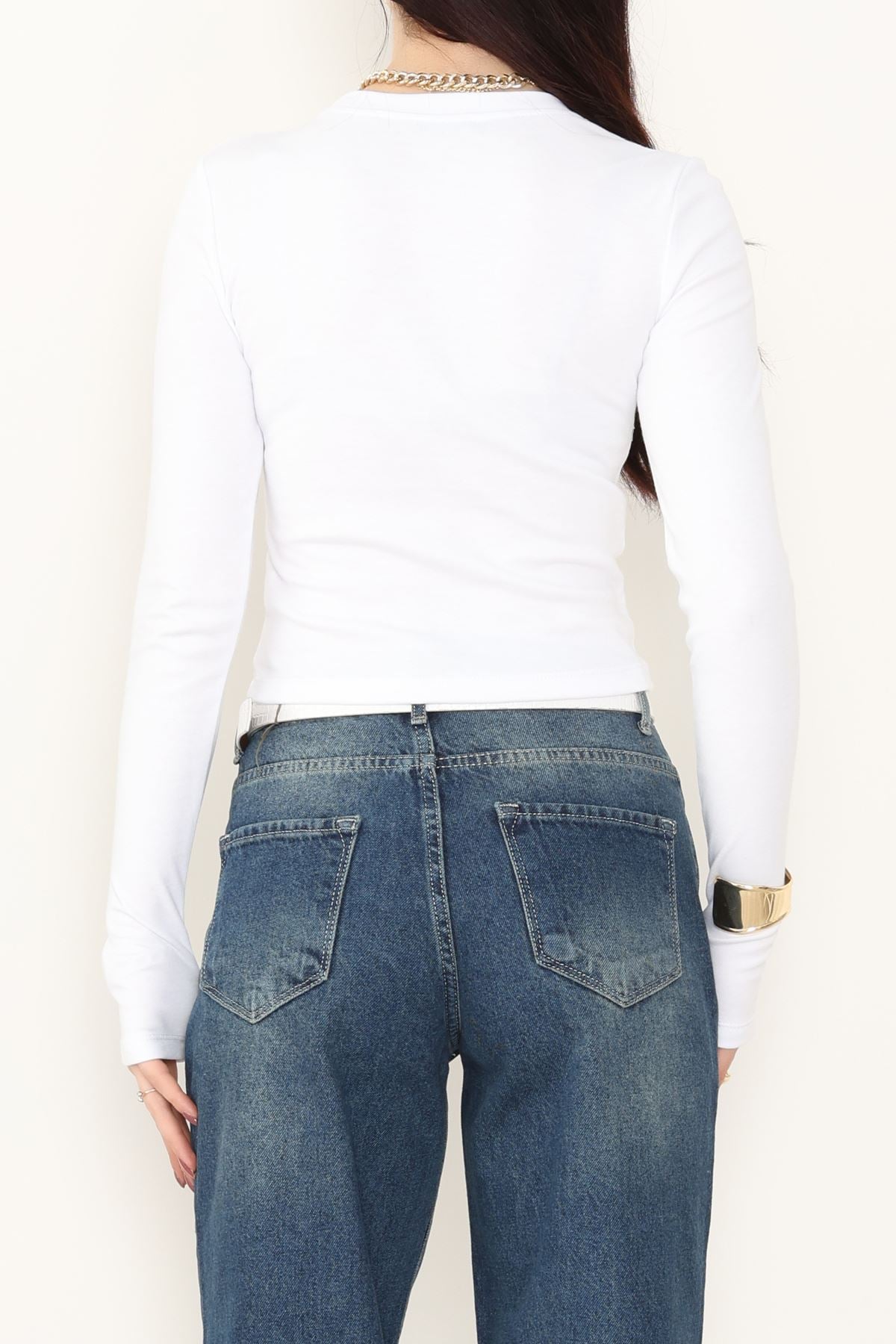 Ribana Kumaş Parmak Geçmeli Body Beyaz - 51115.1872.