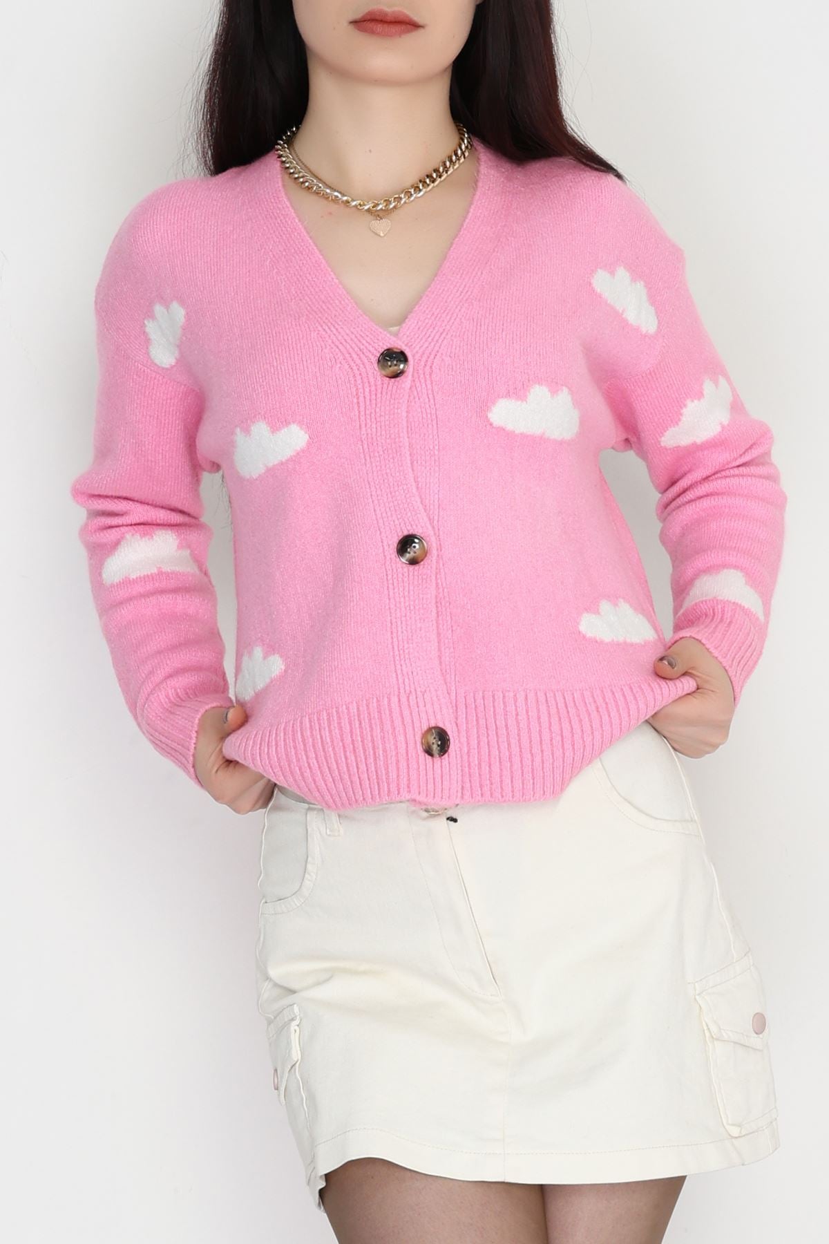 Şardonlu Düğmeli Hırka Pembetaş - 31059.1766.