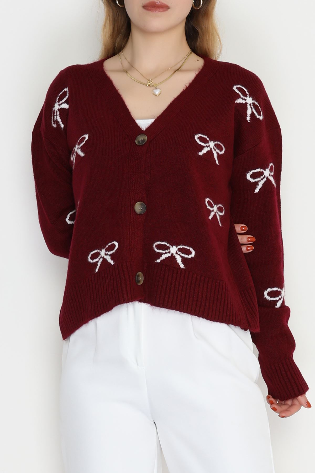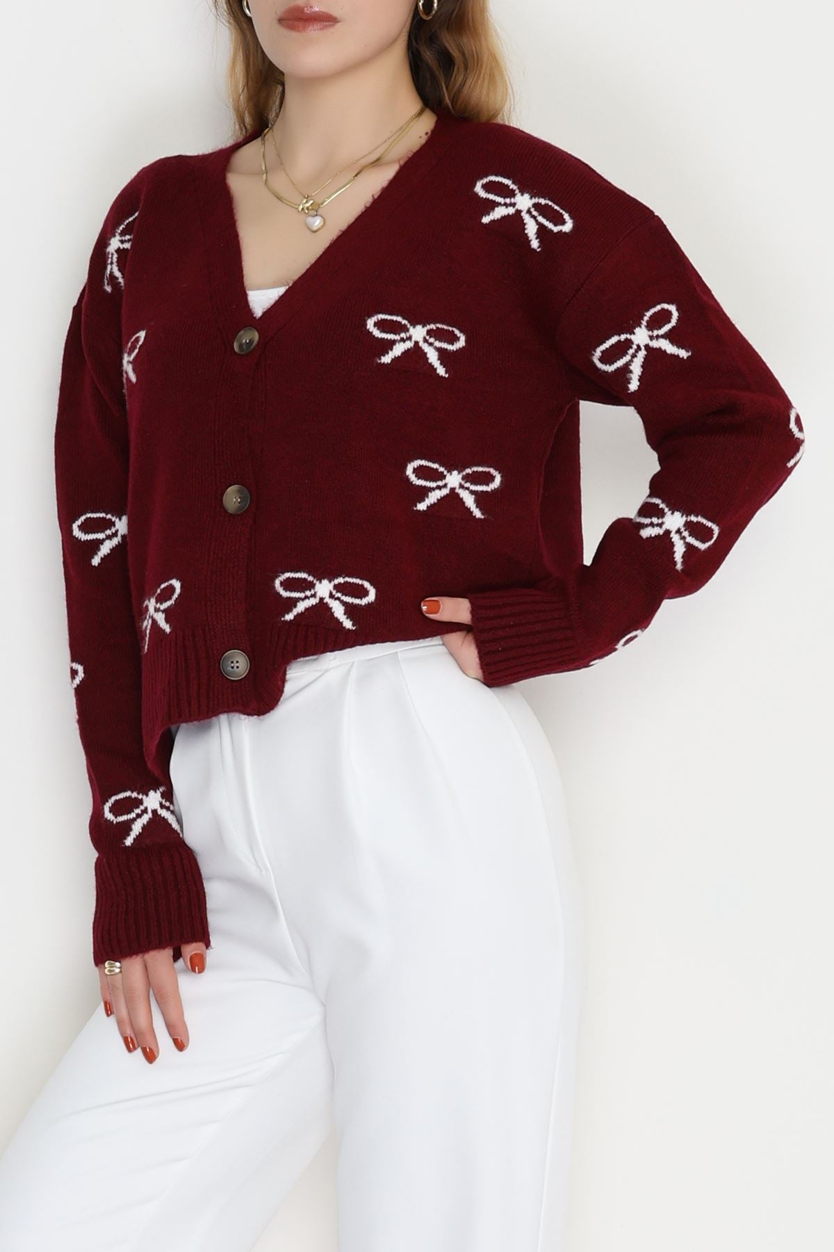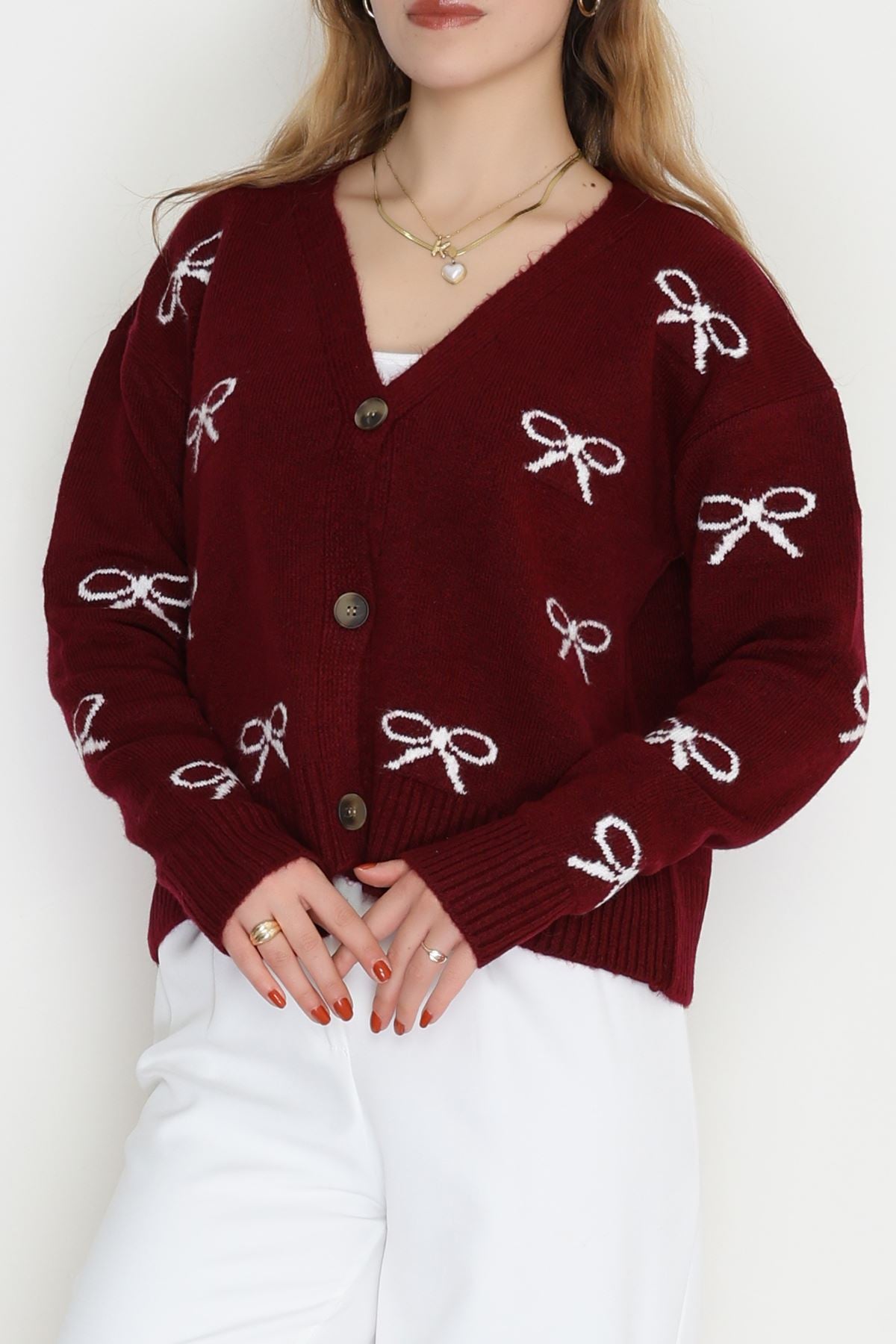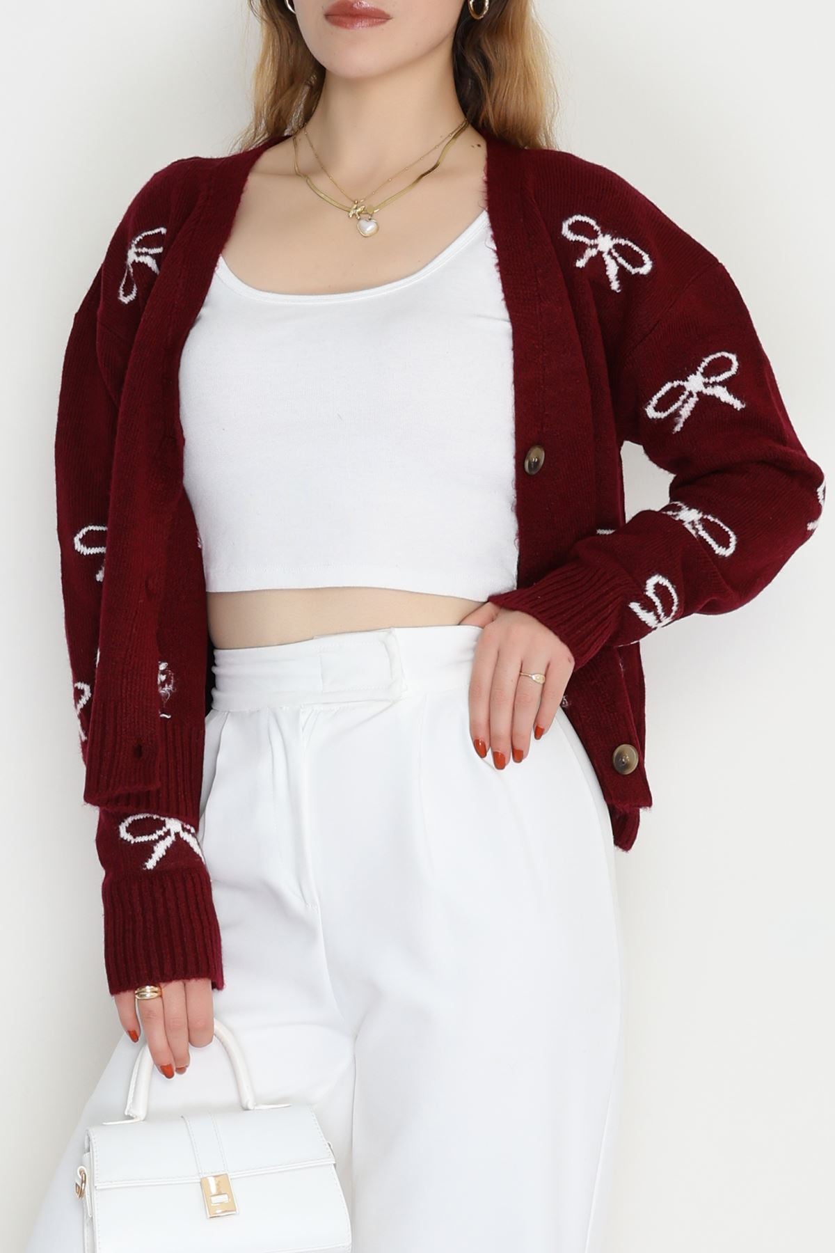 Şardonlu Düğmeli Triko Hırka Bordo - 31456.1766.