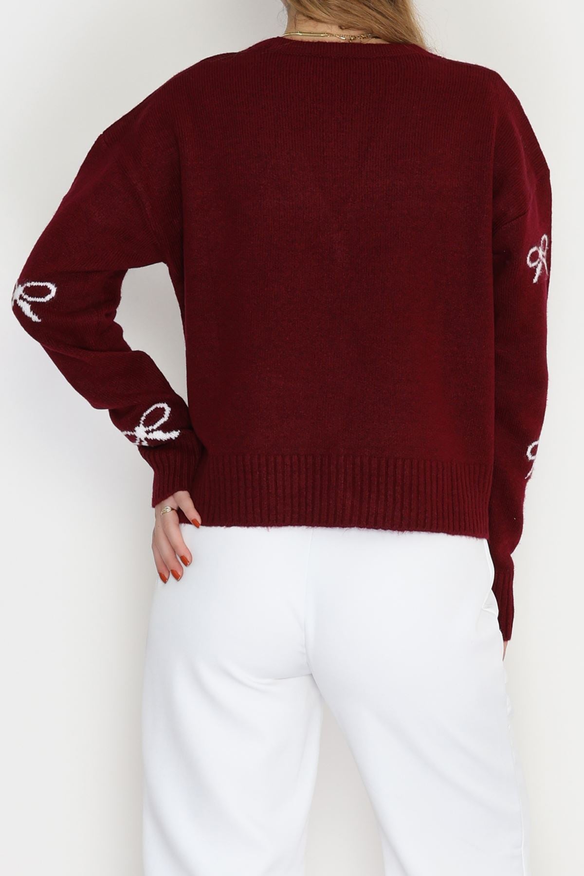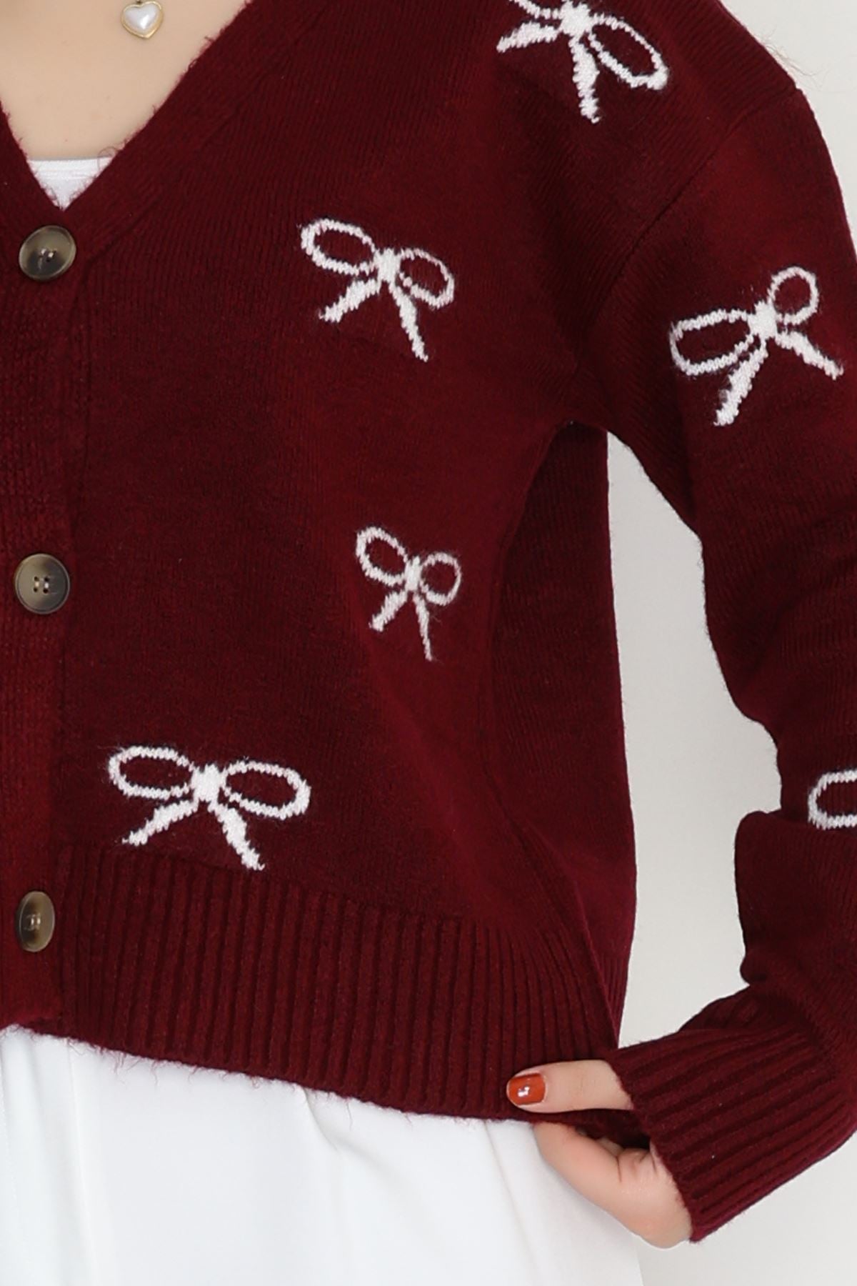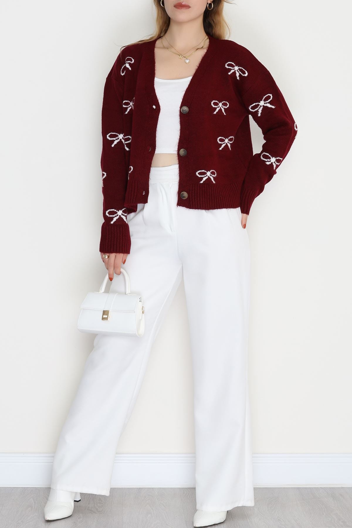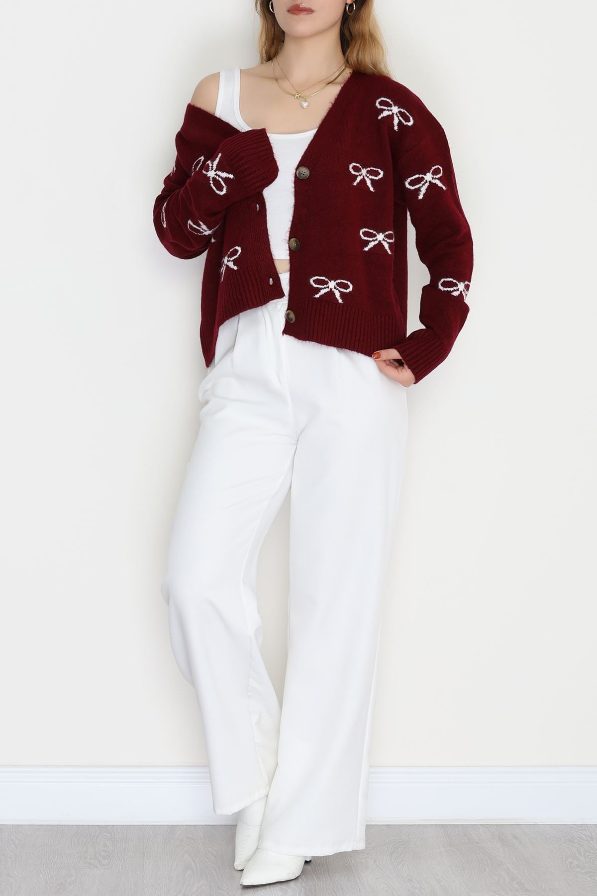 Şardonlu Düğmeli Triko Hırka Bordo - 31456.1766.