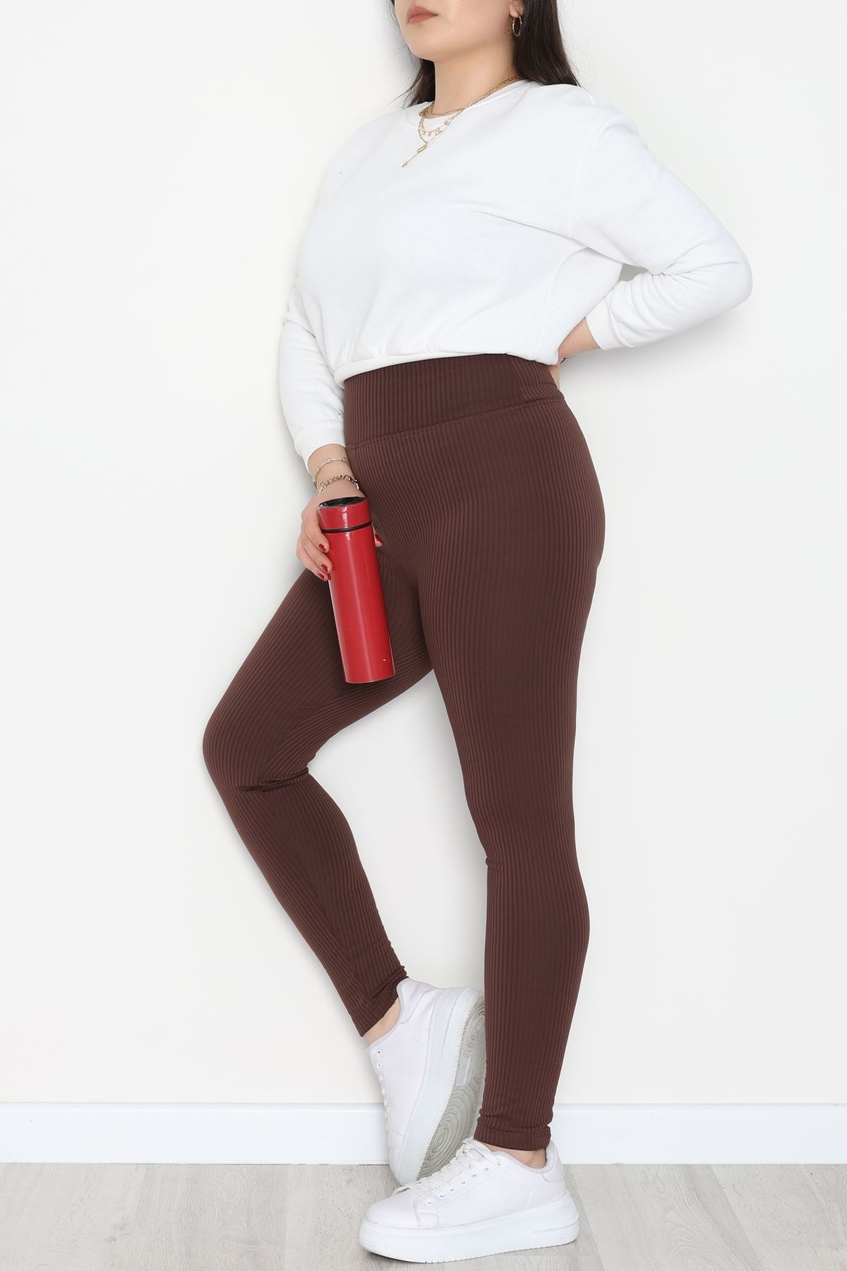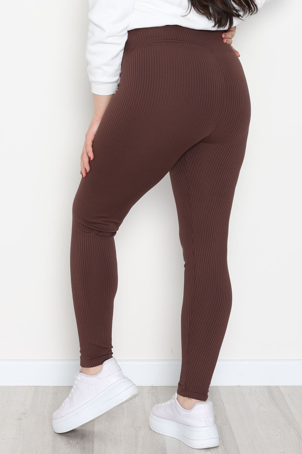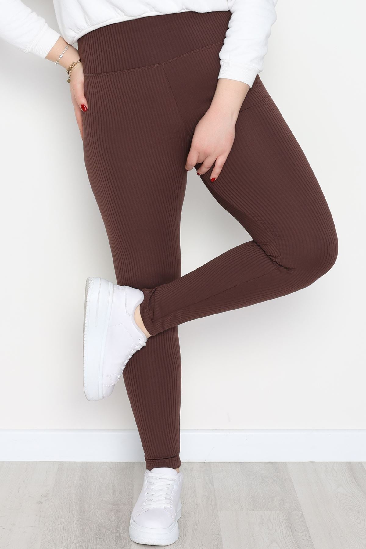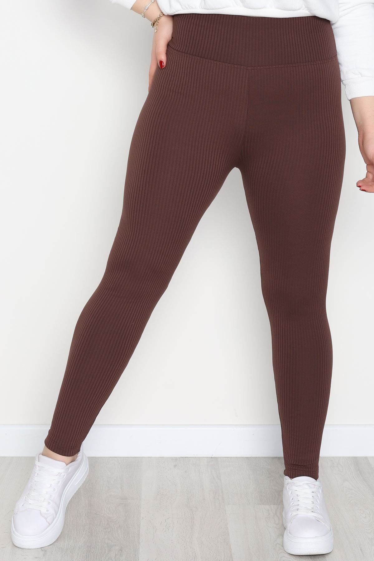 Şardonlu Yumuşak Dokulu Büyük Beden Fitilli Tayt Kahve - 52086.1098.
