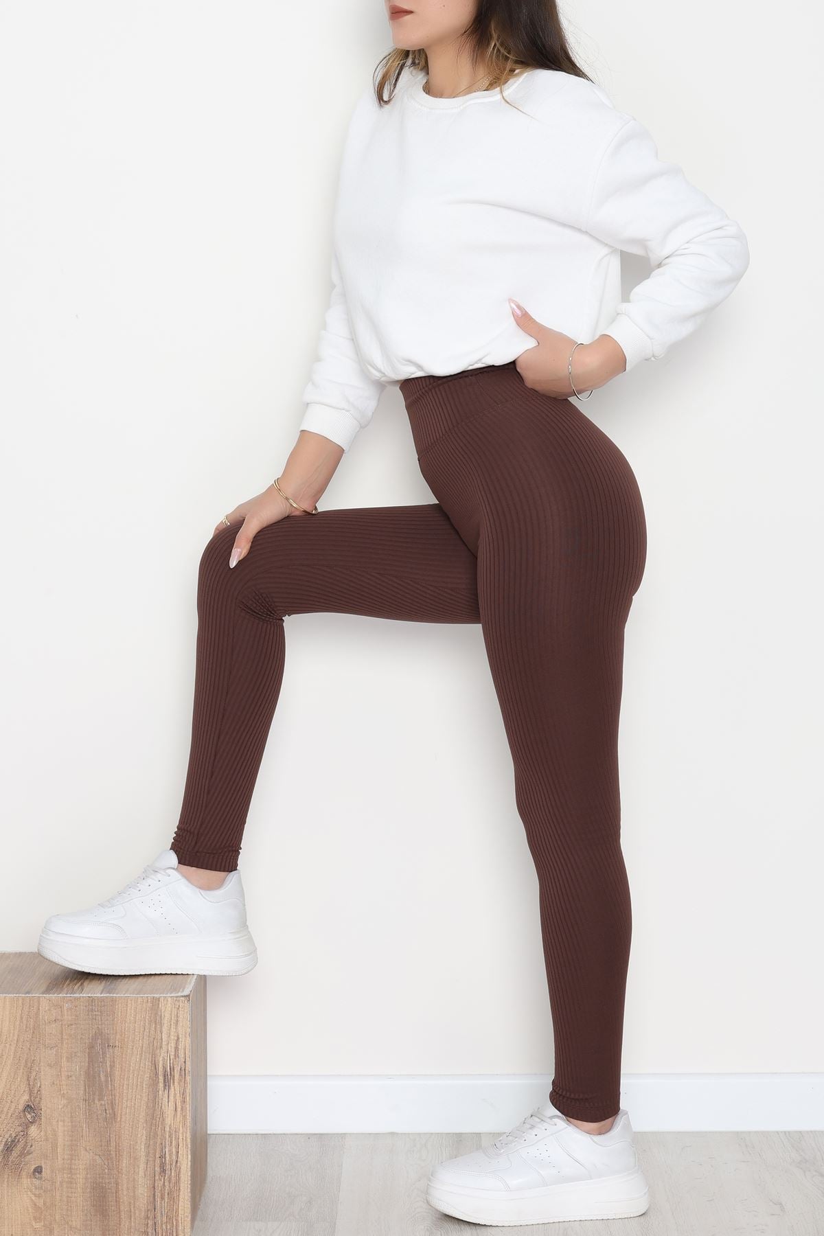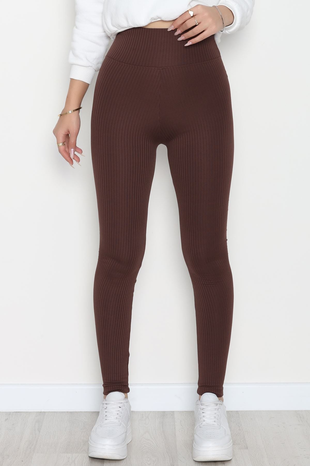 Şardonlu Yumuşak Dokulu Fitilli Tayt Kahve - 52085.1098.